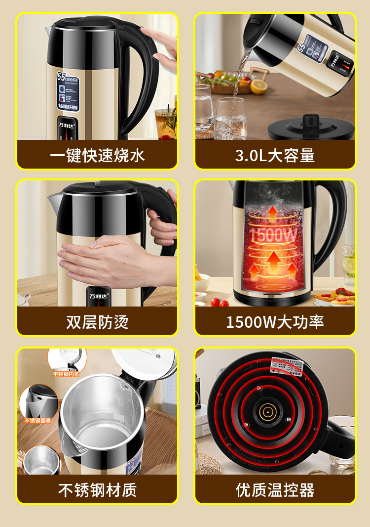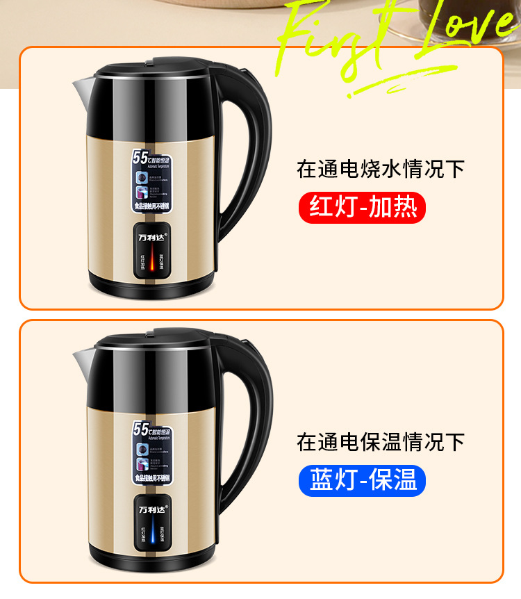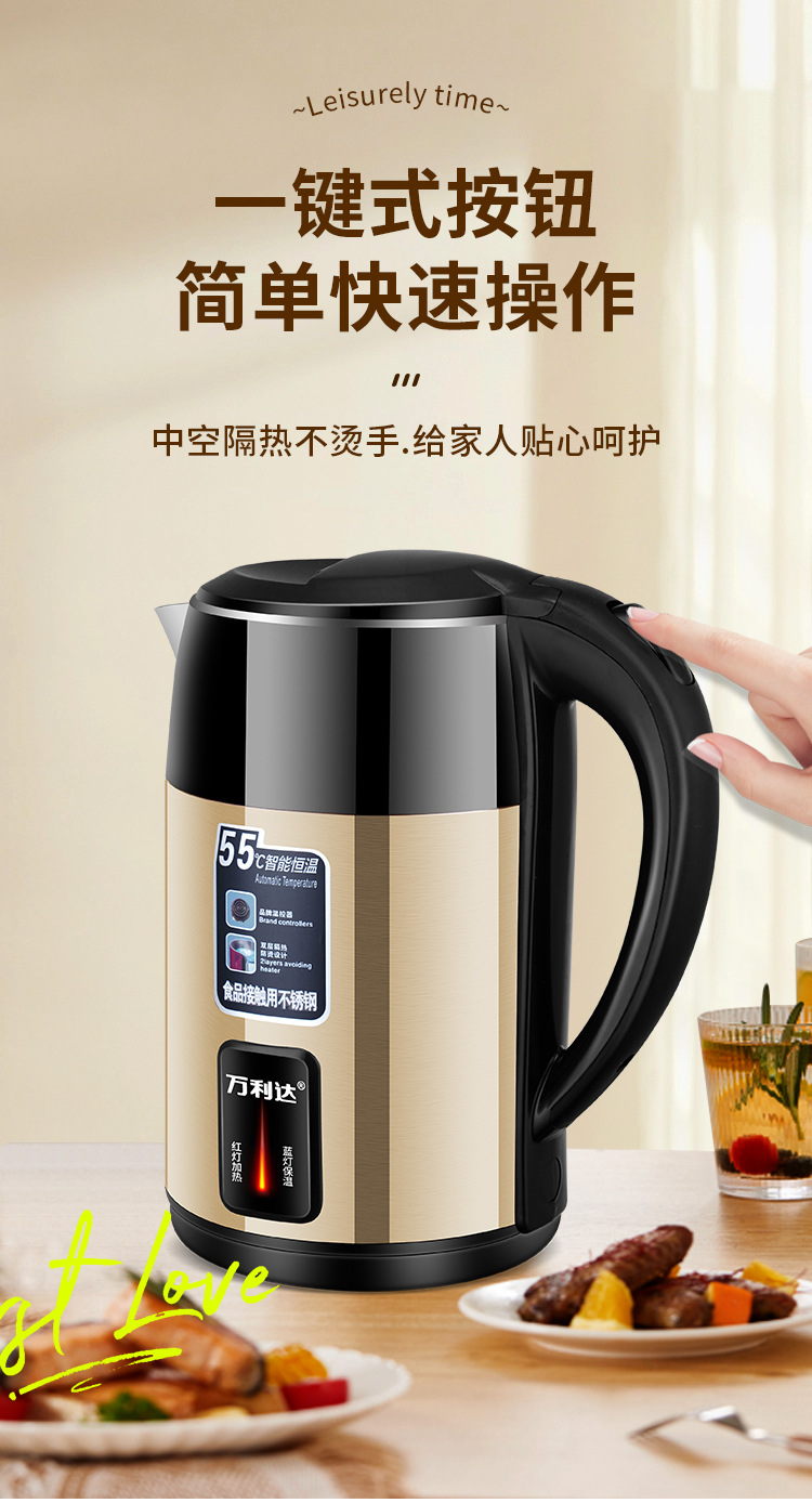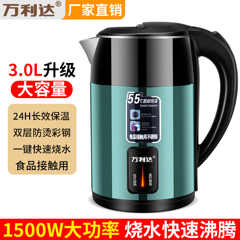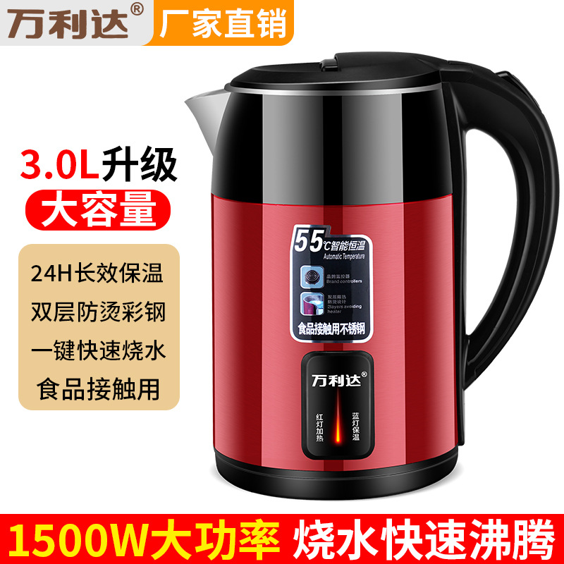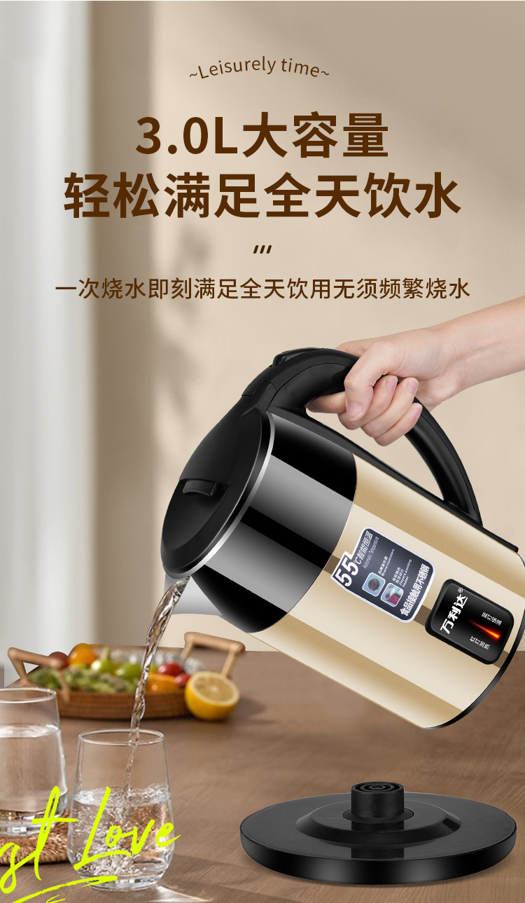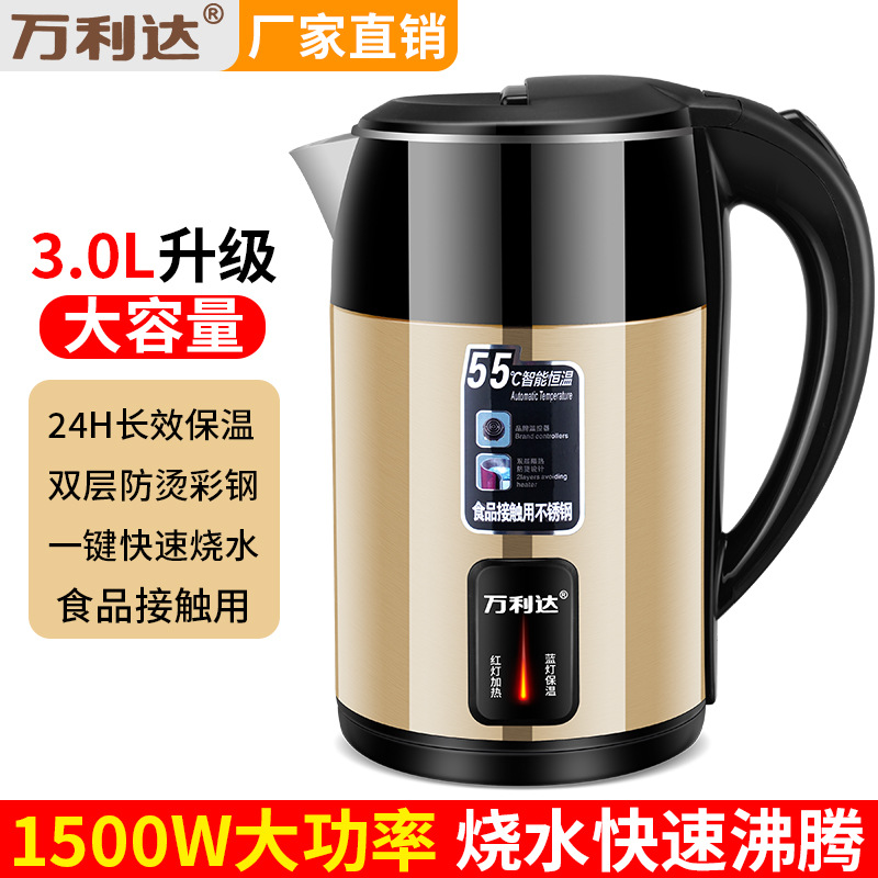 万利达3.0升电水壶家用大容量烧水壶不锈钢开水壶自动保温食品级