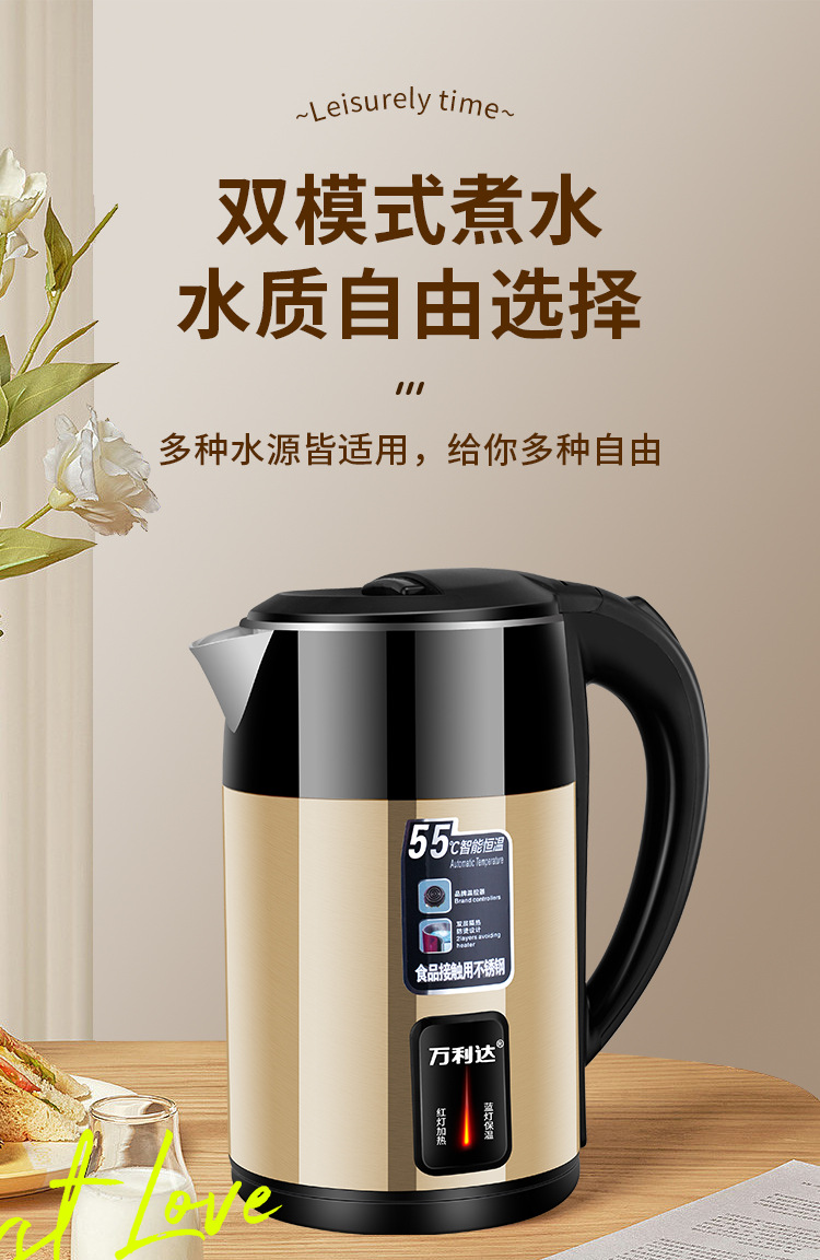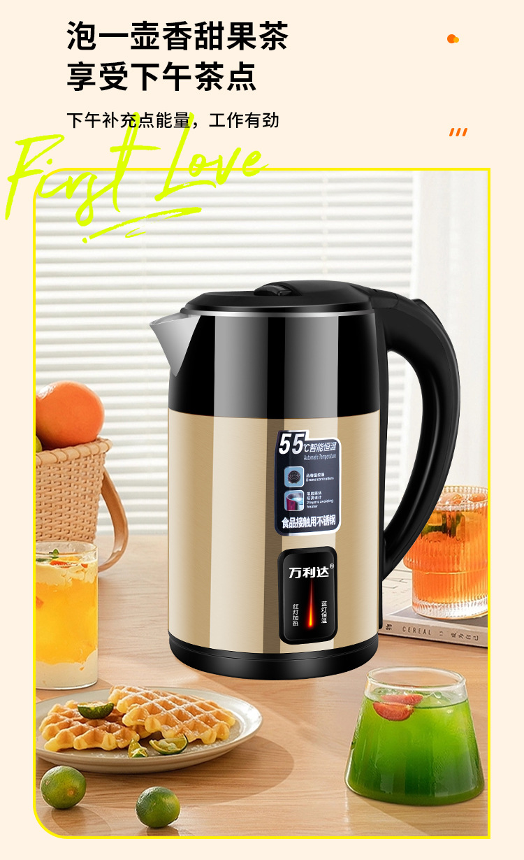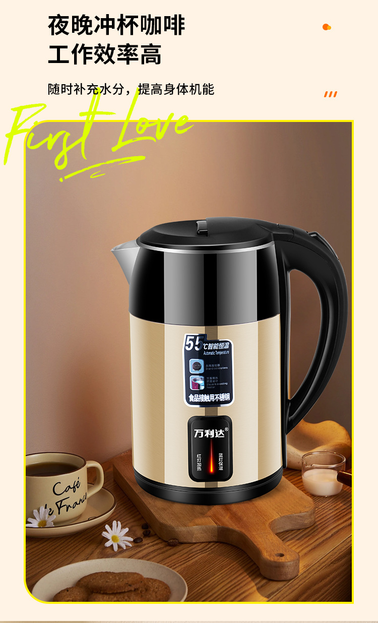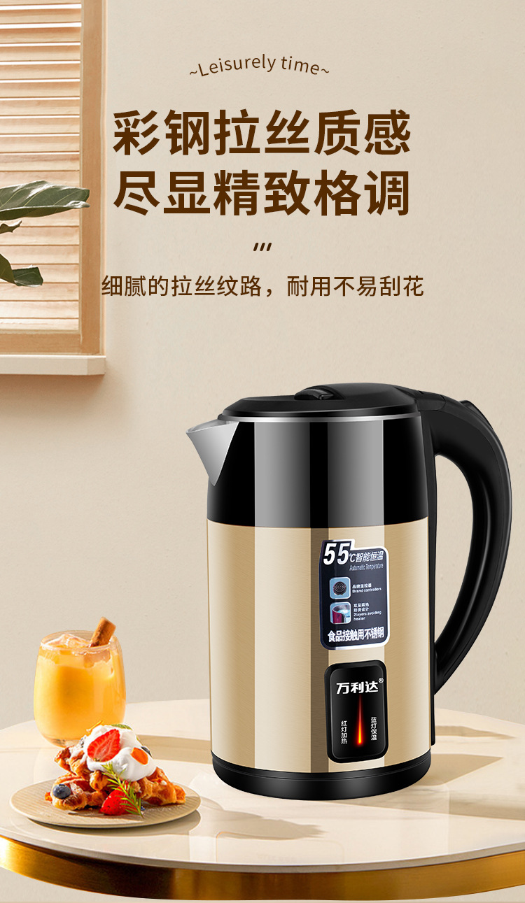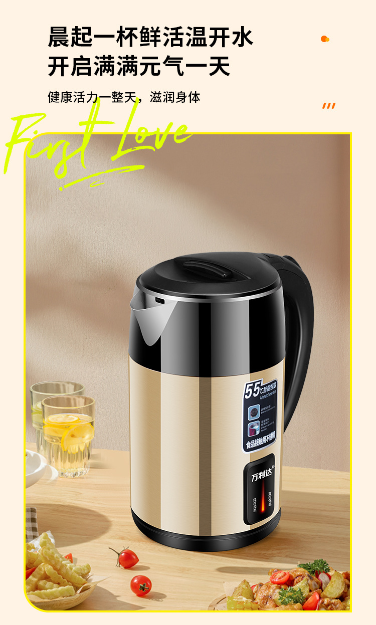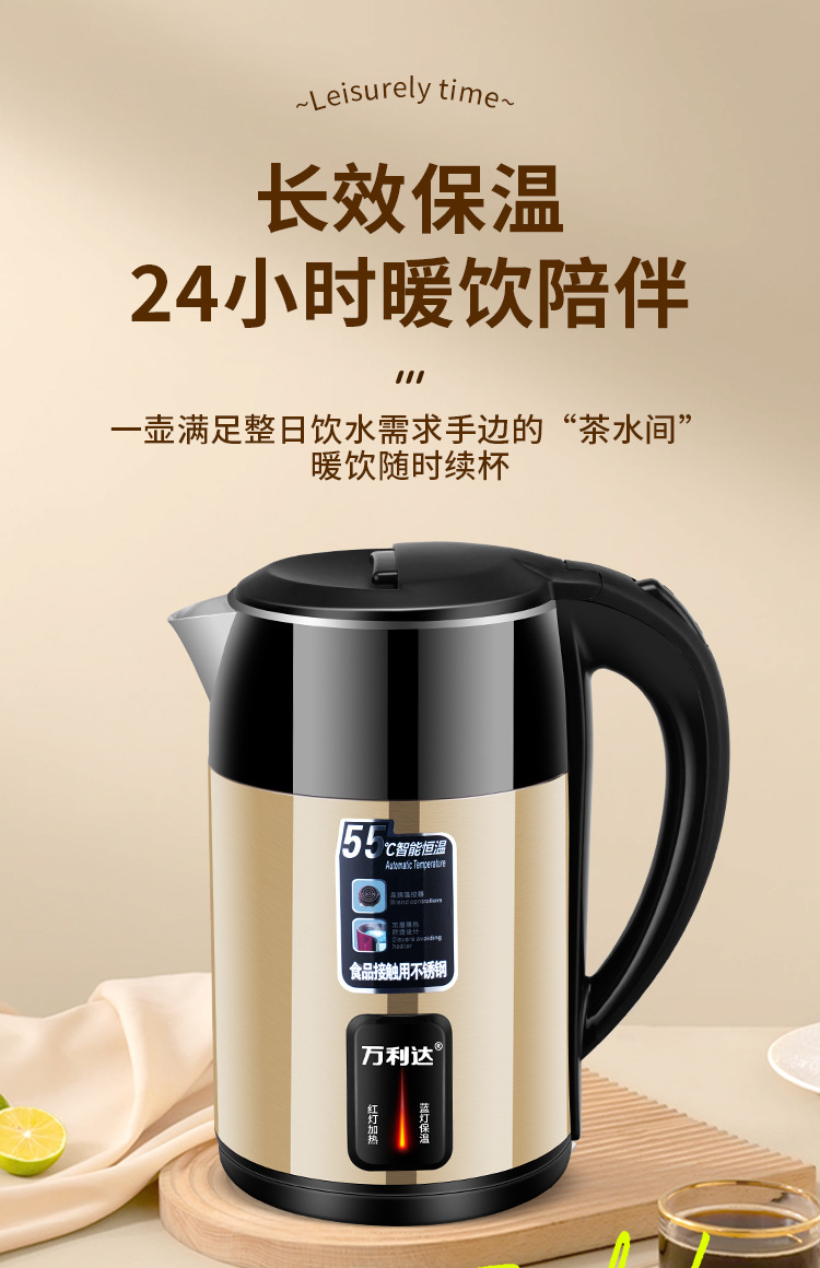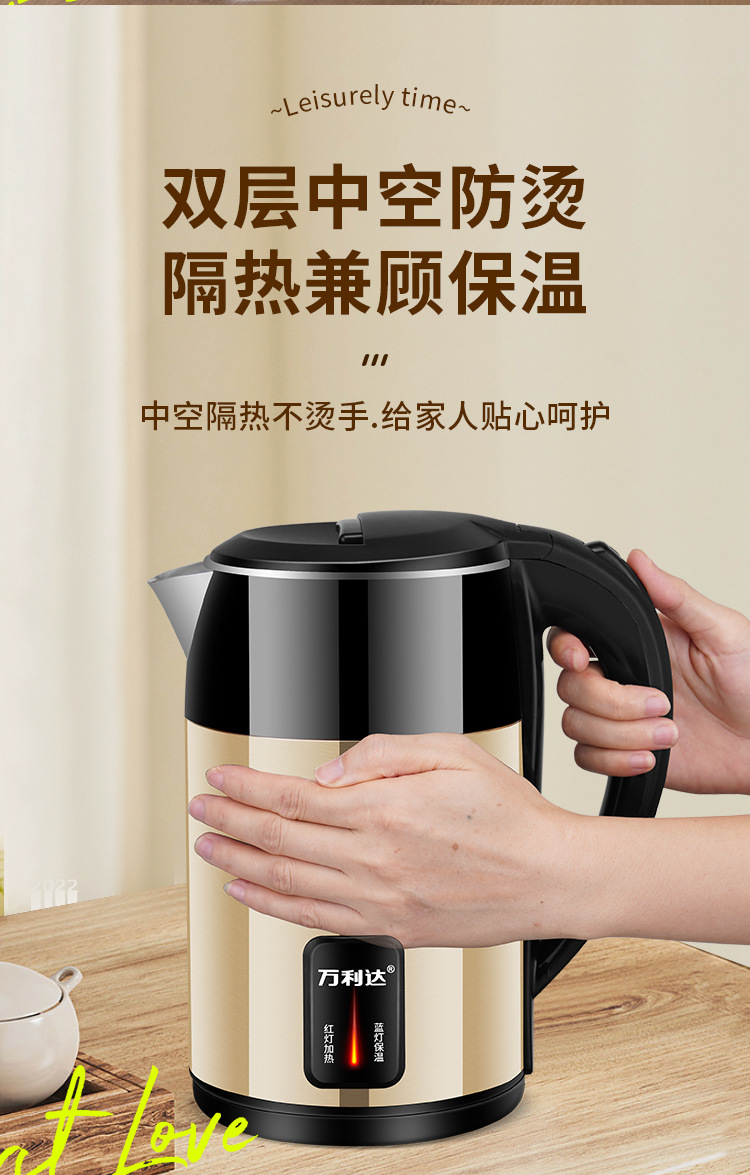 万利达3.0升电水壶家用大容量烧水壶不锈钢开水壶自动保温食品级