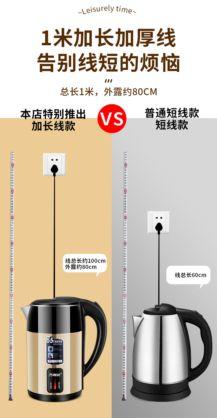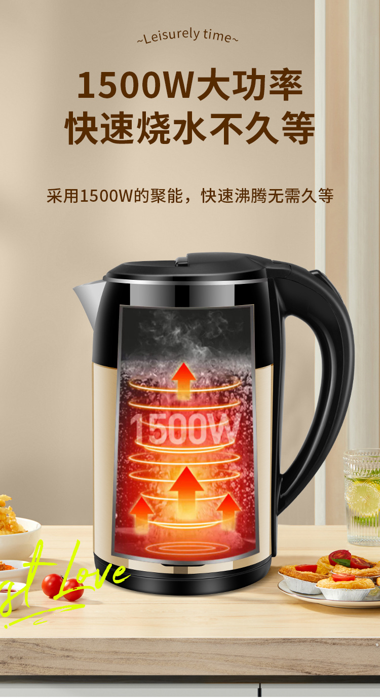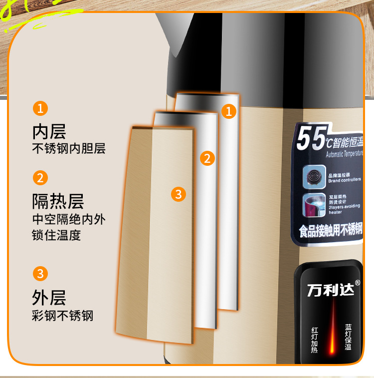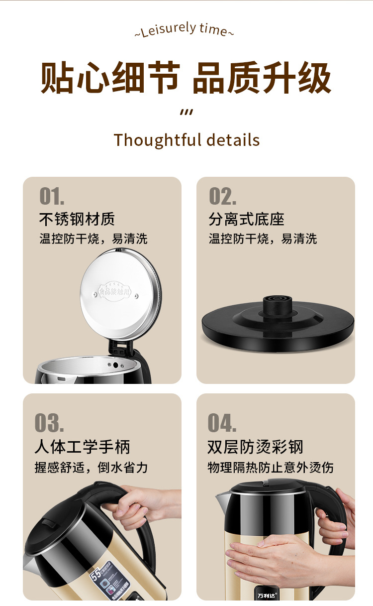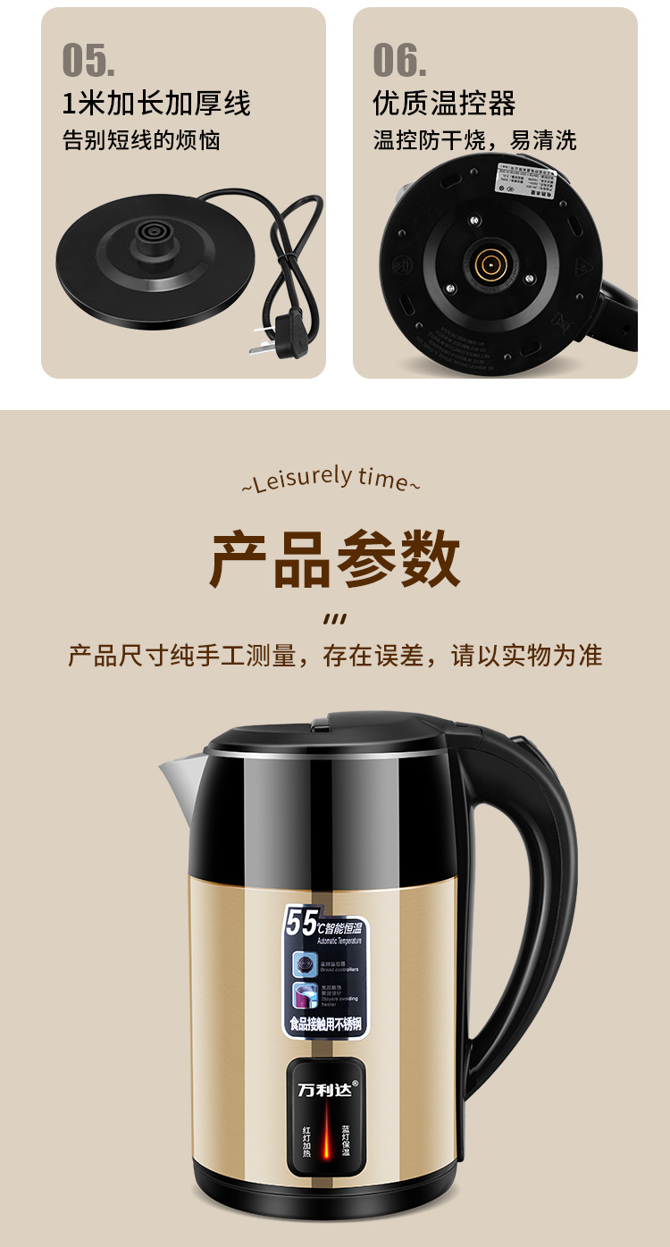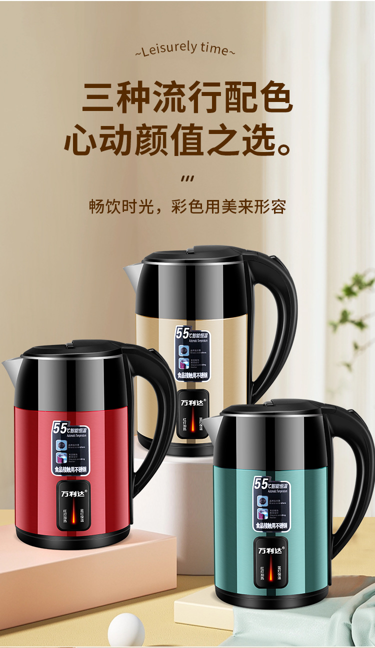 万利达3.0升电水壶家用大容量烧水壶不锈钢开水壶自动保温食品级