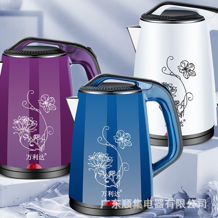 万利达不锈钢电热水壶批发印字礼品电水壶双层热水壶玻璃烧水壶