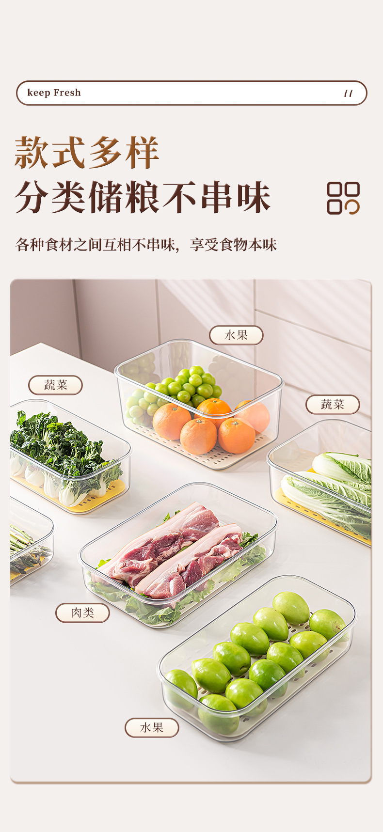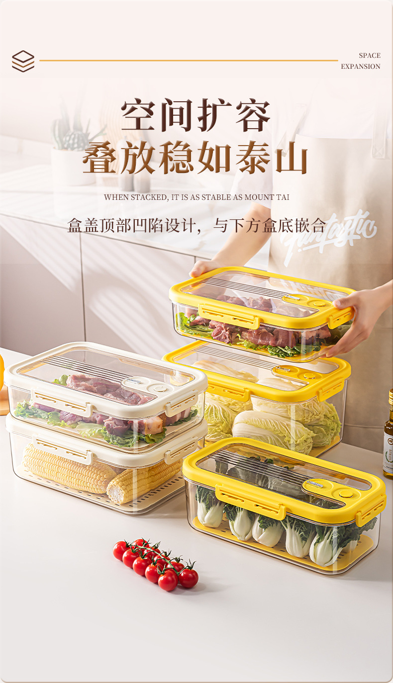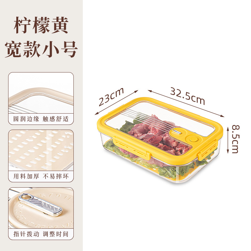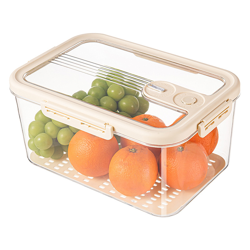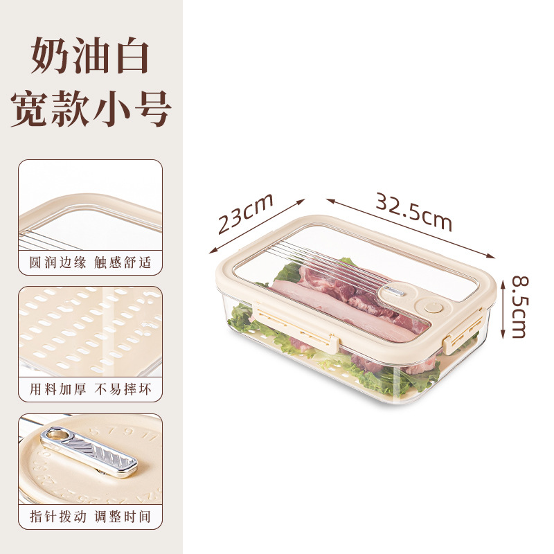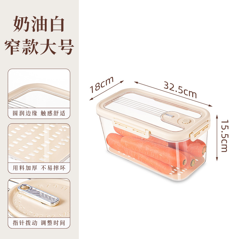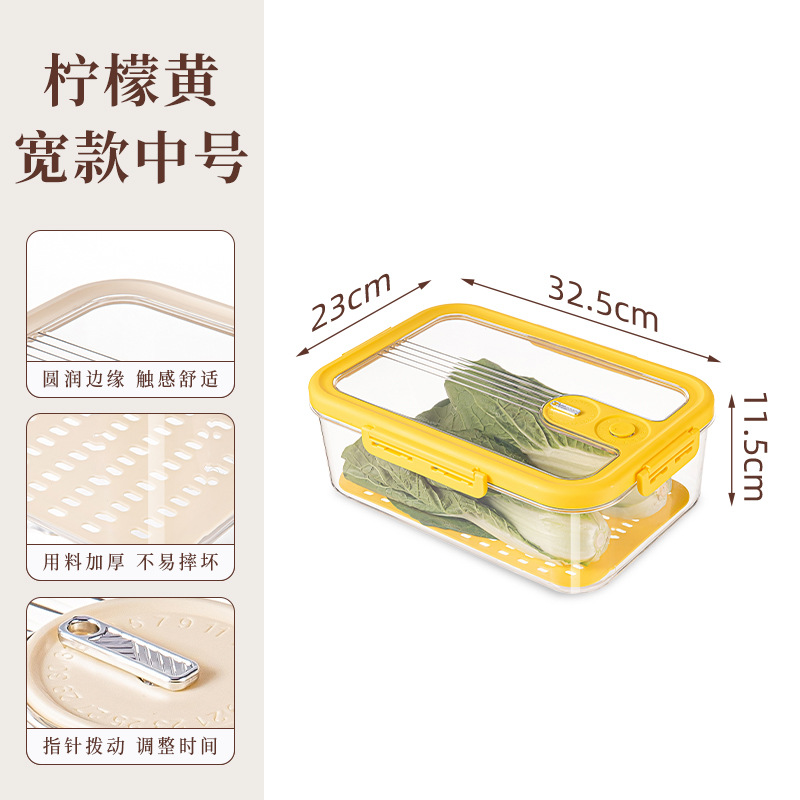 沥水保鲜盒冰箱收纳盒计时密封保鲜储物盒大容量水果蔬菜冷藏盒子