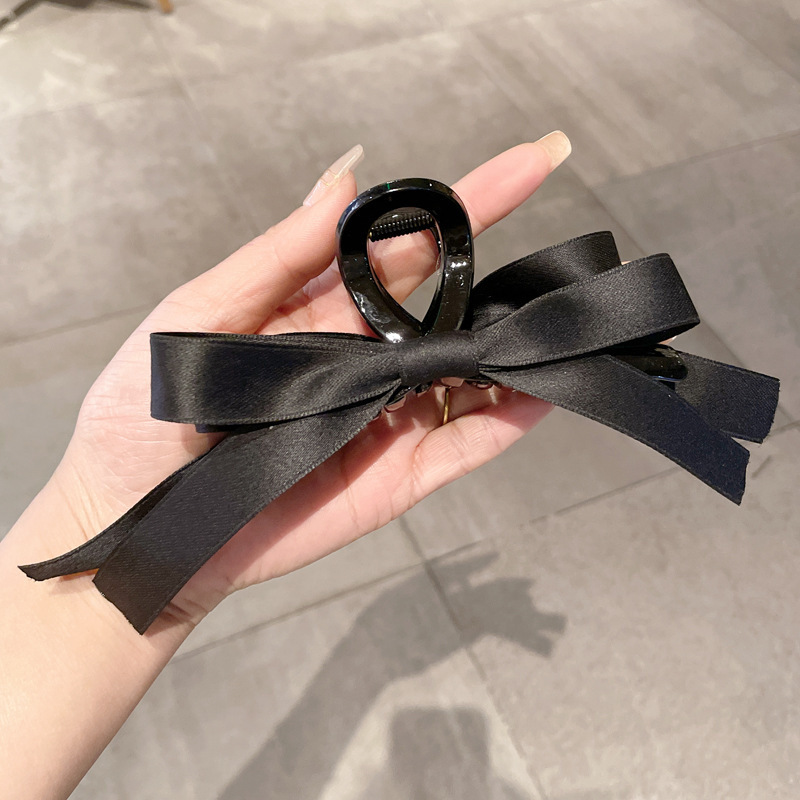 赫本风黑色抓夹蝴蝶结抓夹女大号高级感发夹盘发后脑勺鲨鱼夹头饰