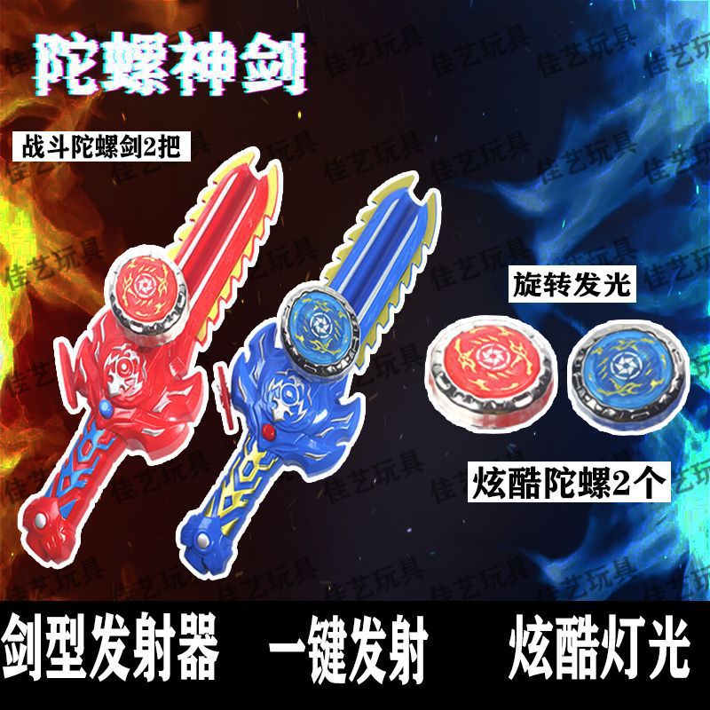 新款剑神陀螺剑发光拉线陀螺剑儿童玩具男孩对战合金陀螺玩具批发