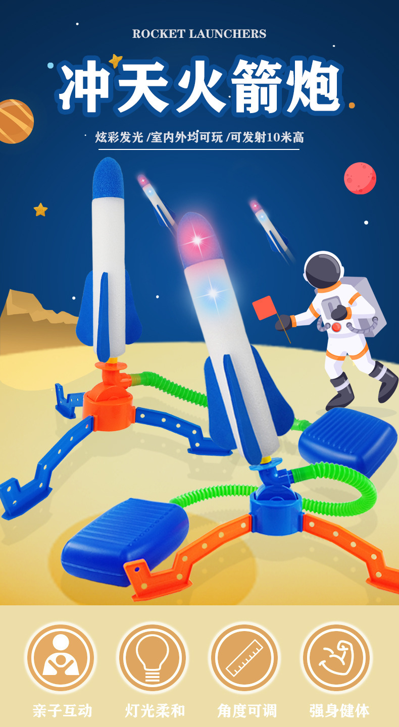 飞天火箭发射炮脚踩冲天火箭脚踩的玩具发光飞天炮脚踏式儿童玩具