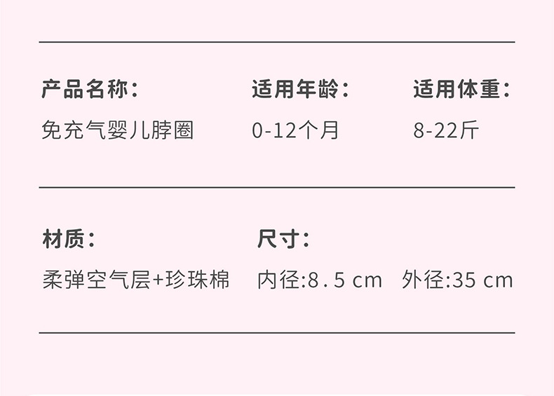 圈奇免充气脖圈婴儿0-3岁加厚防侧翻新生儿家用母婴馆宝宝游泳圈