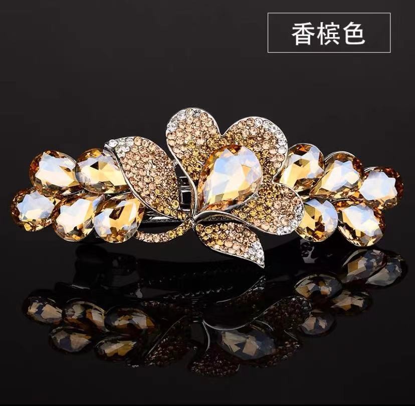 韩国时尚爱心水钻发夹大号弹簧夹女高级感半扎发饰一字发卡头饰
