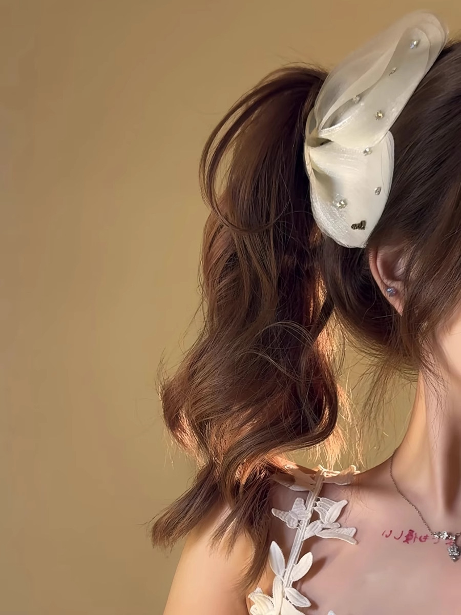 2025年新款蝴蝶结抓夹大号高级感夏季网纱发夹女后脑勺鲨鱼夹头饰