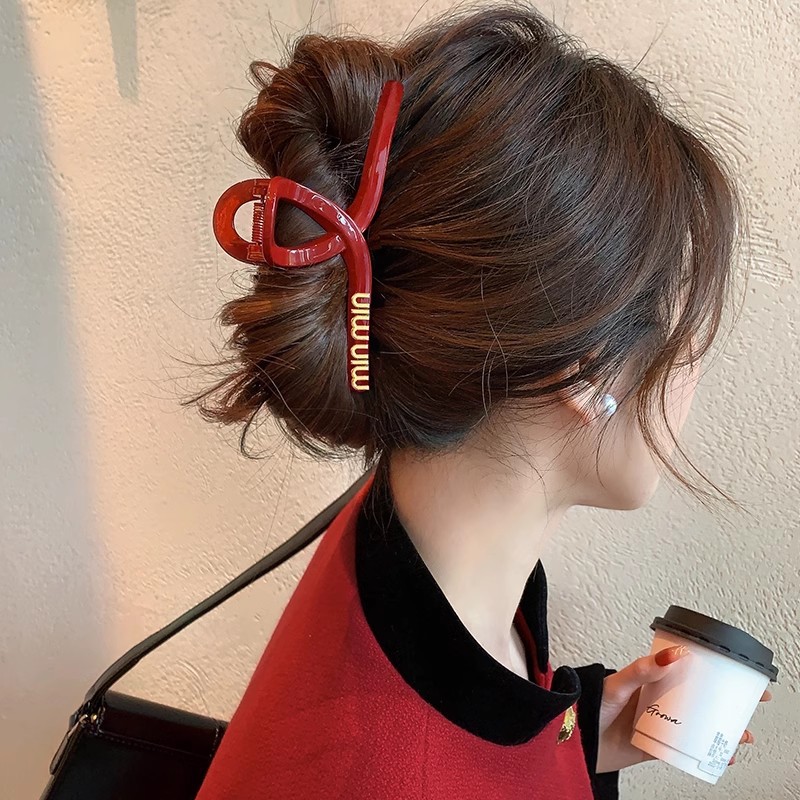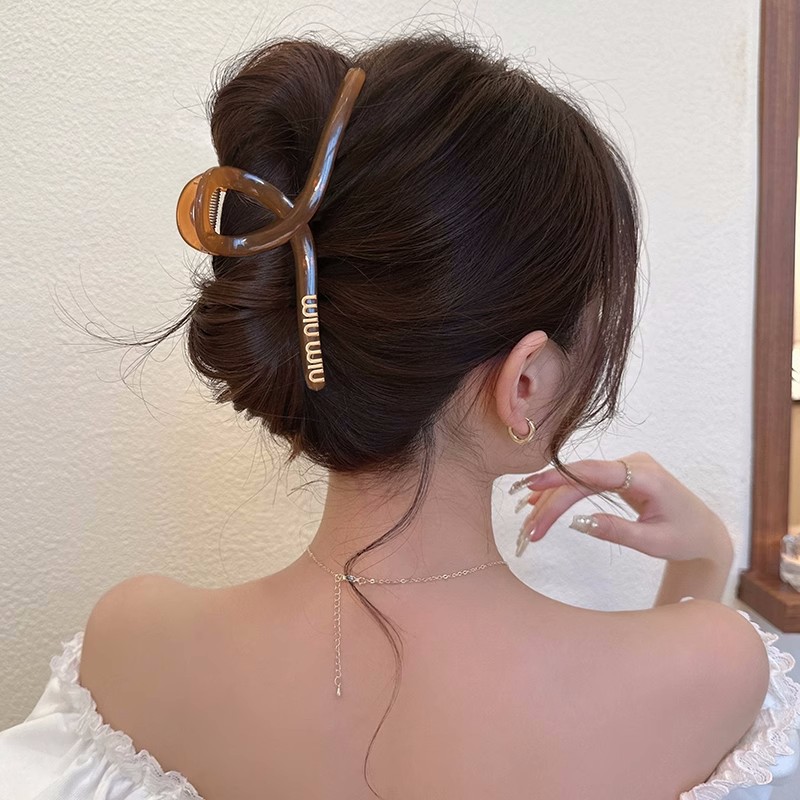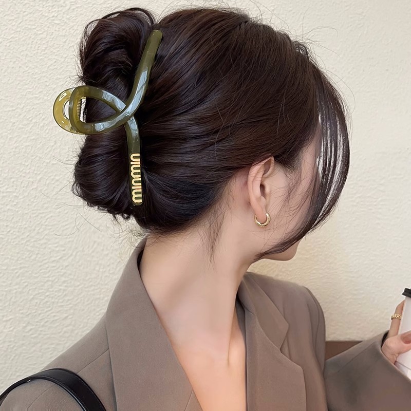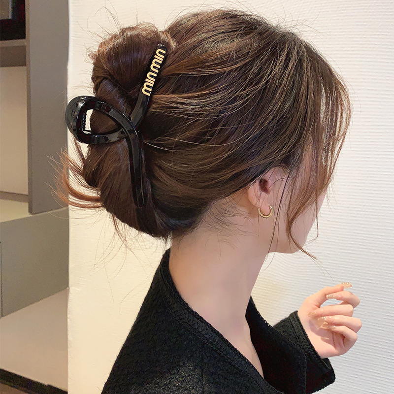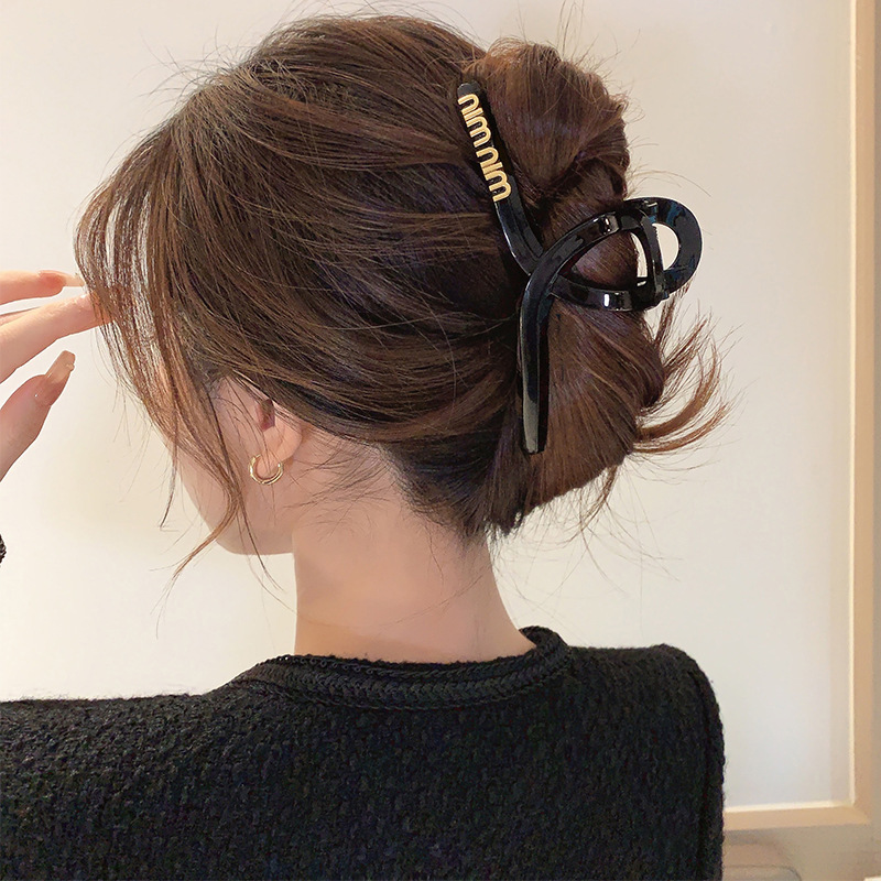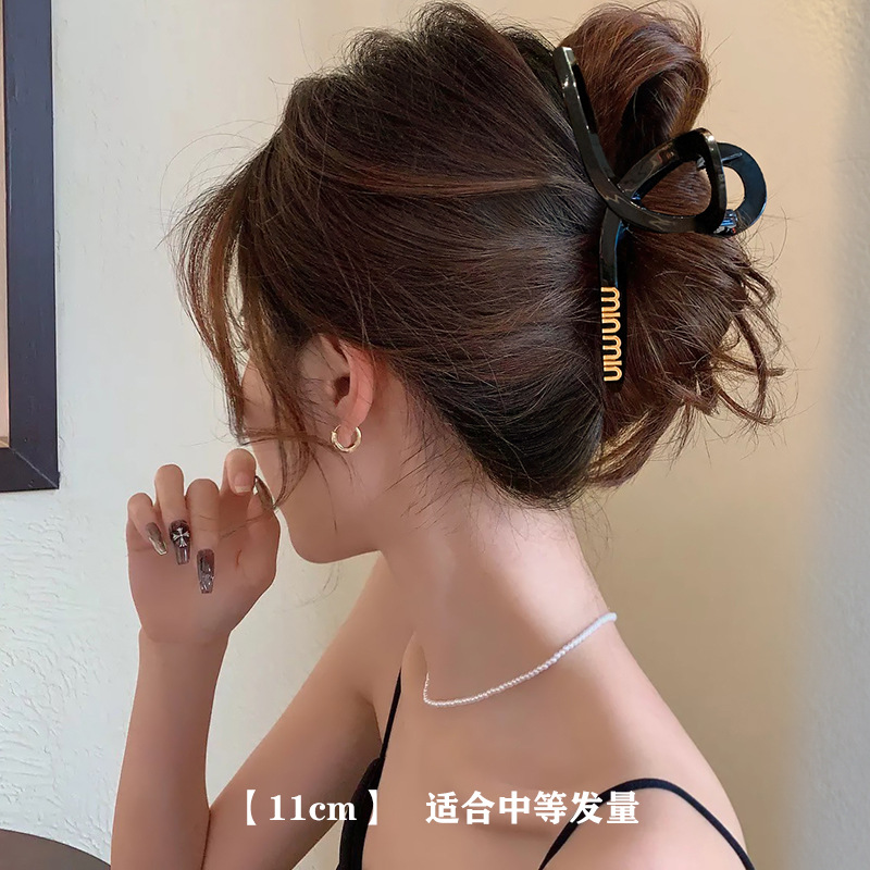 字母抓夹大号黑色鲨鱼夹高级感发夹女后脑勺2023新款发抓头饰夹子