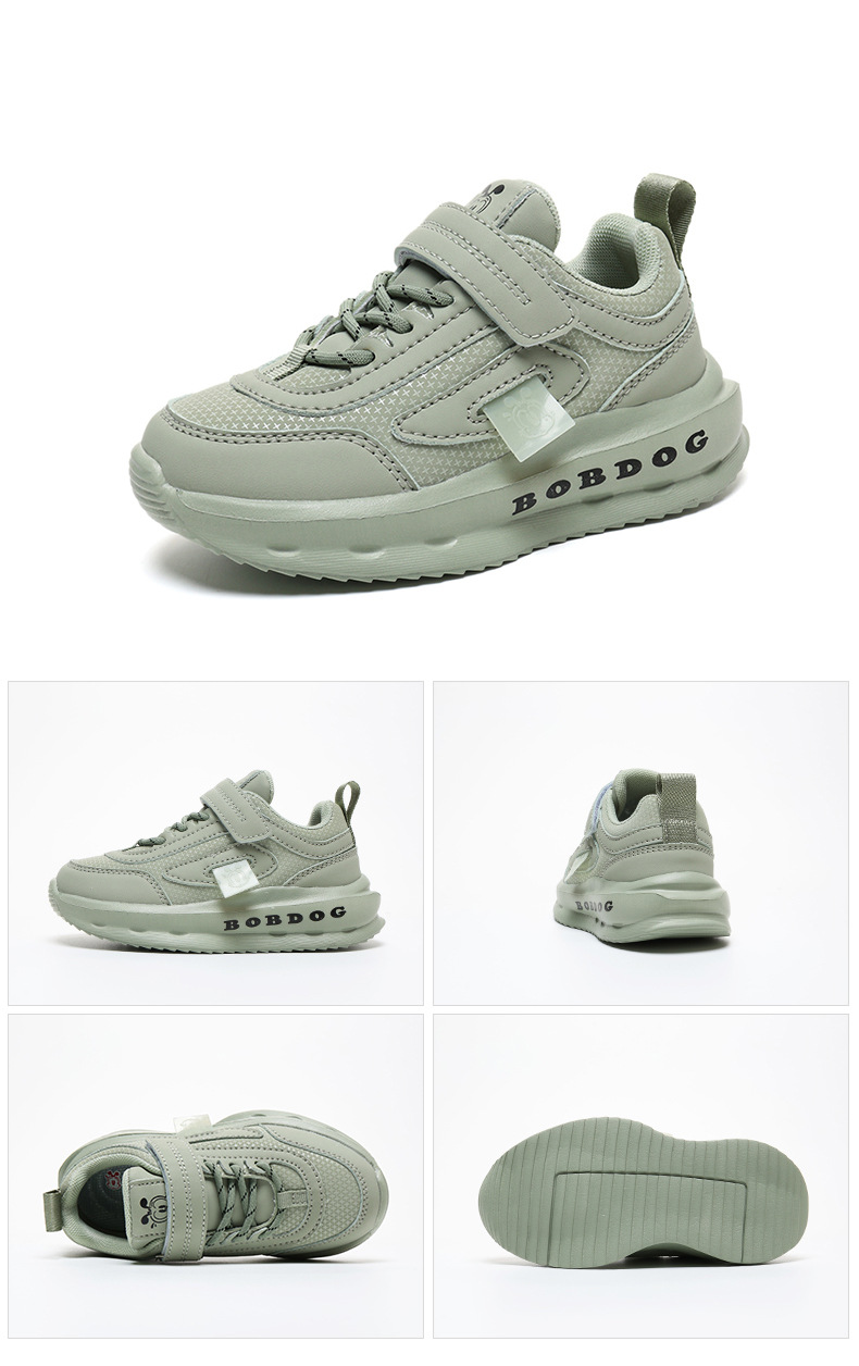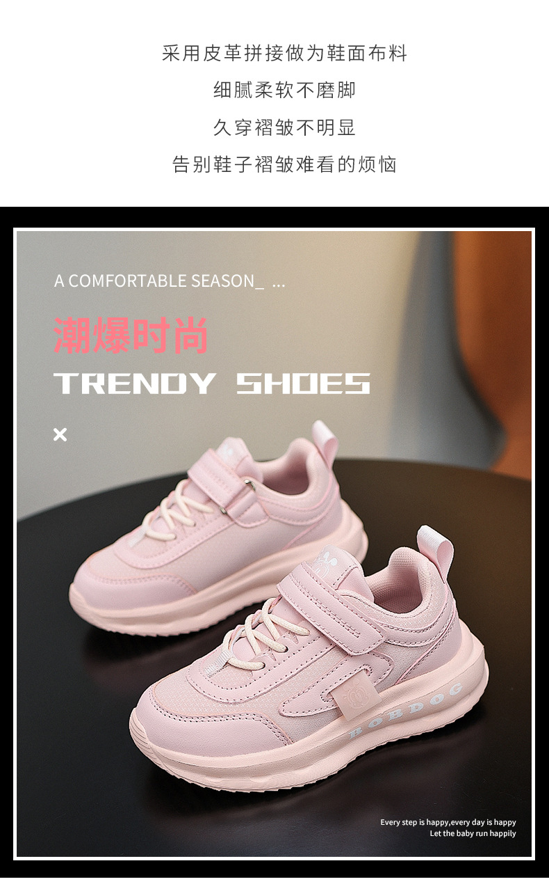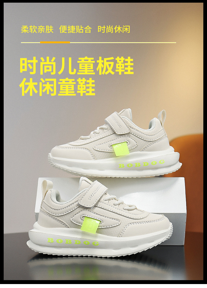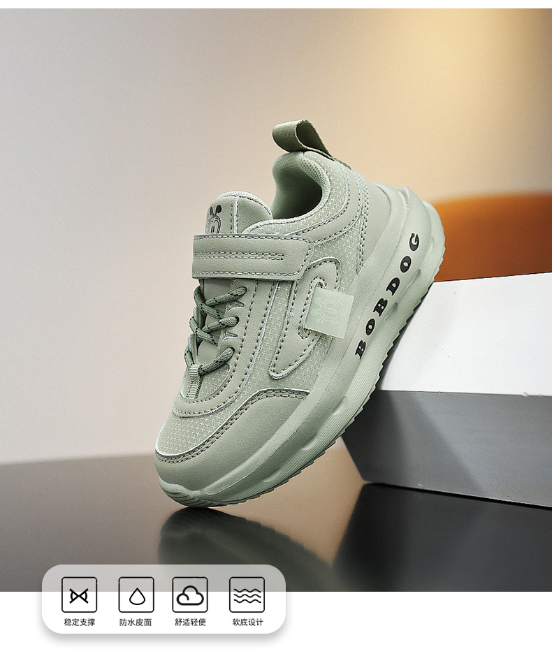 巴布豆男童鞋秋冬防水皮面中大童轻便跑步鞋防滑老爹鞋儿童运动鞋