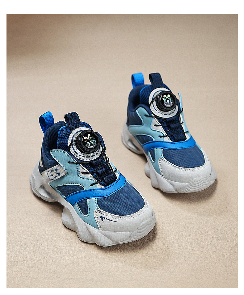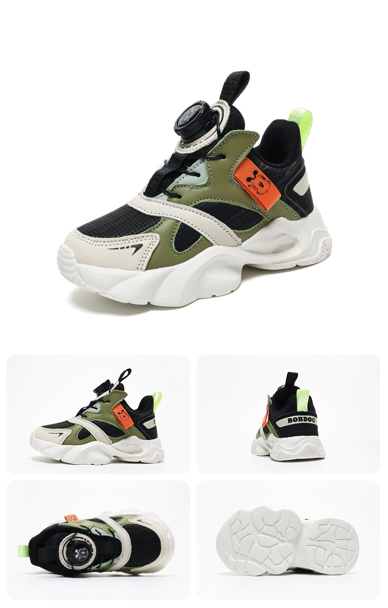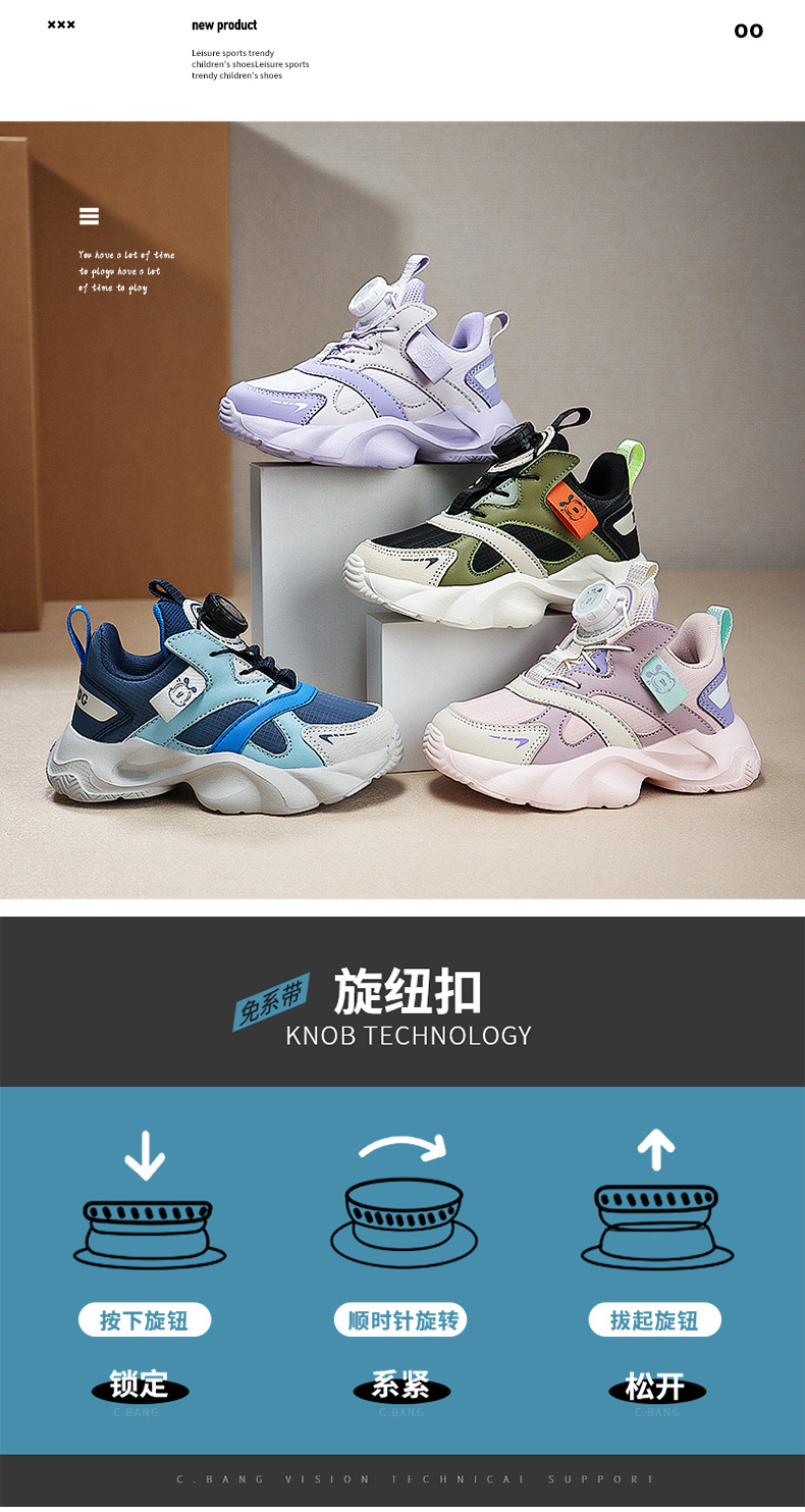 巴布豆儿童鞋子男女童2024秋季新款旋转纽扣男女中大童老爹运动鞋
