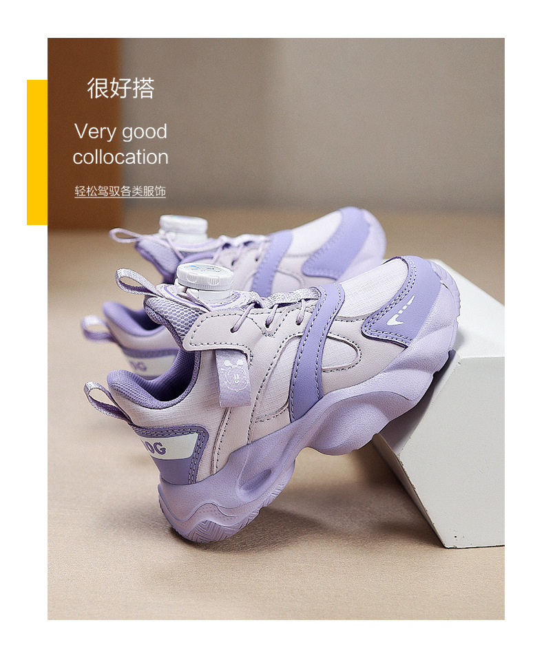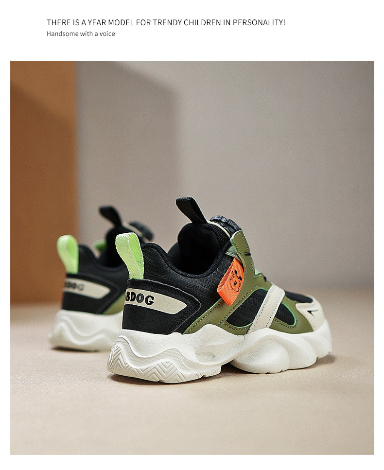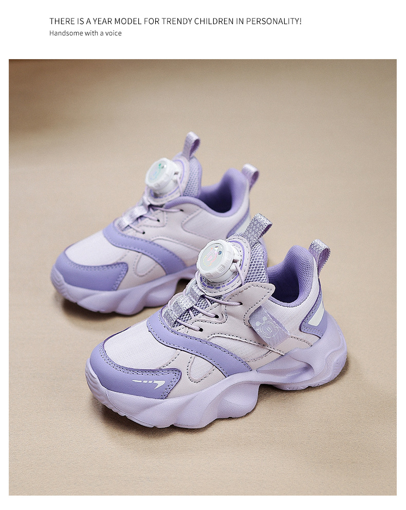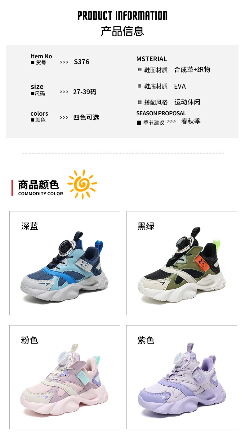 巴布豆儿童鞋子男女童2024秋季新款旋转纽扣男女中大童老爹运动鞋