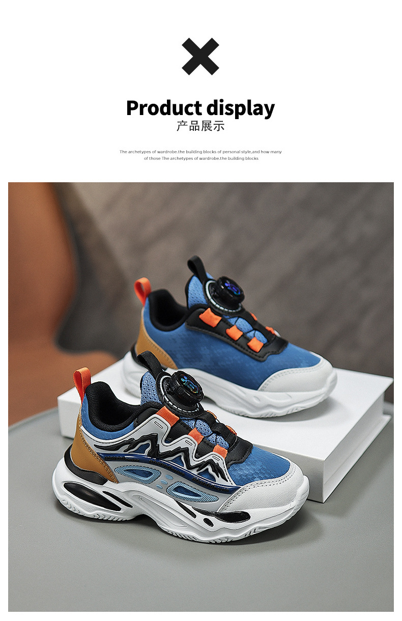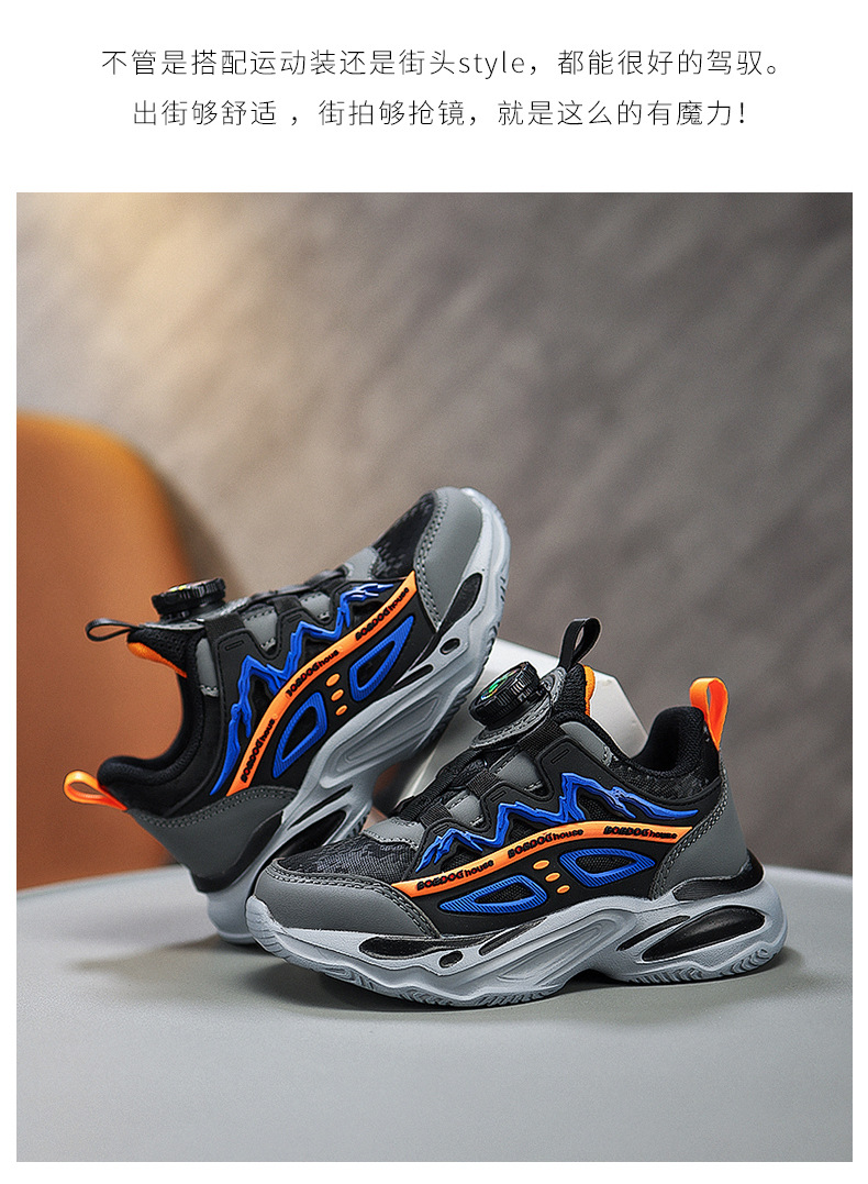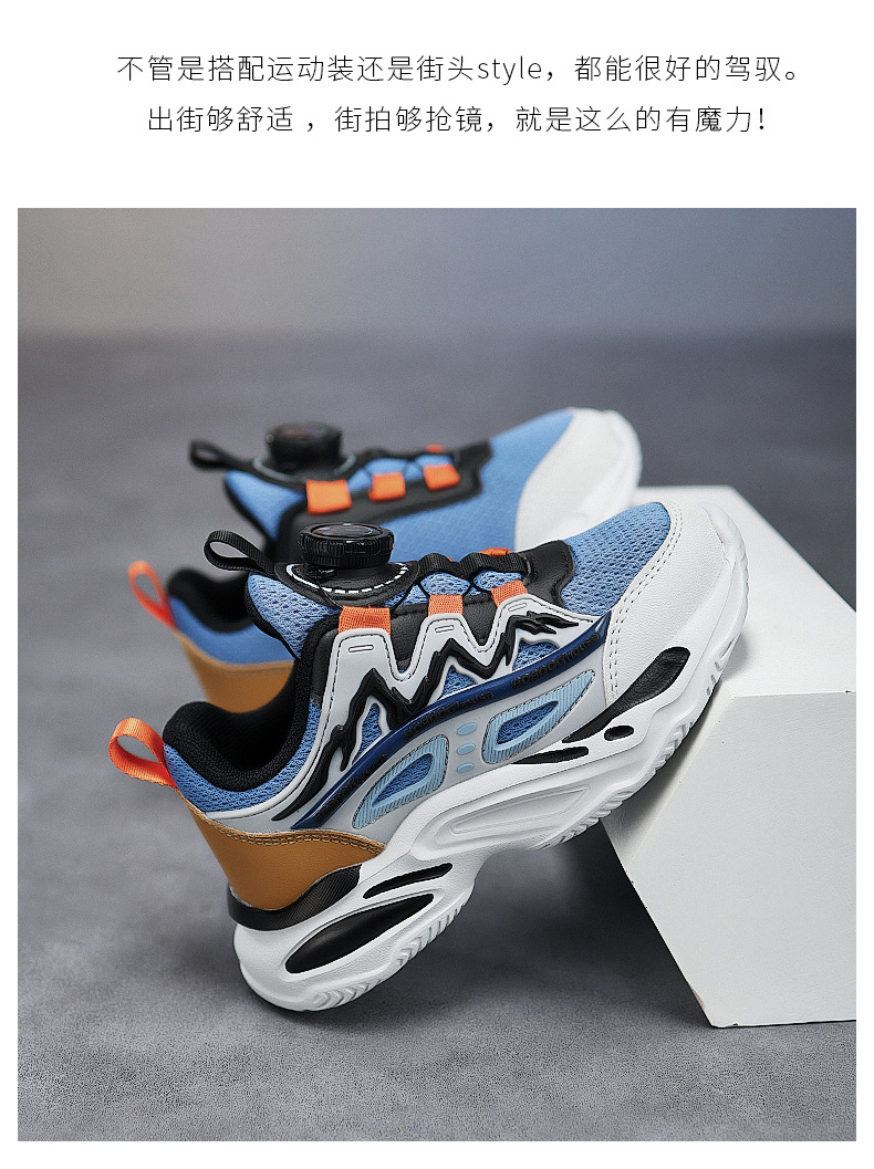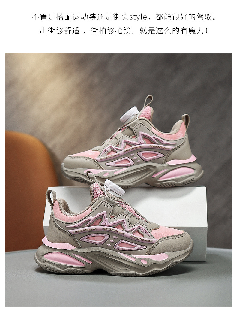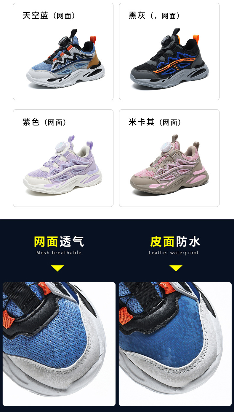 巴布豆童鞋男童鞋春秋新款网面透气运动鞋中大童女童旋转扣跑步鞋