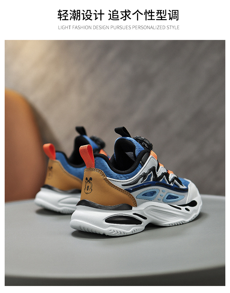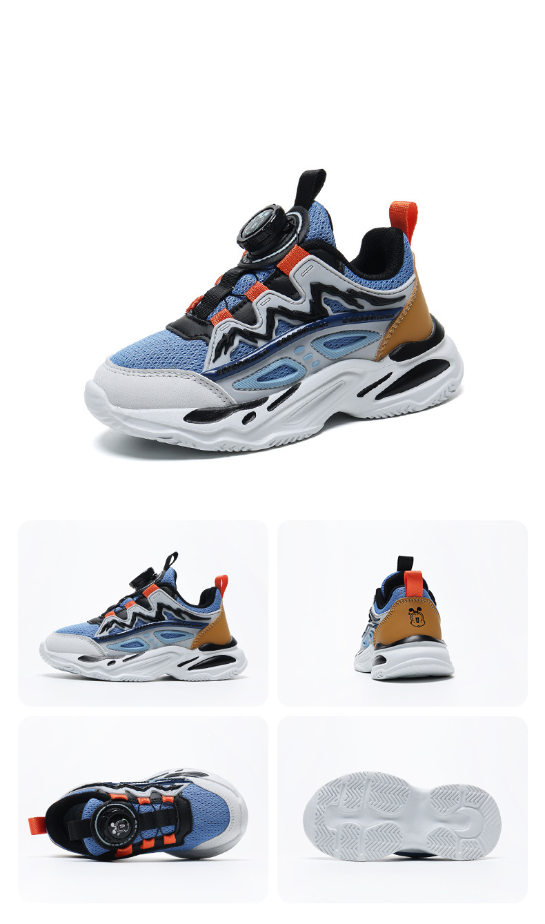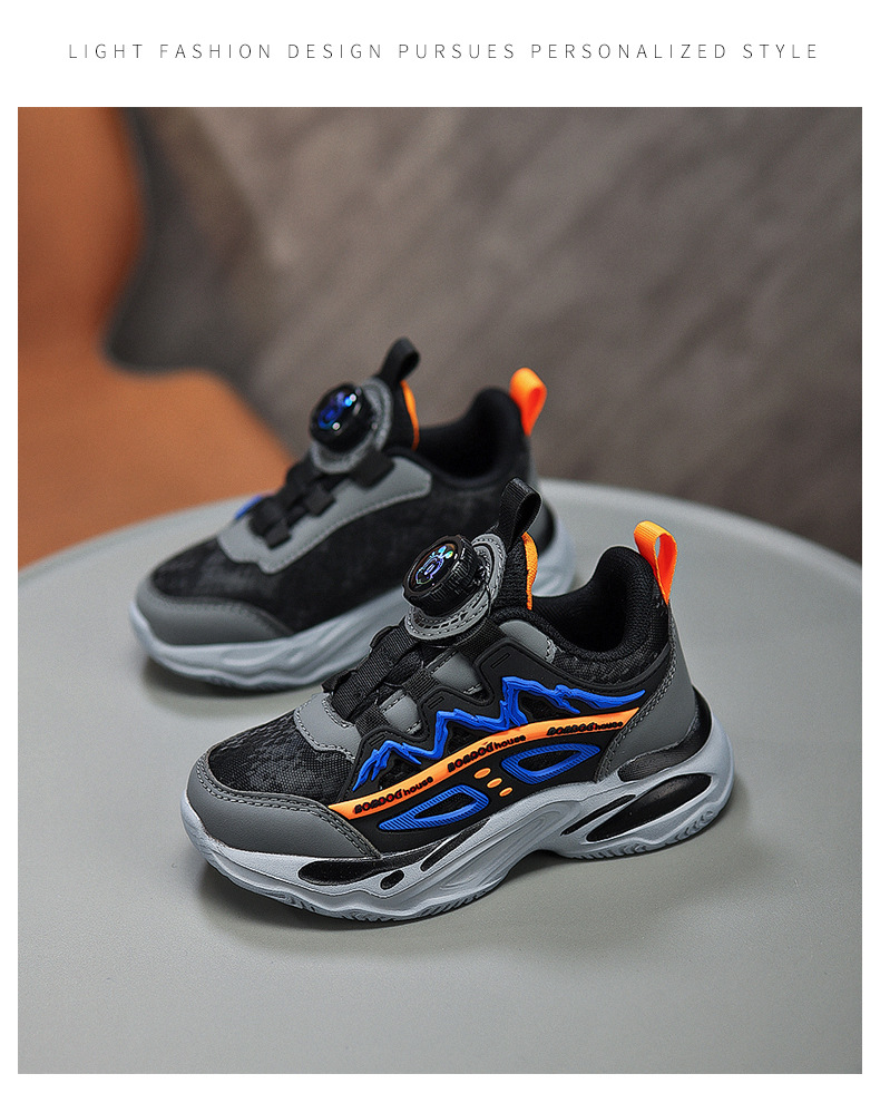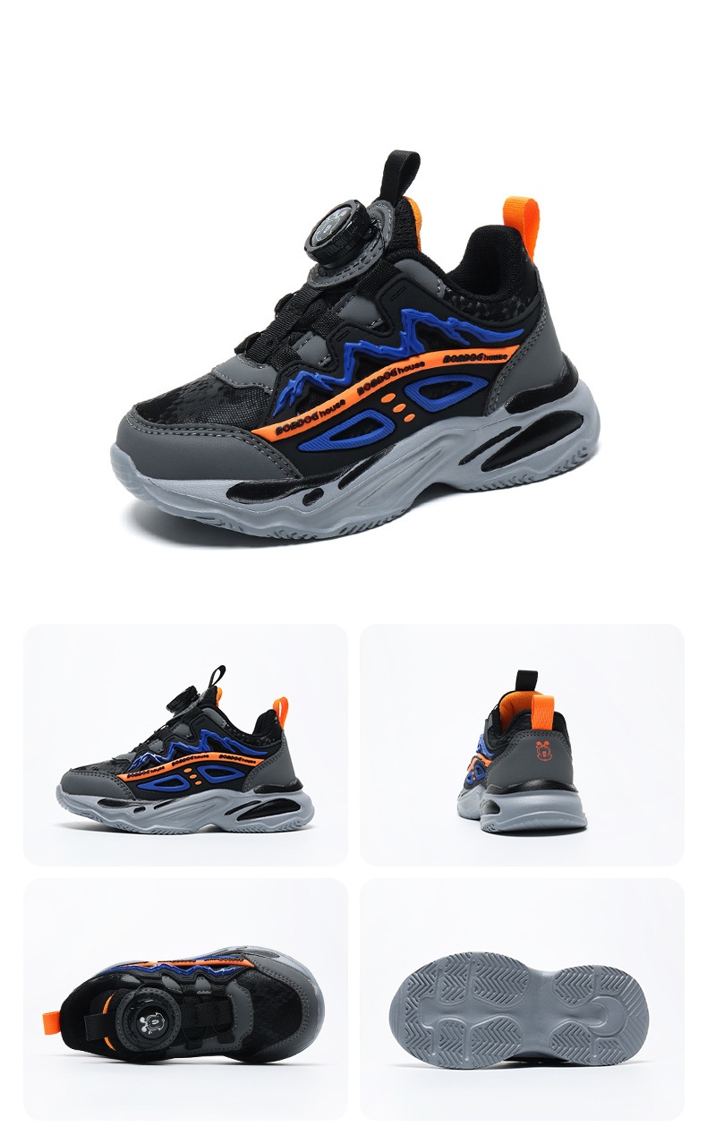 巴布豆童鞋男童鞋春秋新款网面透气运动鞋中大童女童旋转扣跑步鞋