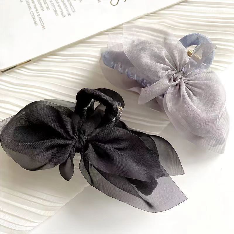 新款网纱蝴蝶结发夹在逃公主头饰抓夹超仙网红后脑勺高级感女发抓