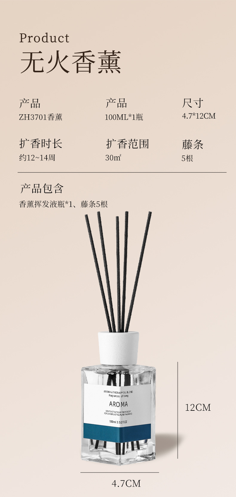 创意无火香薰家用卫生间除臭香氛清新剂酒店香氛持久藤条香熏批发
