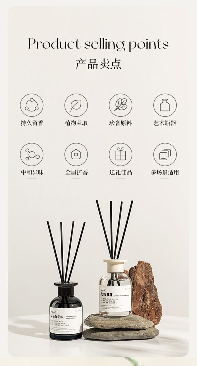 新款创意无火香薰家用卧室持久室内小众空气清新留香藤条香薰批发