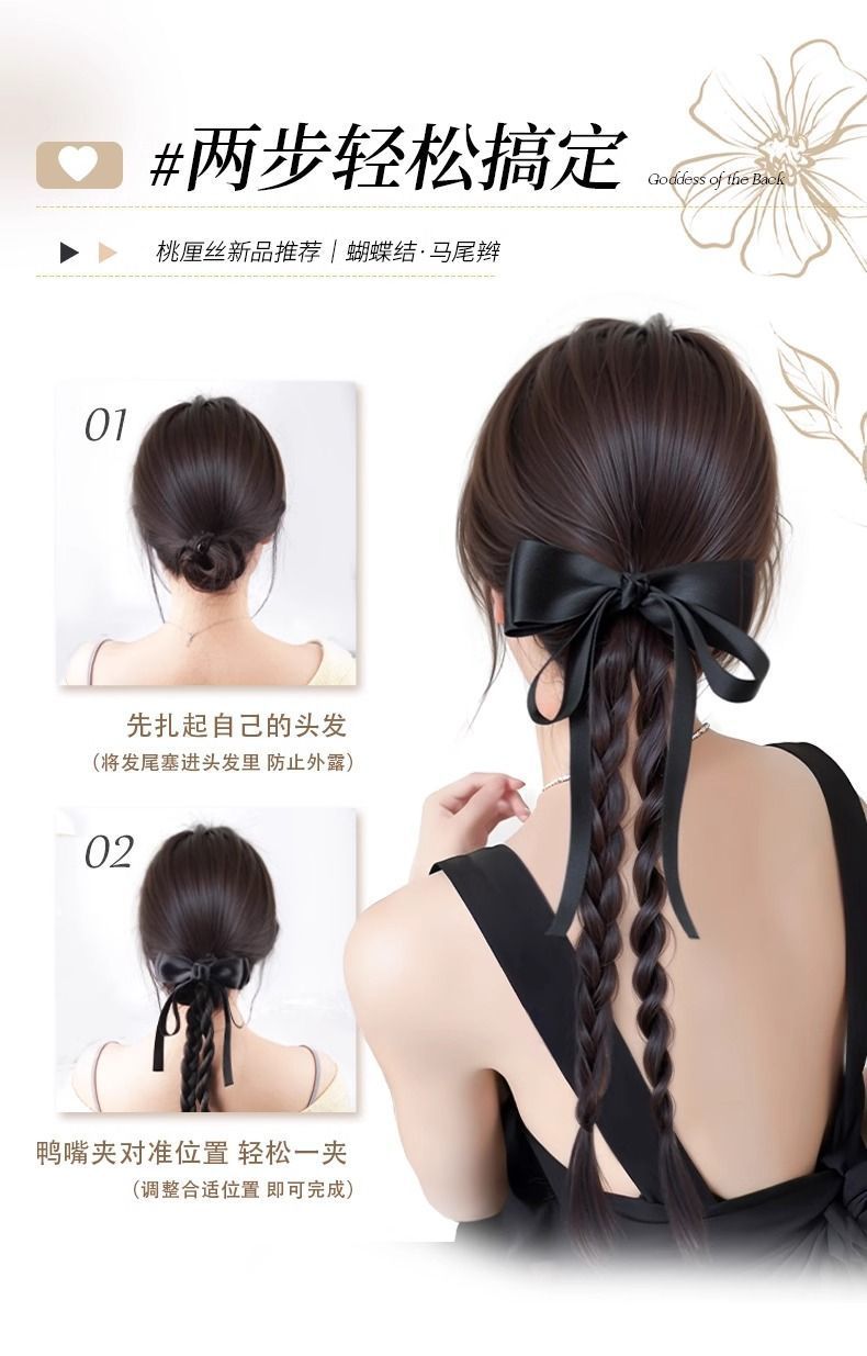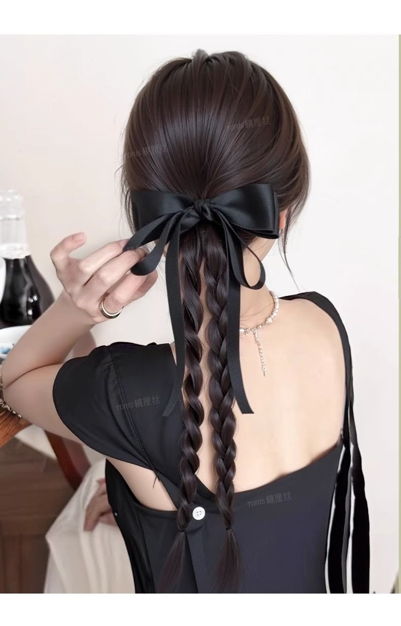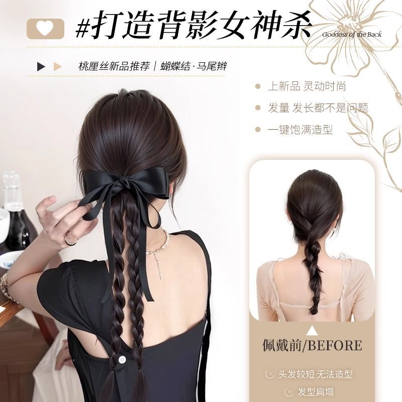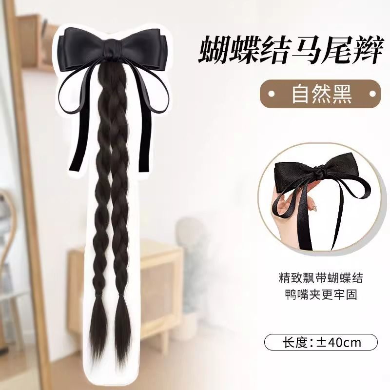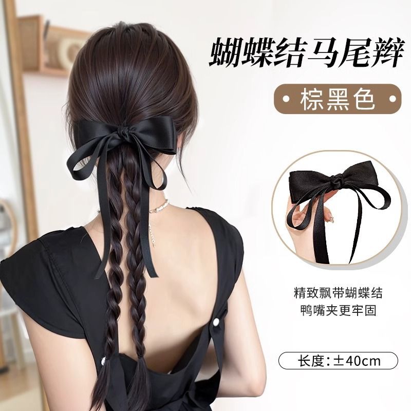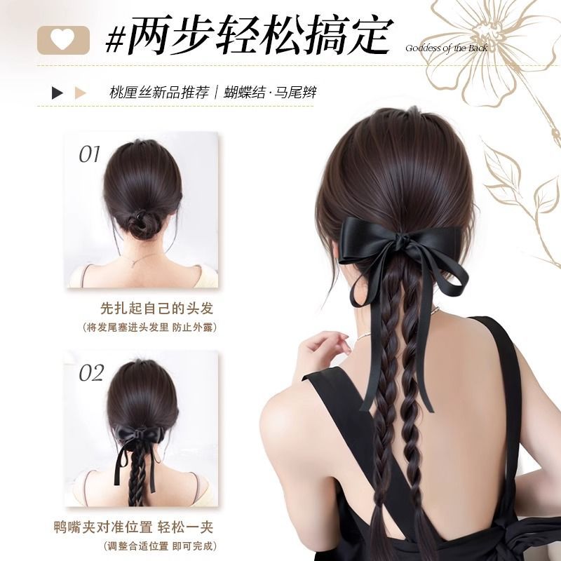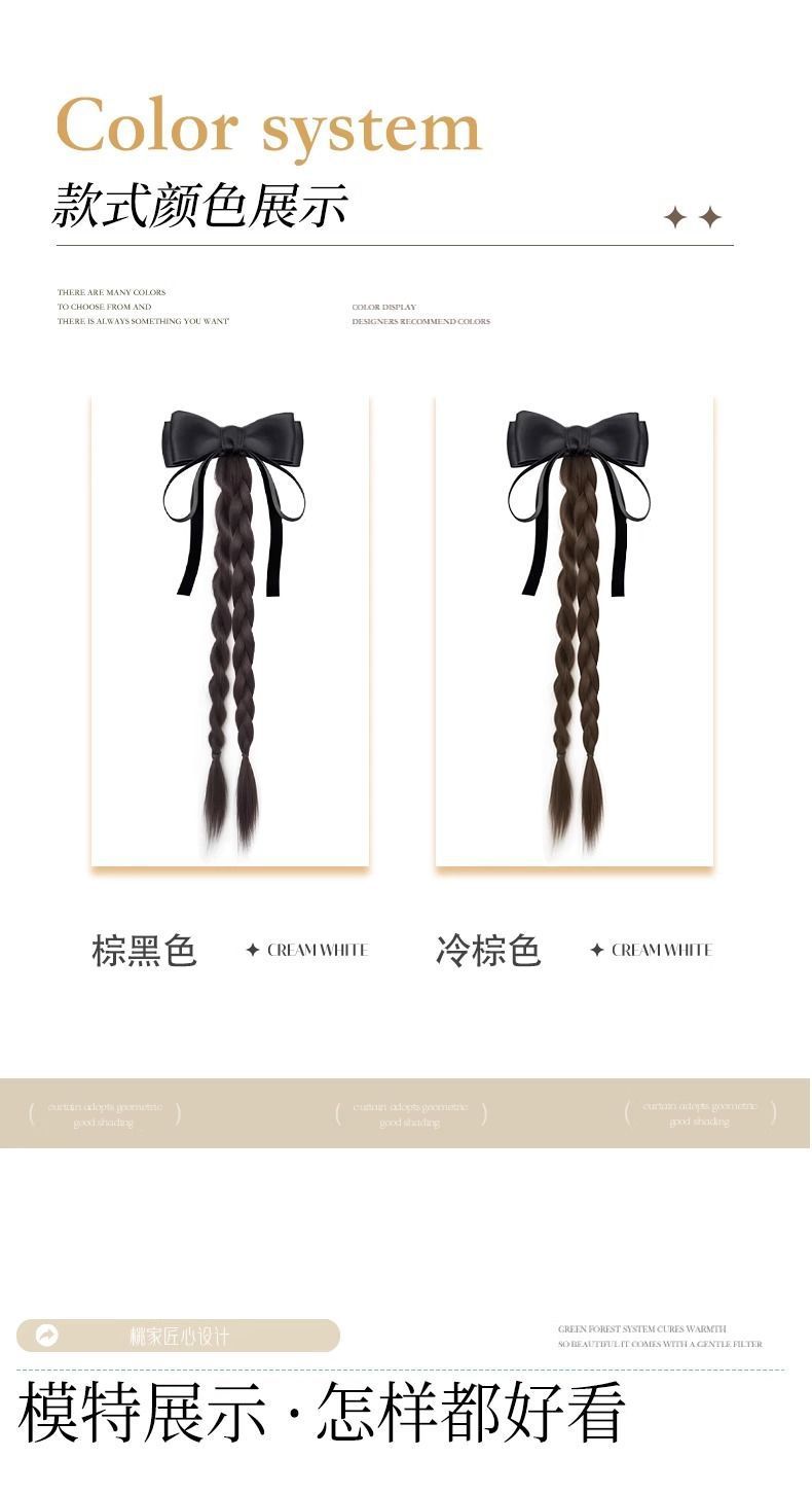 假发辫子女抓夹高马尾仿真发丝带双麻花长辫子发饰新中式马尾假发
