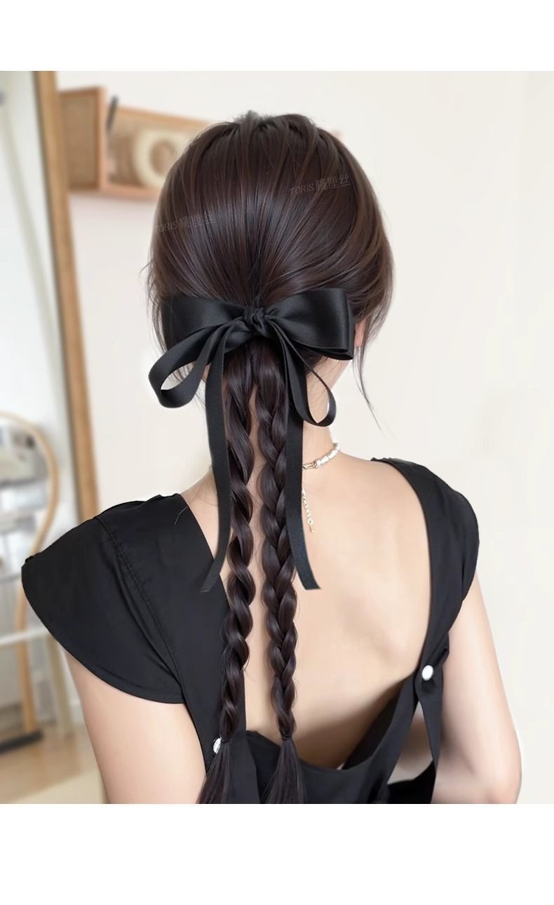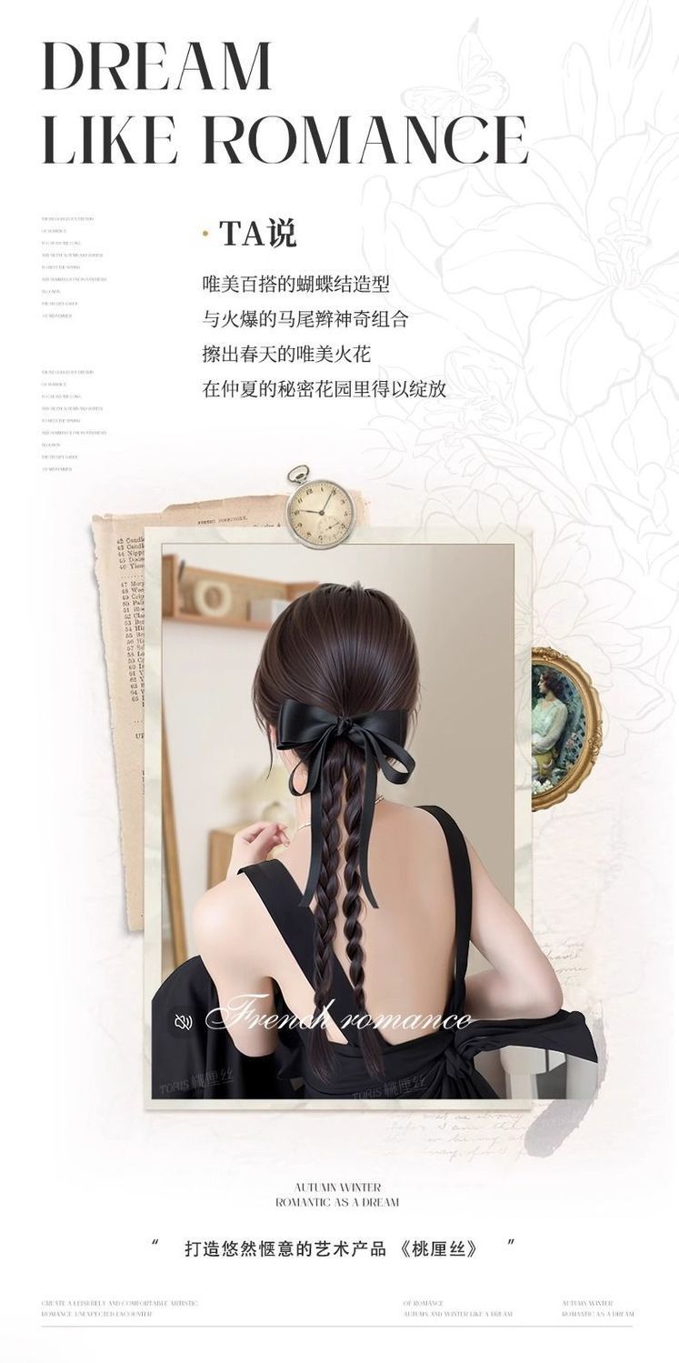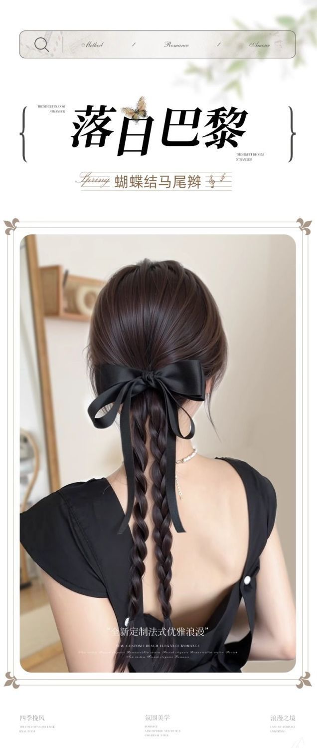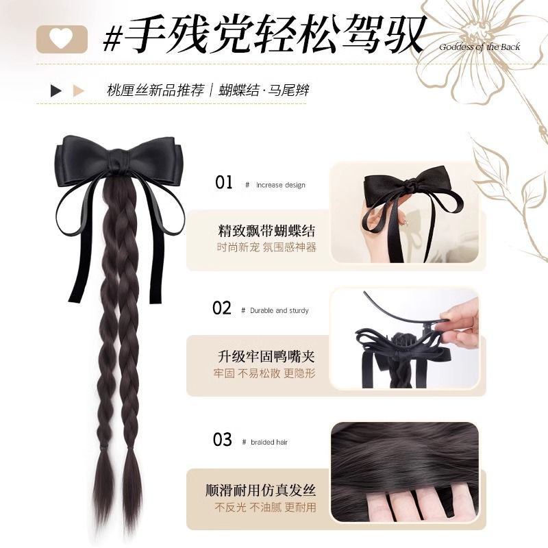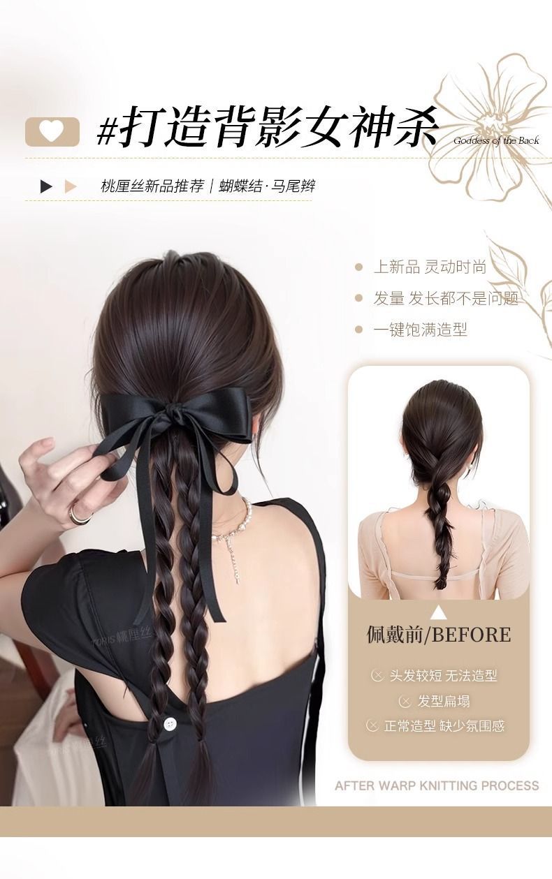 假发辫子女抓夹高马尾仿真发丝带双麻花长辫子发饰新中式马尾假发