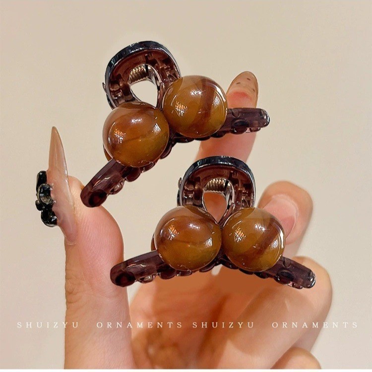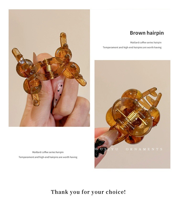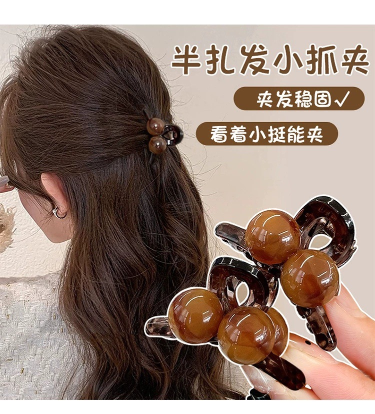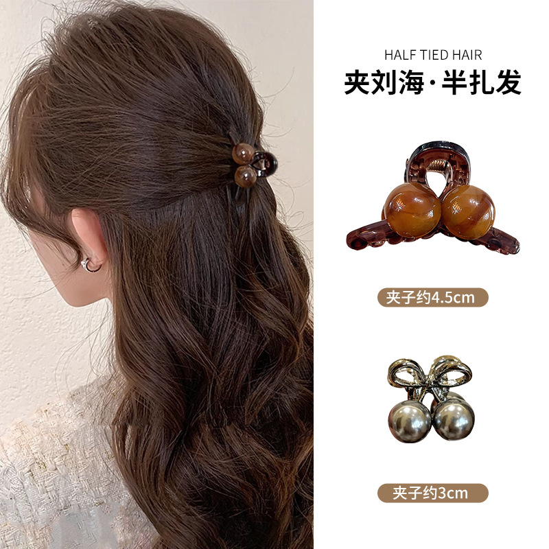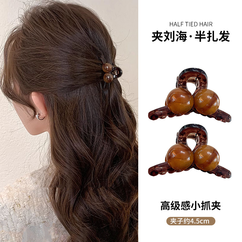秋冬咖色小抓夹女半扎发后脑勺发夹侧边刘海发卡高级感鲨鱼夹发饰
