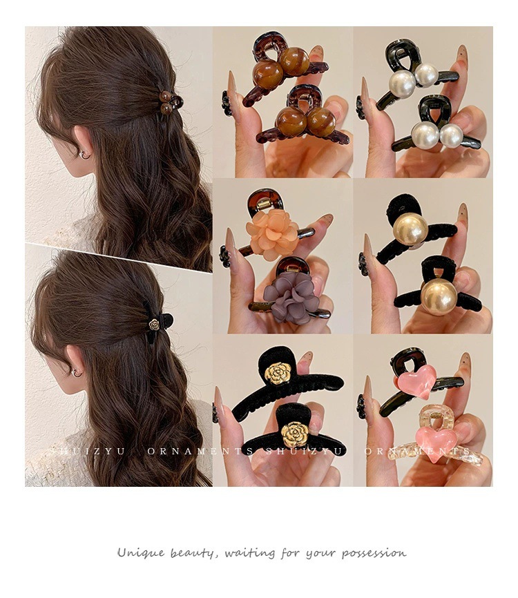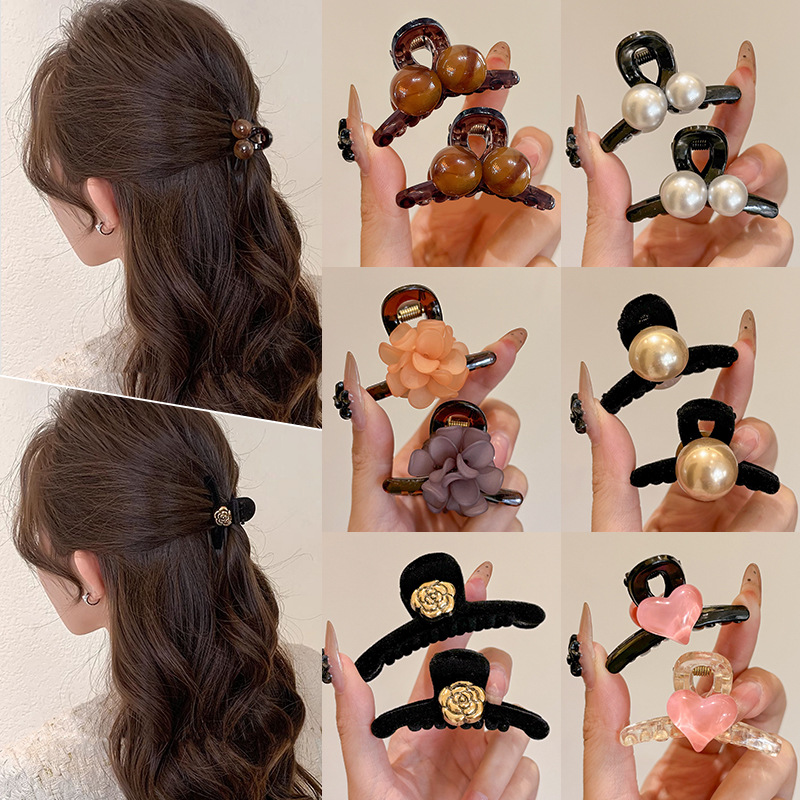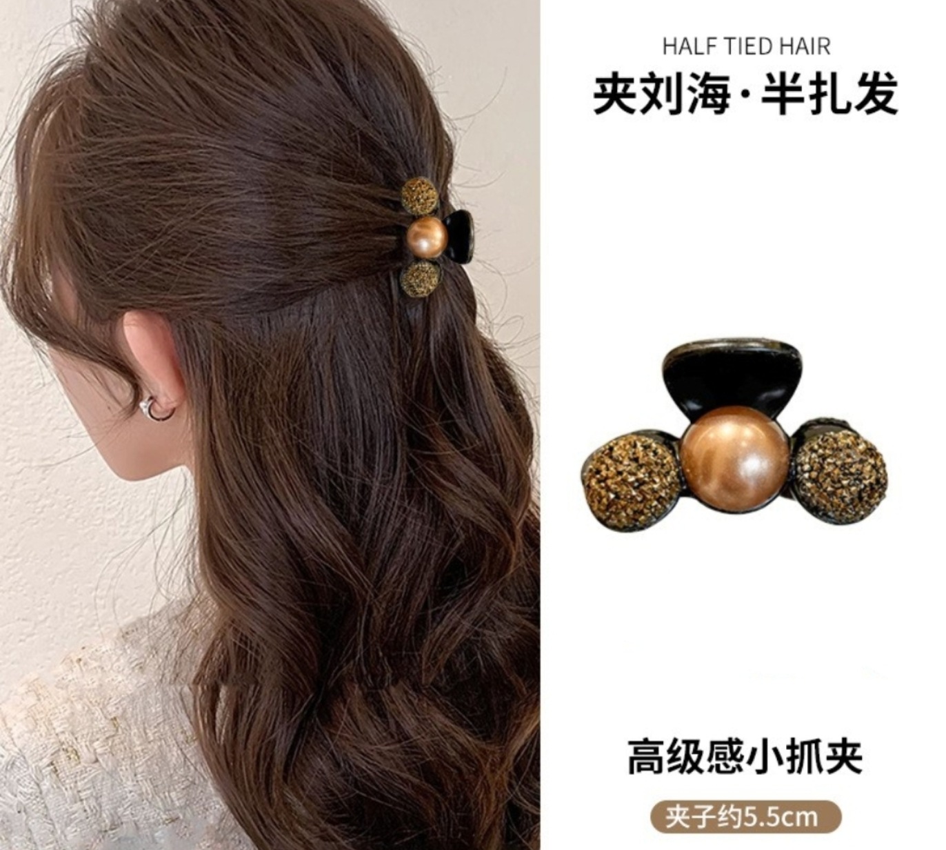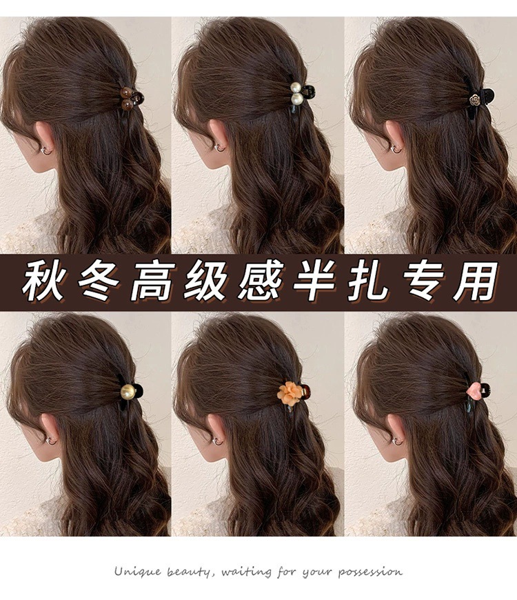 秋冬咖色小抓夹女半扎发后脑勺发夹侧边刘海发卡高级感鲨鱼夹发饰
