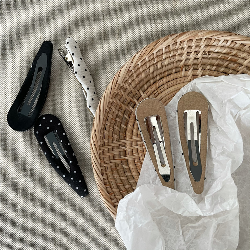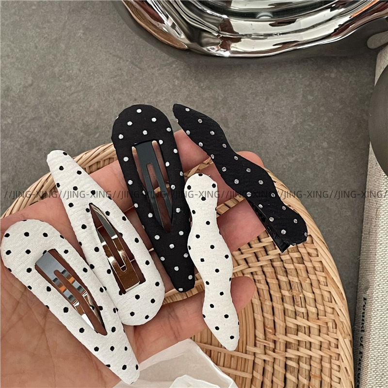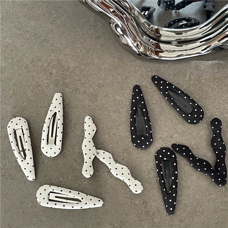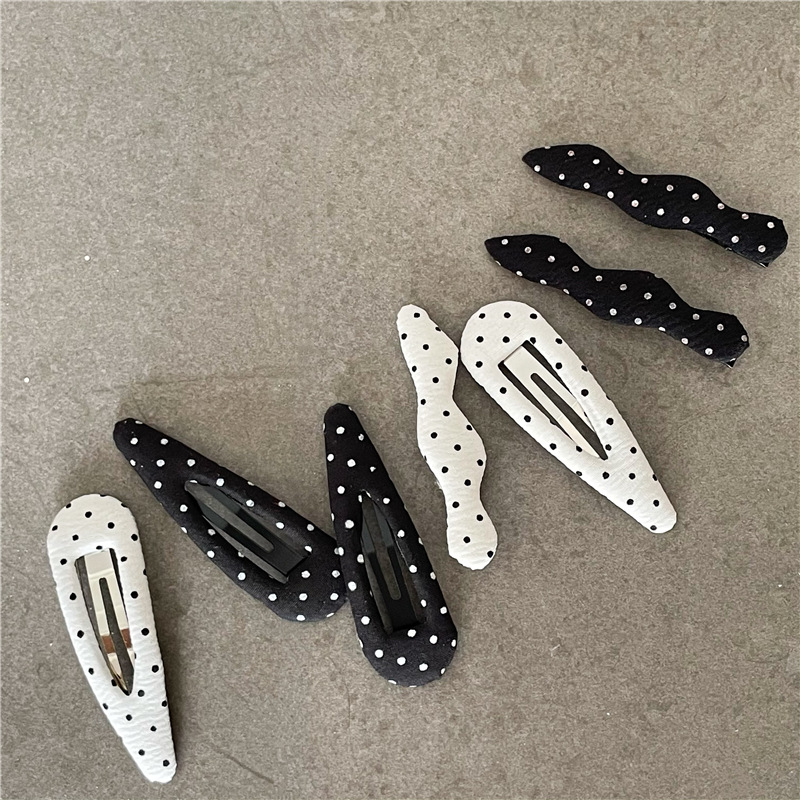 简约黑白波点几何发夹复古布艺水滴BB夹侧边边夹刘海夹