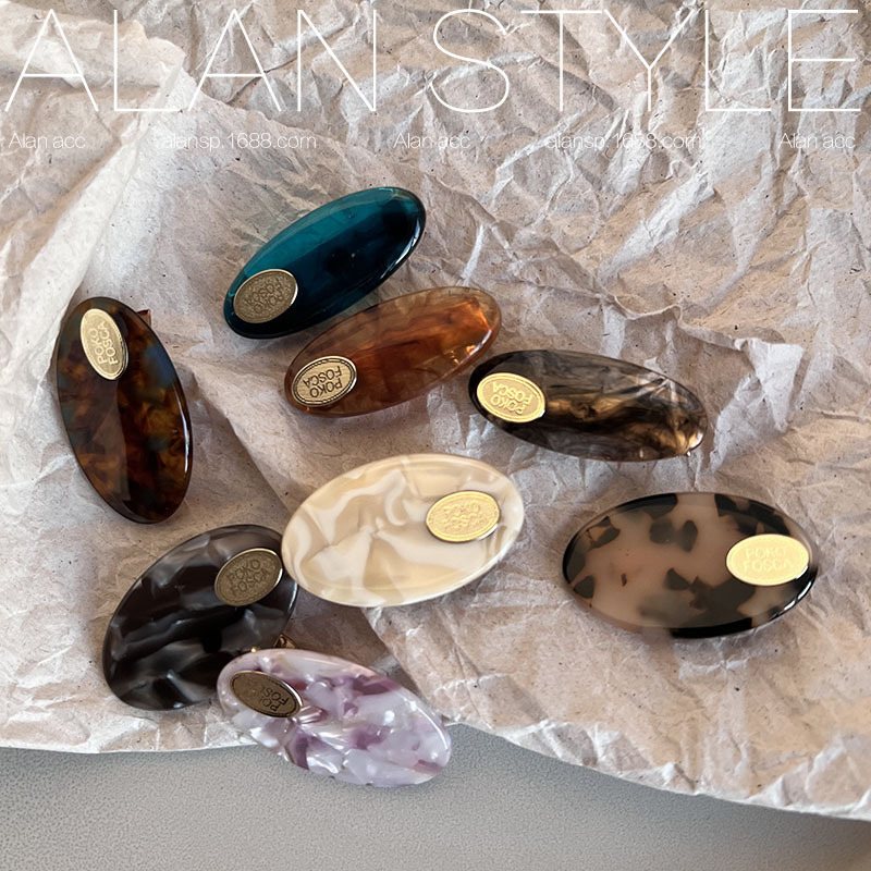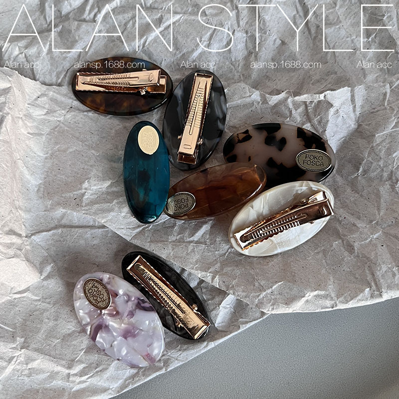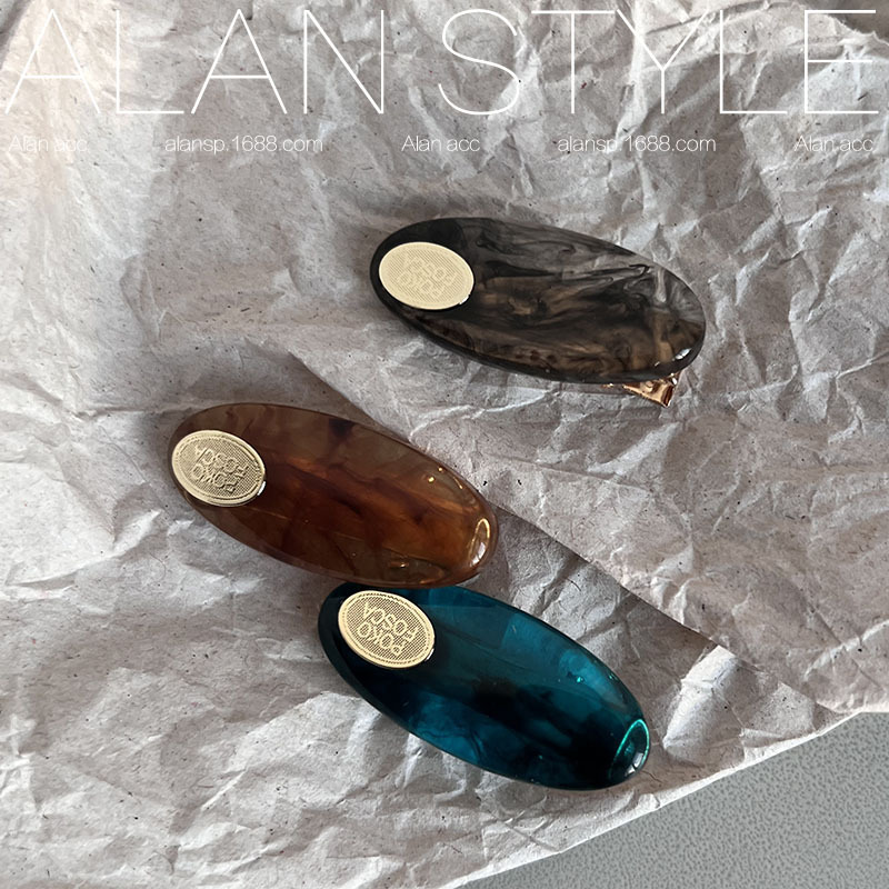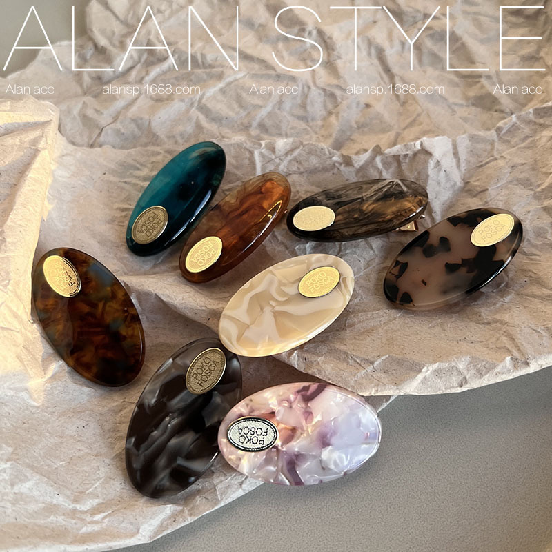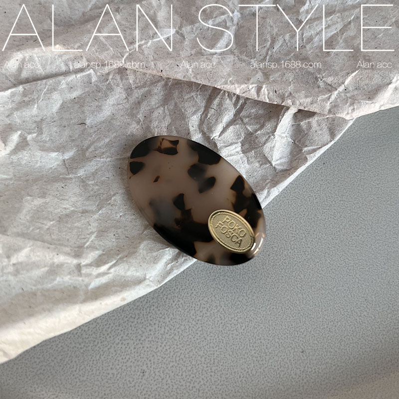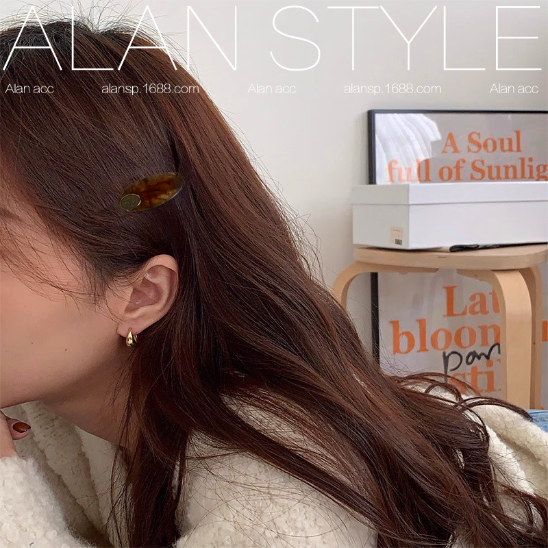 ALAN韩国复古醋酸边夹发夹高级感百搭刘海夹小金标椭圆一字夹女