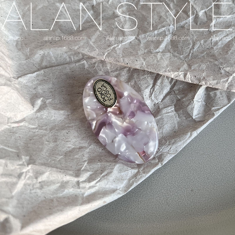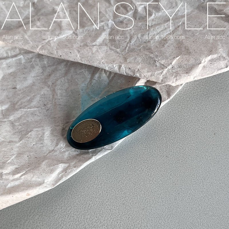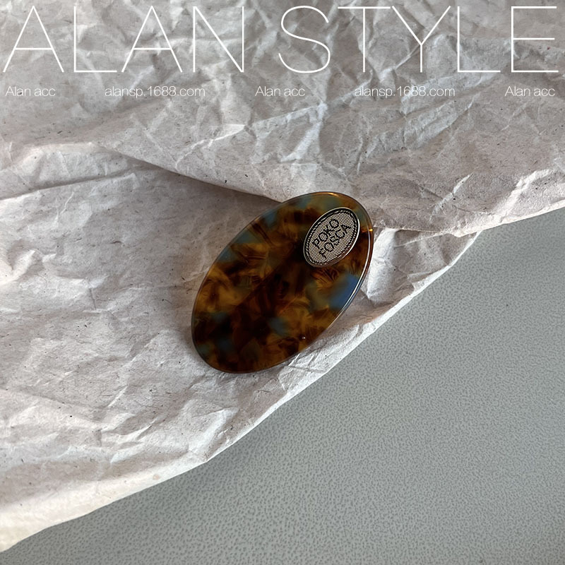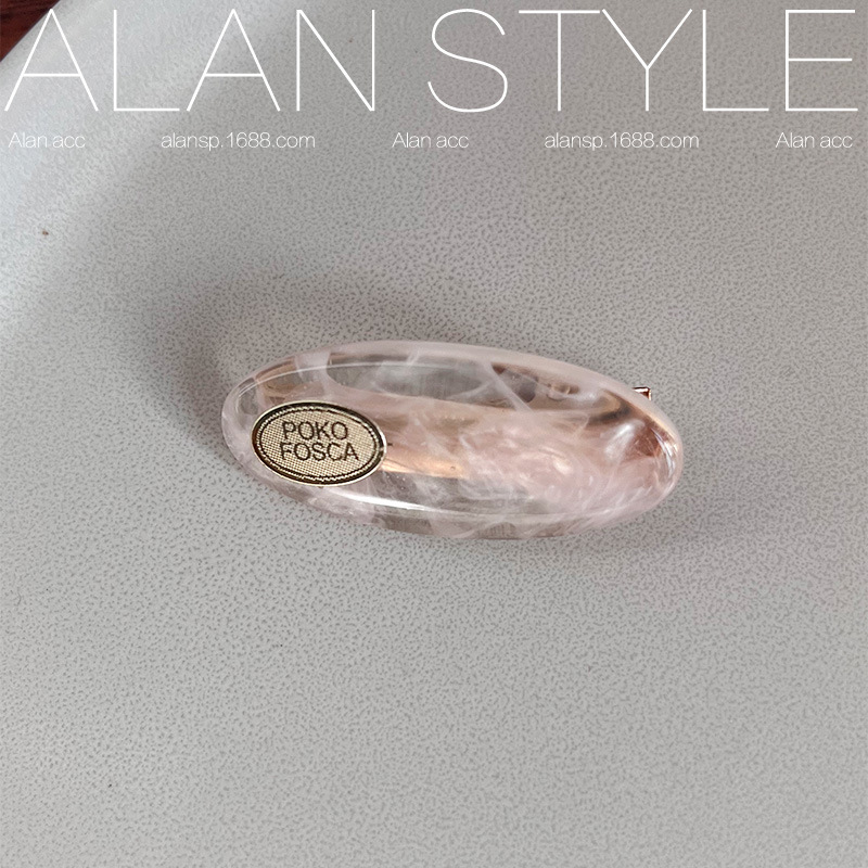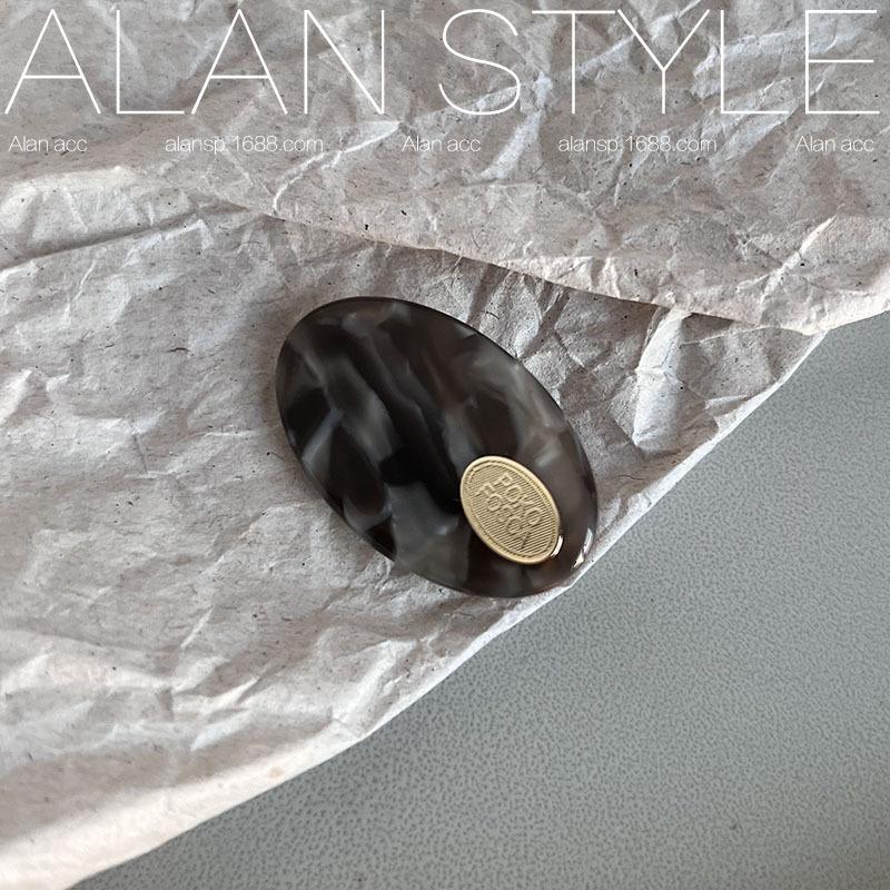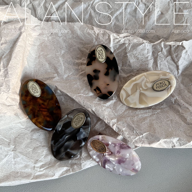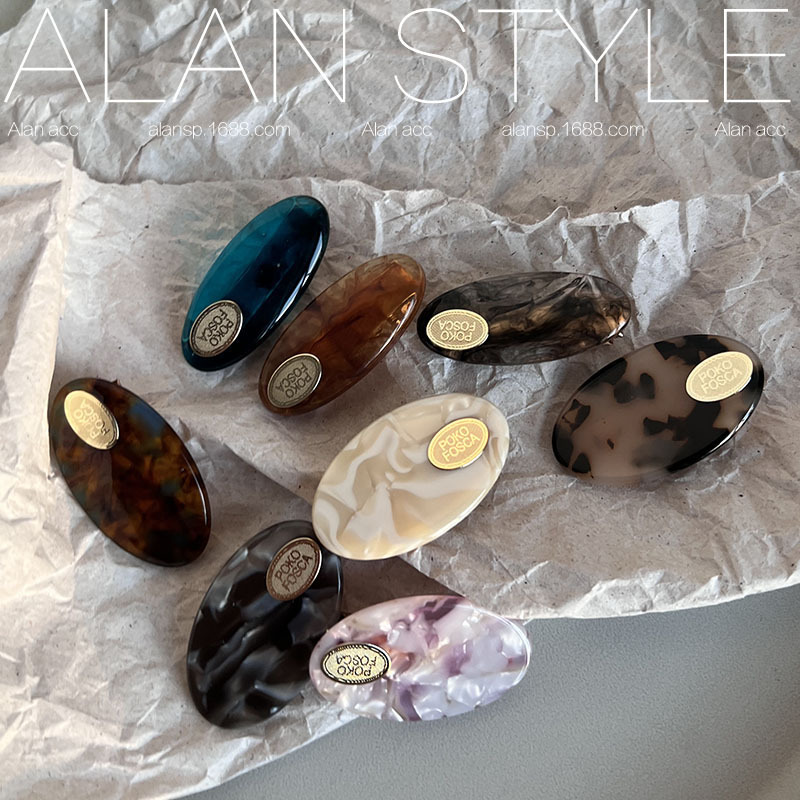 ALAN韩国复古醋酸边夹发夹高级感百搭刘海夹小金标椭圆一字夹女