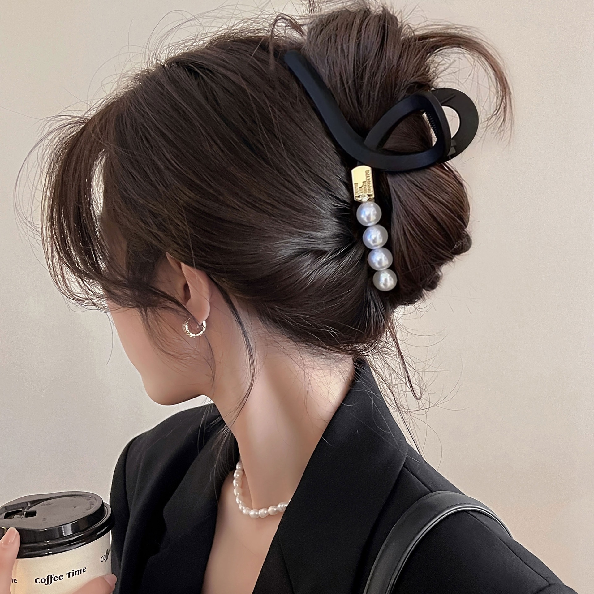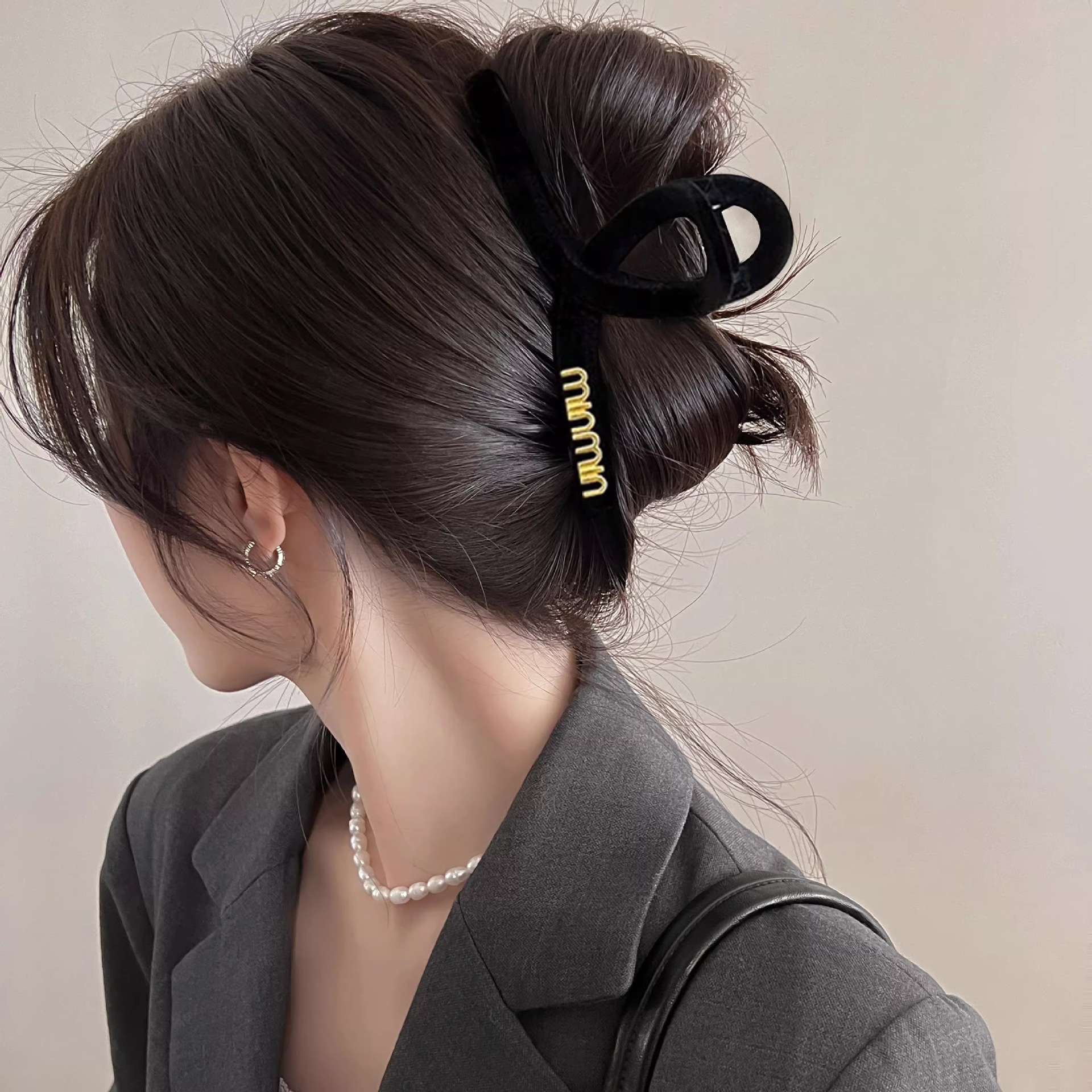 超大号简约气质字母抓夹女2025新款高级感后脑勺盘发鲨鱼夹子头饰