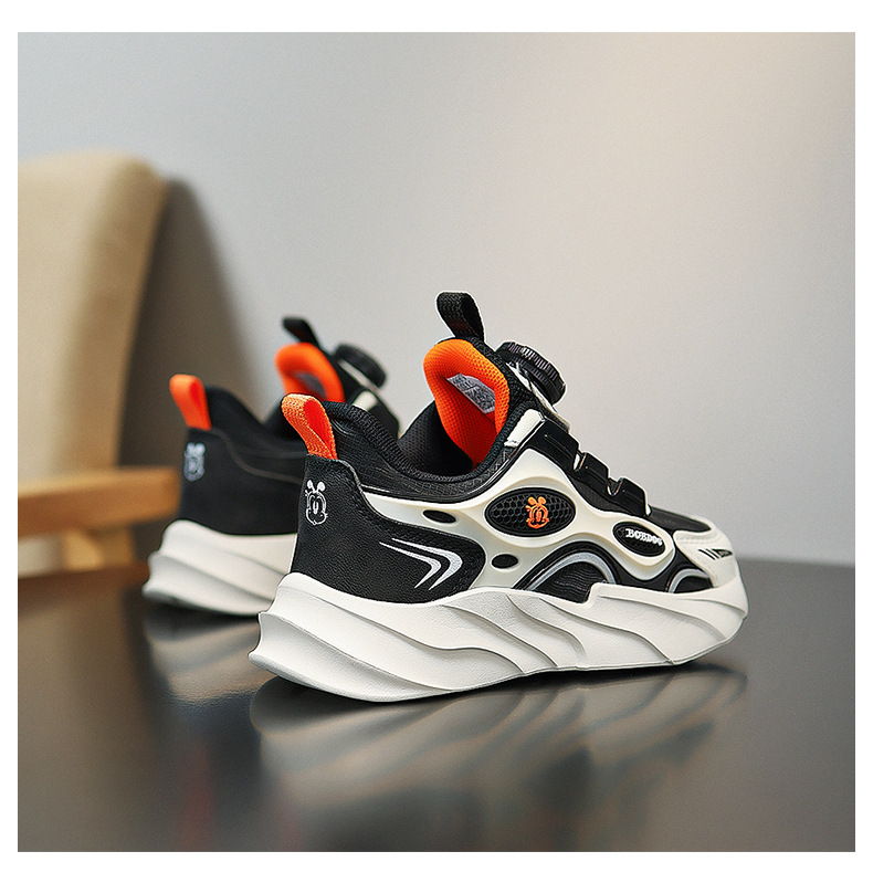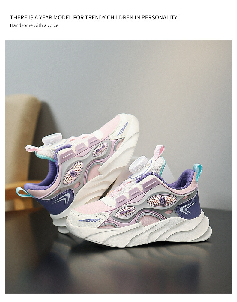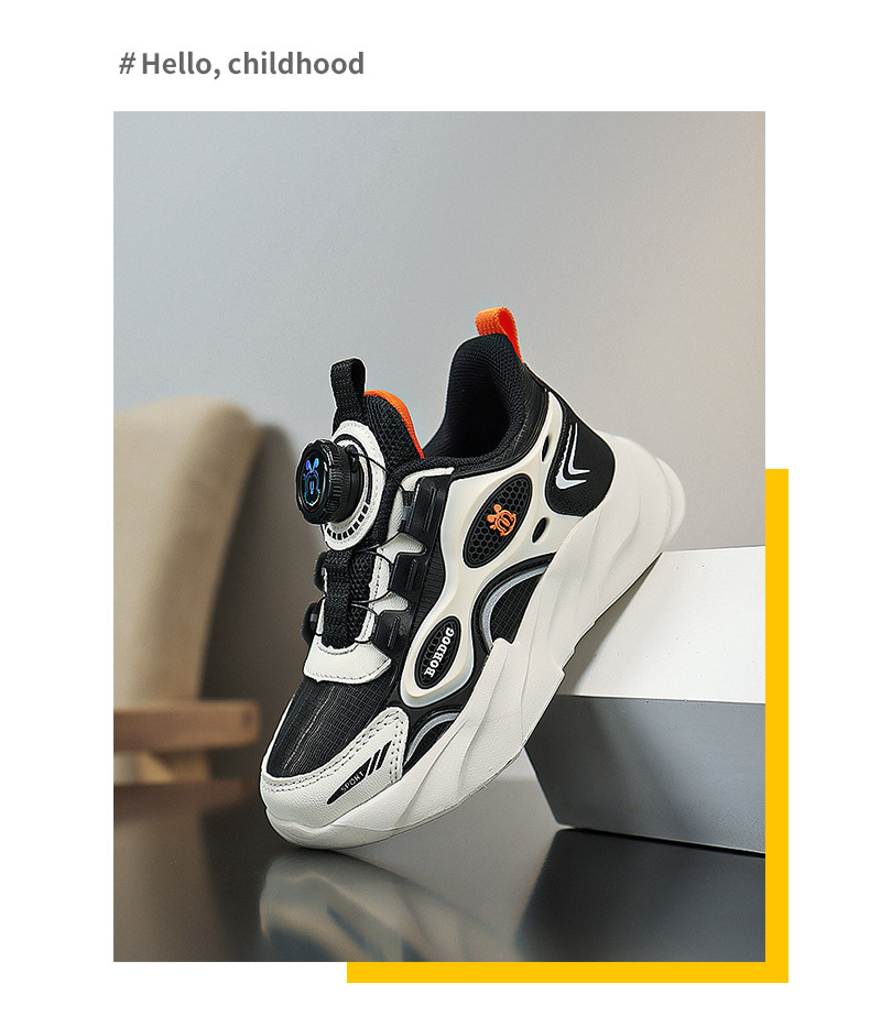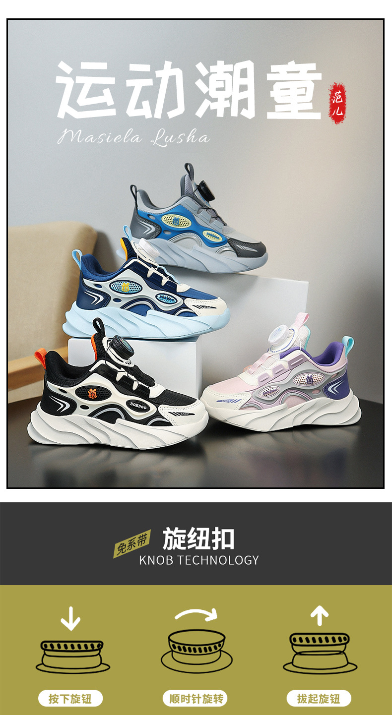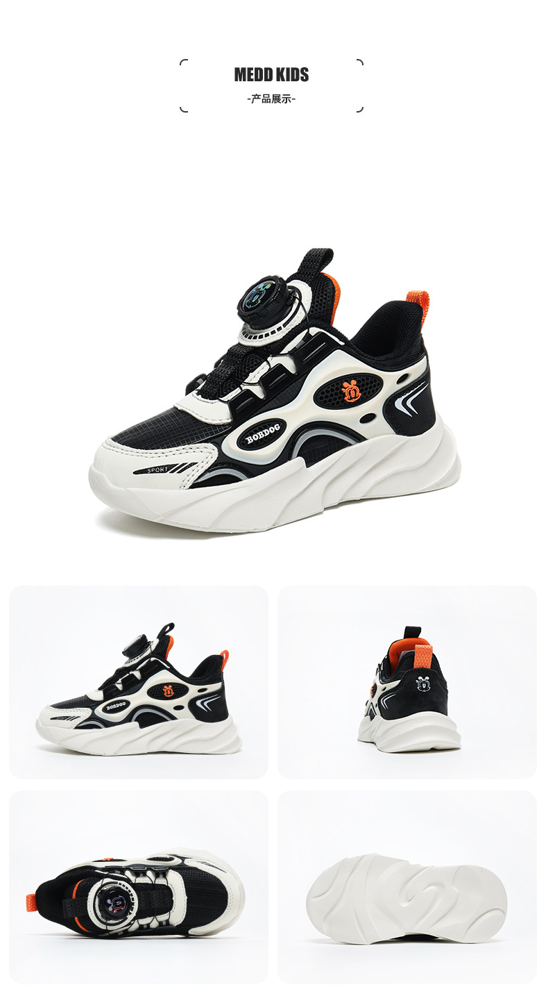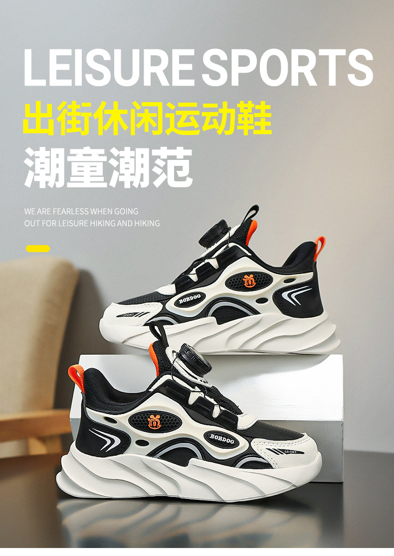 巴布豆男女童鞋春秋新款皮面透气儿童运动鞋软底跑步鞋轻便纽扣鞋