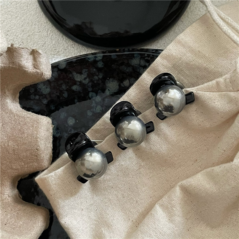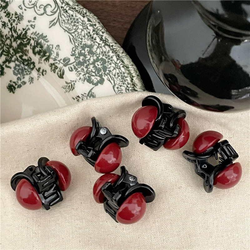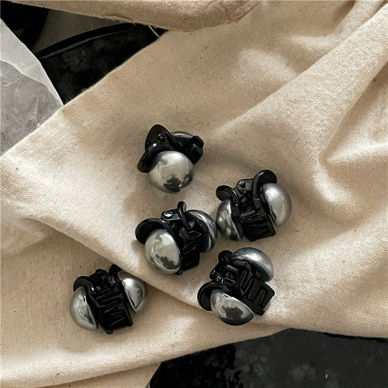 红色仿塑料珍珠迷你侧边刘海小抓夹新款高级感灰色珍珠小发夹发抓