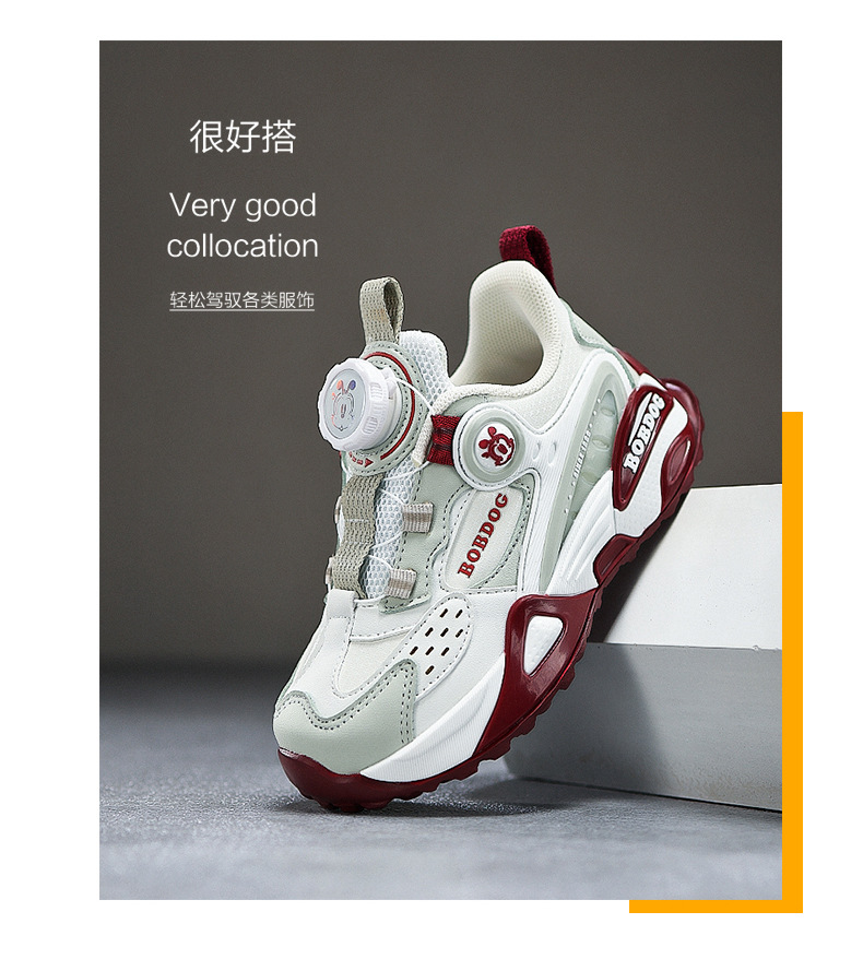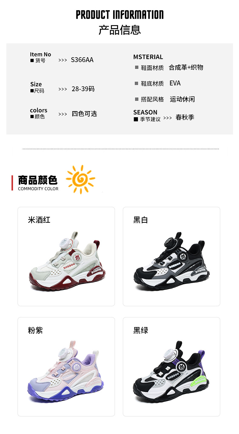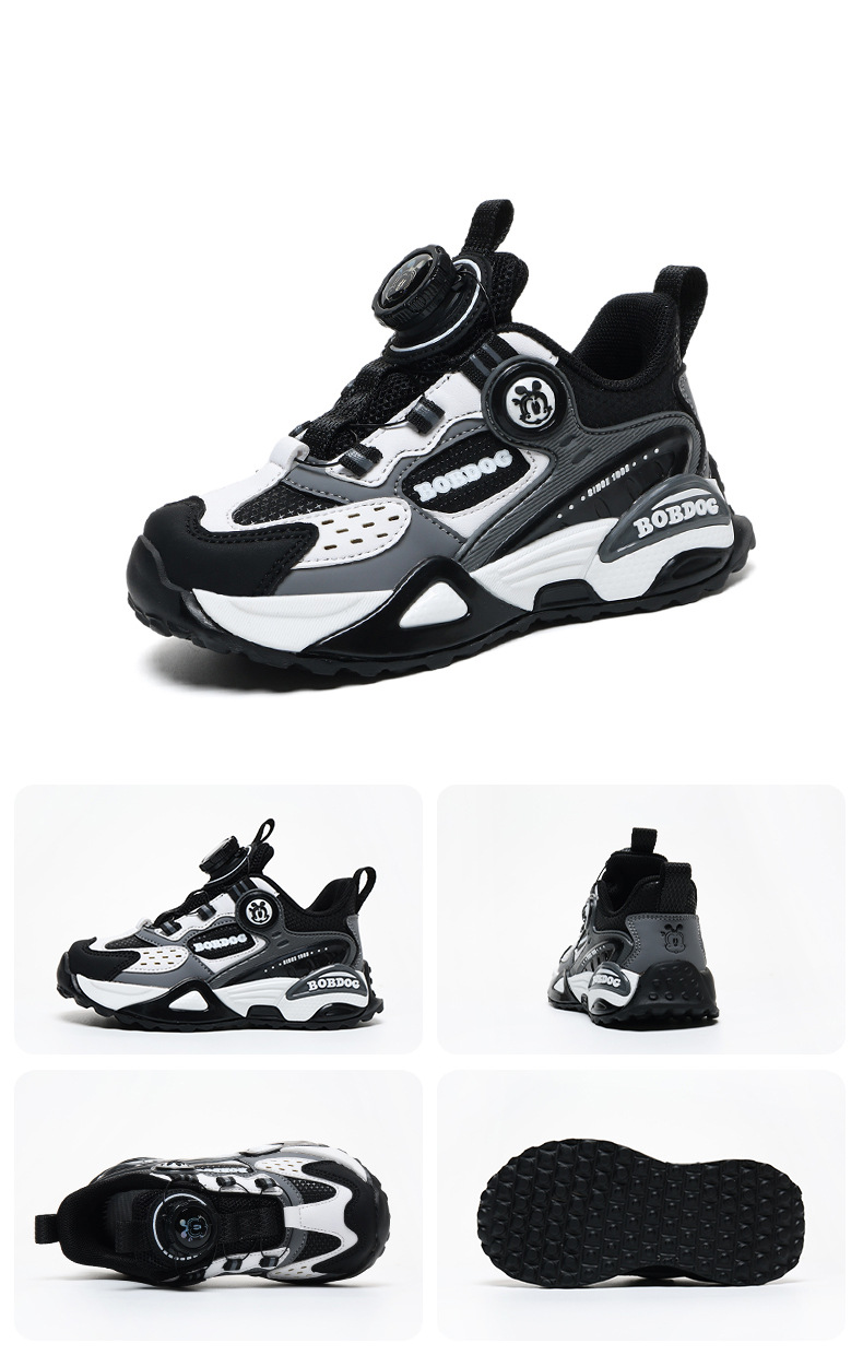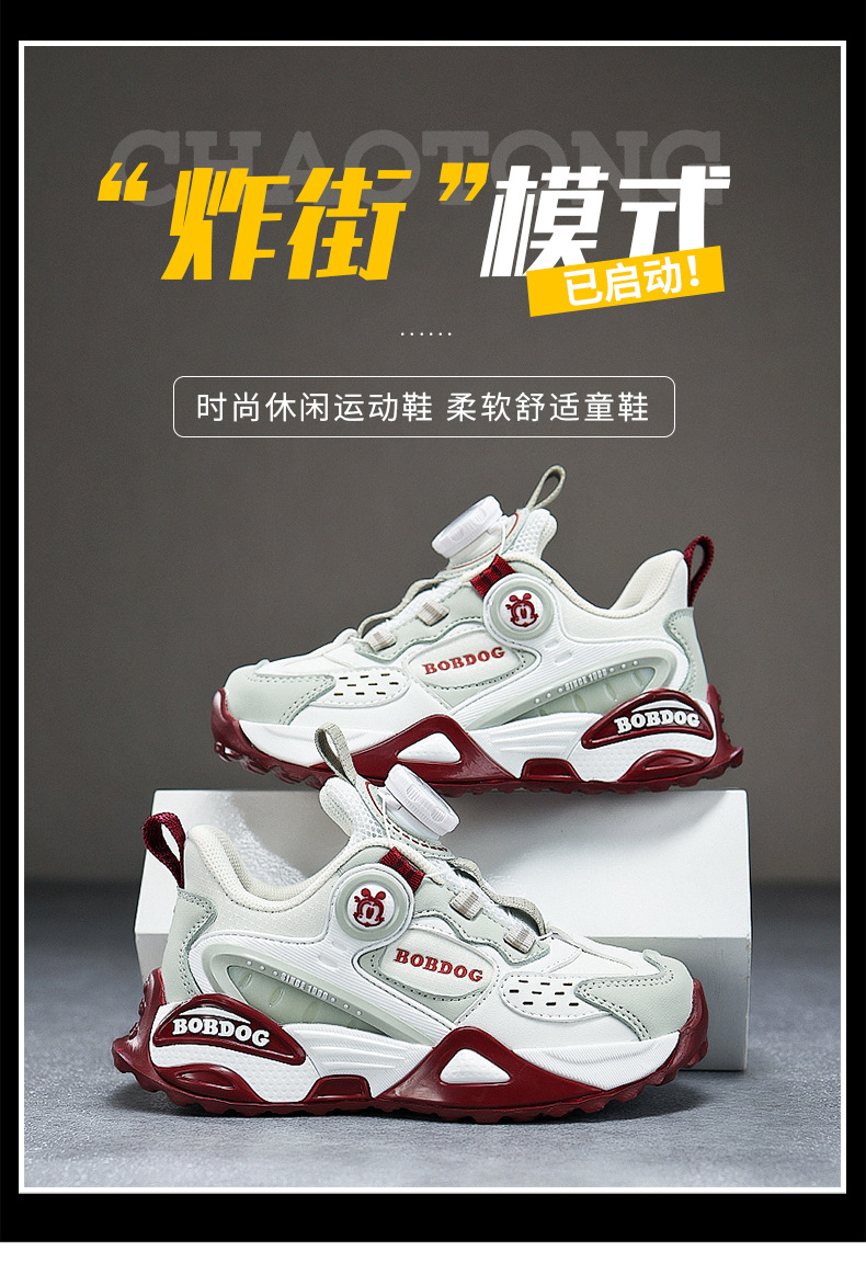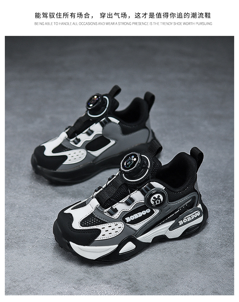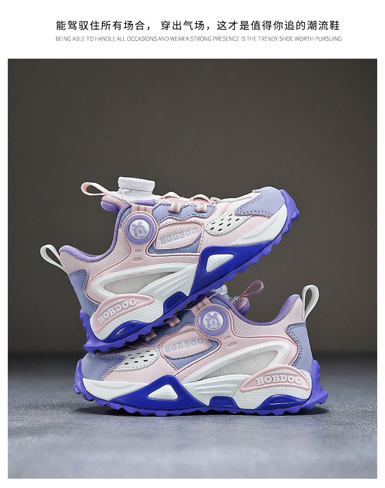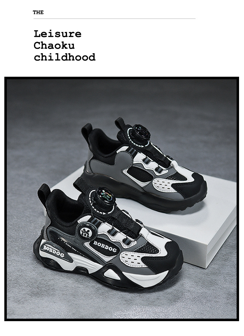 巴布豆男童鞋运动鞋2024中大童鞋软底潮春秋女童新款皮面旋转扣鞋