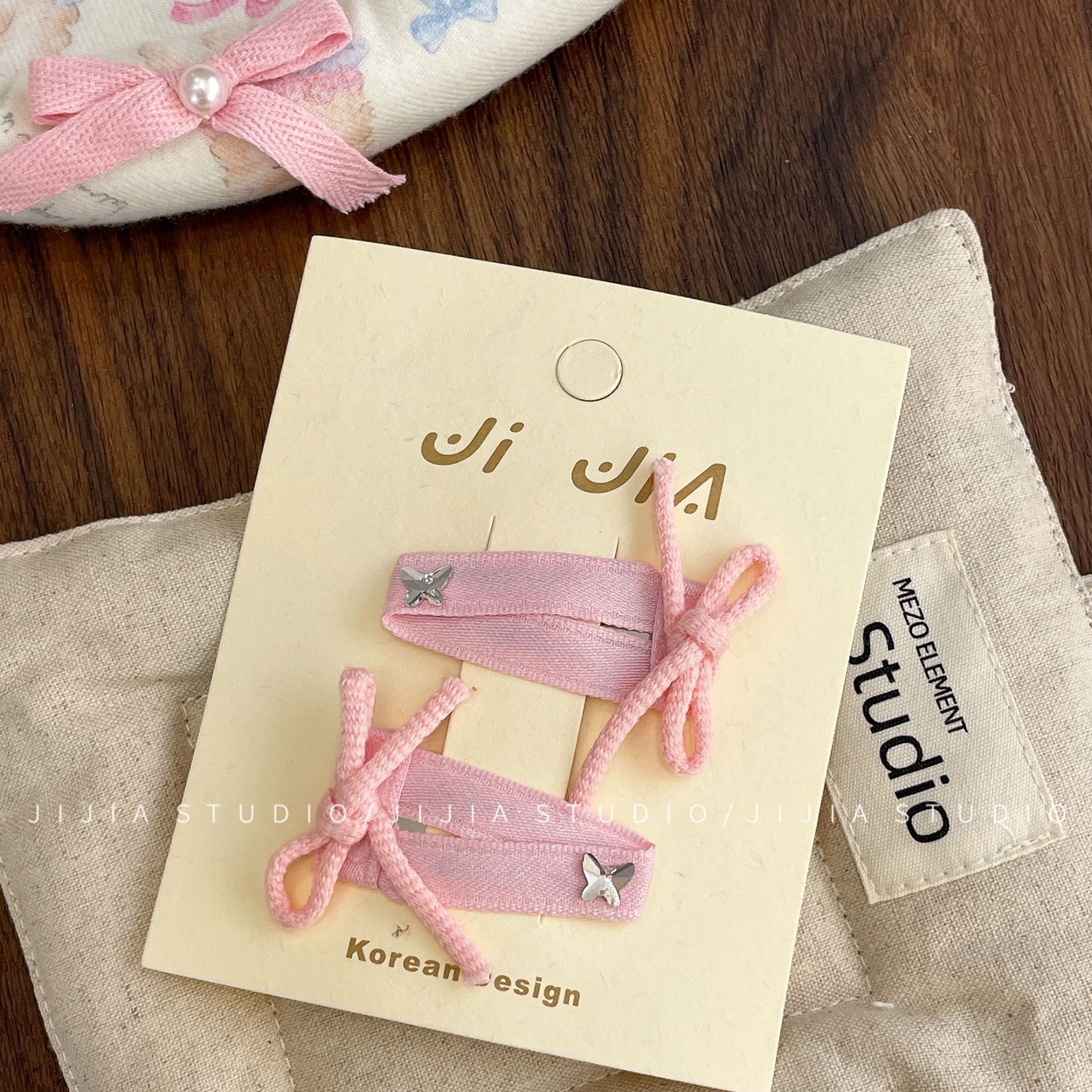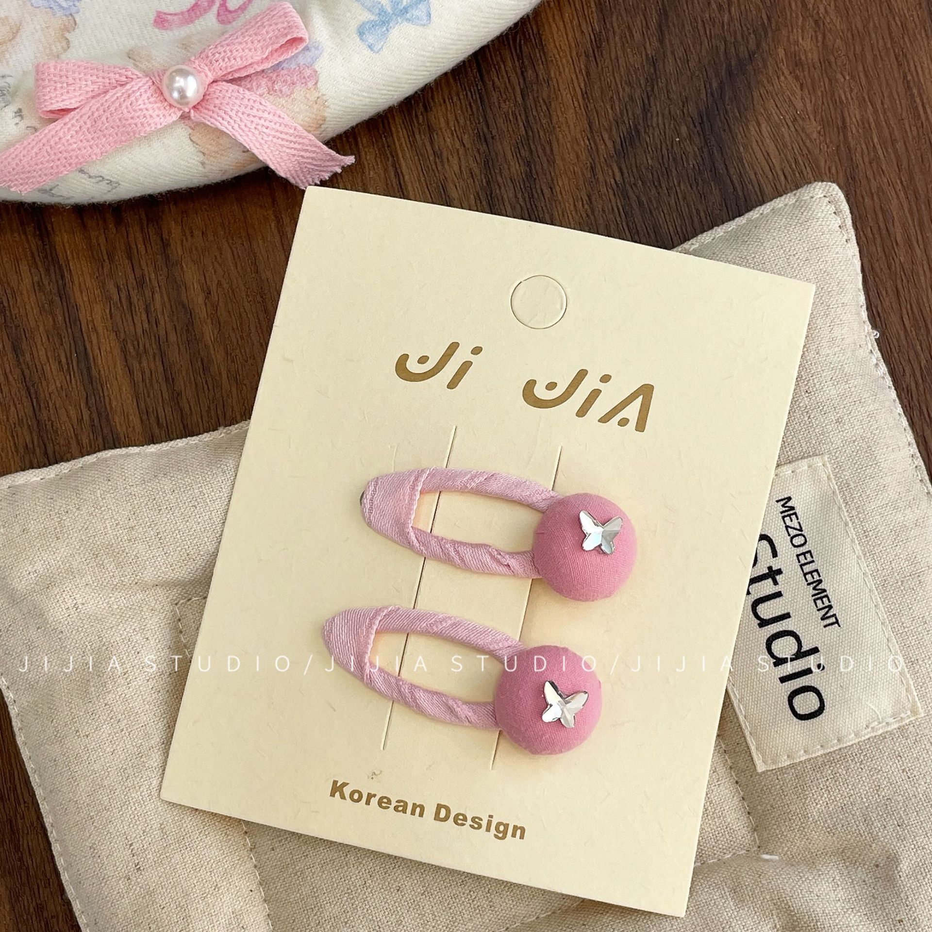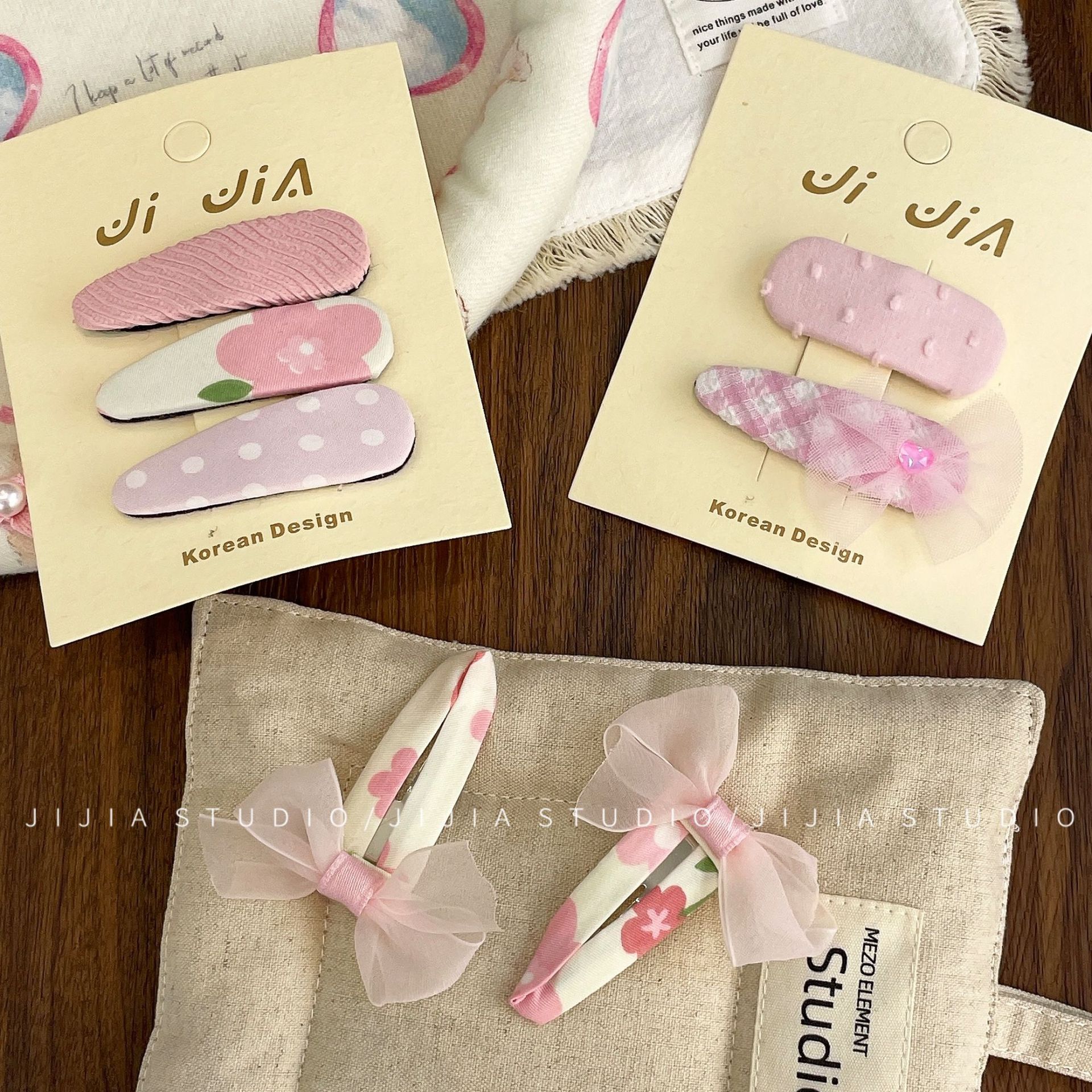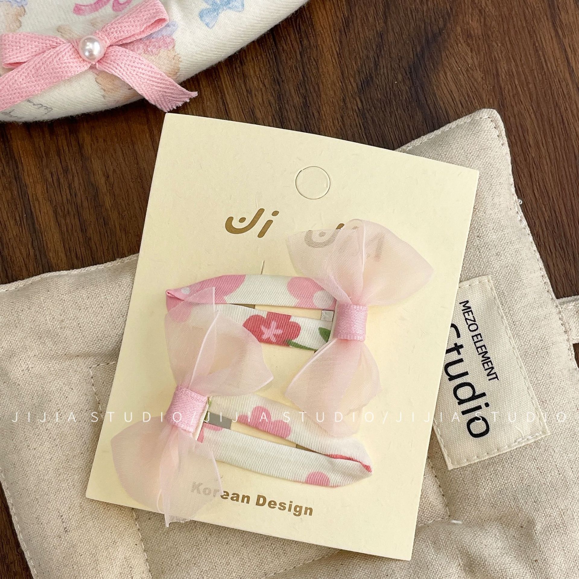 温柔儿童粉色蝴蝶结发夹韩系甜美网纱碎花BB夹不伤发宝宝碎发夹