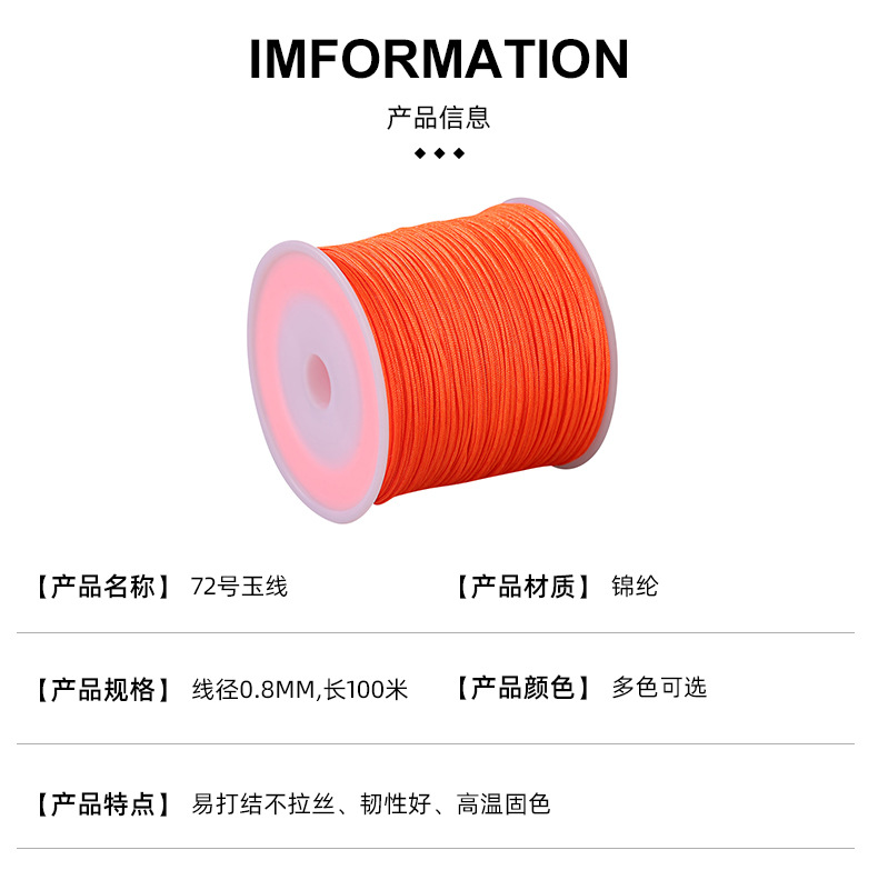 72号玉线0.8mm手工编织手绳珠宝手链手串diy项链线材耐磨50米玉线