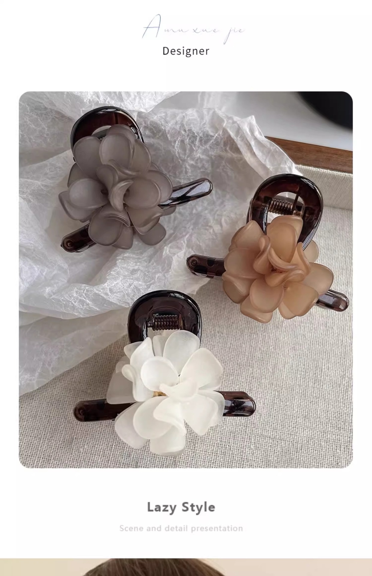 山茶花精致小抓夹后脑勺半扎发夹女高级感披肩发卡短发夹子发饰品