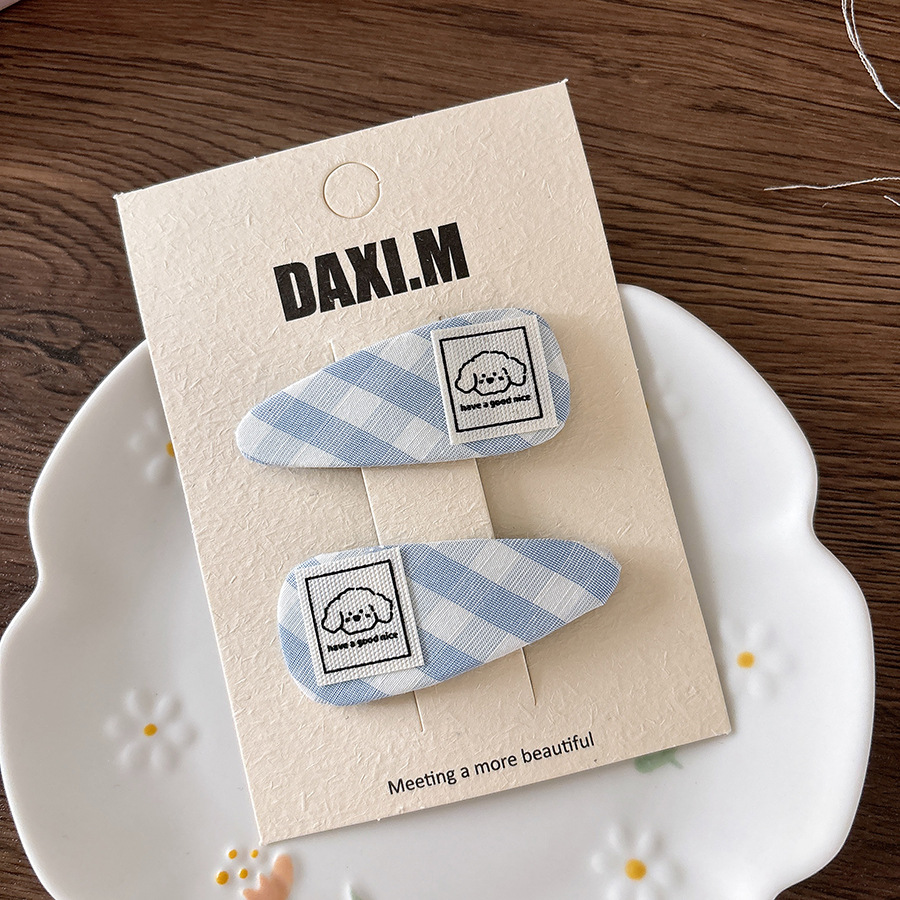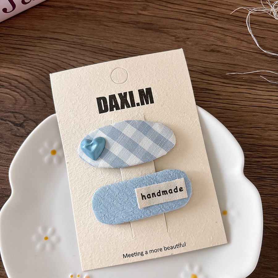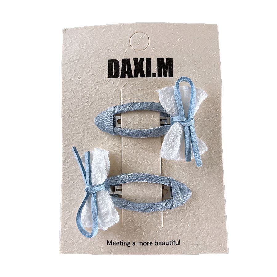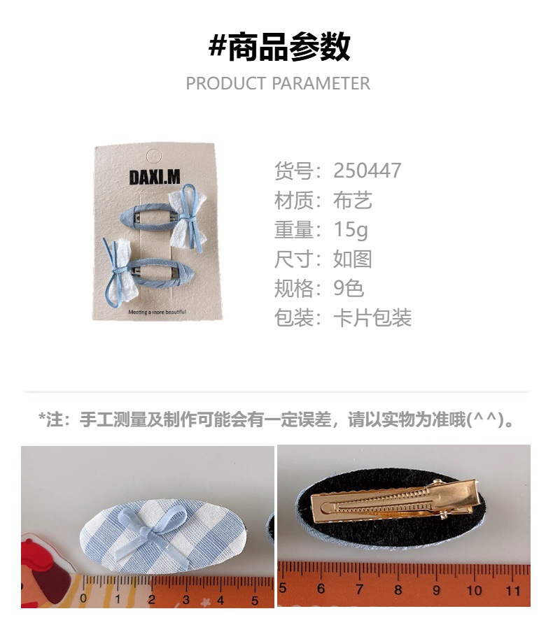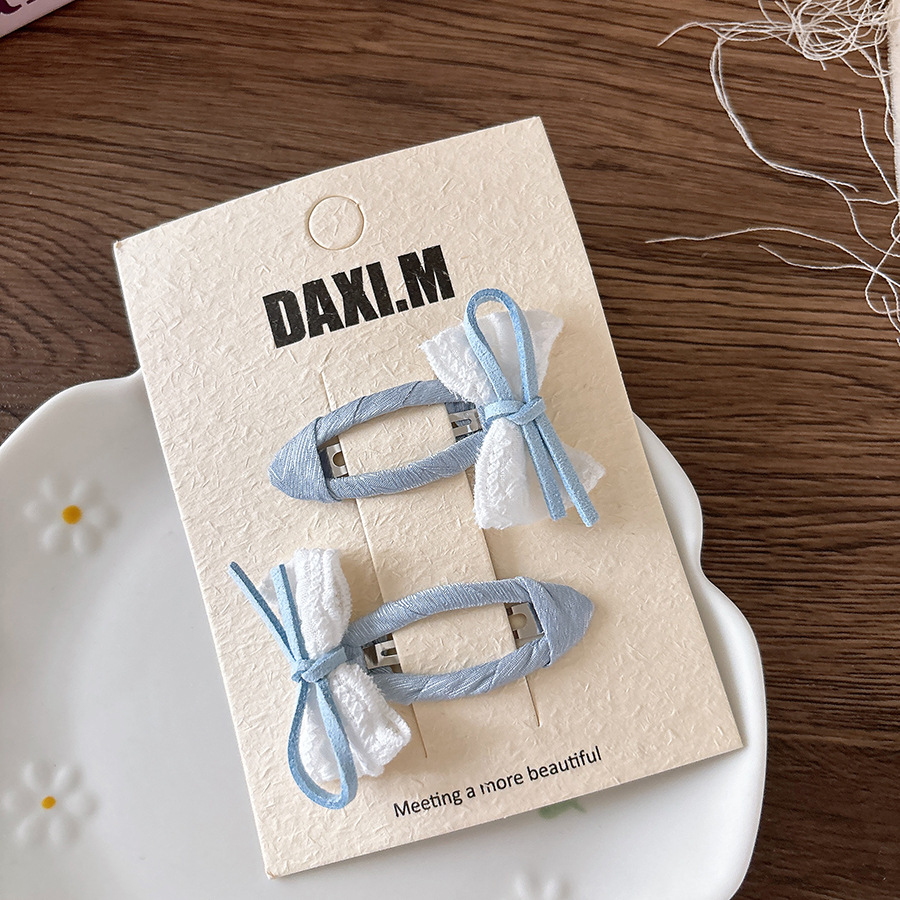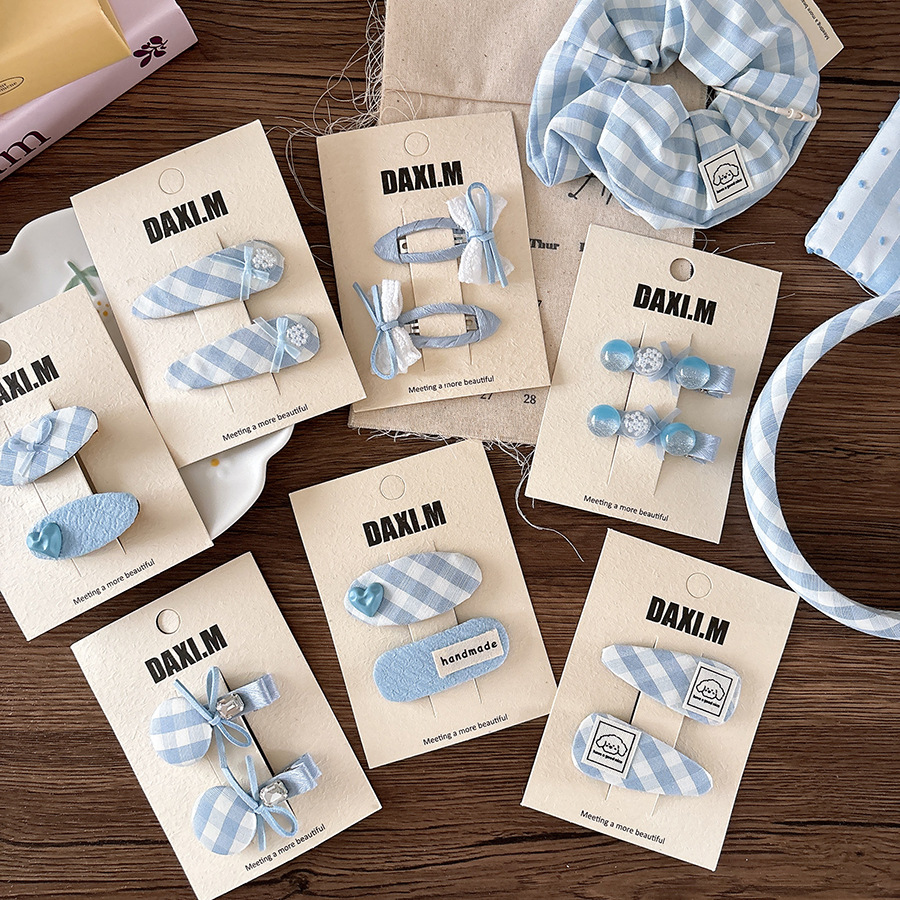新款布艺蓝色系格子蝴蝶结女孩侧边压夹发卡少女百搭刘海bb夹发圈
