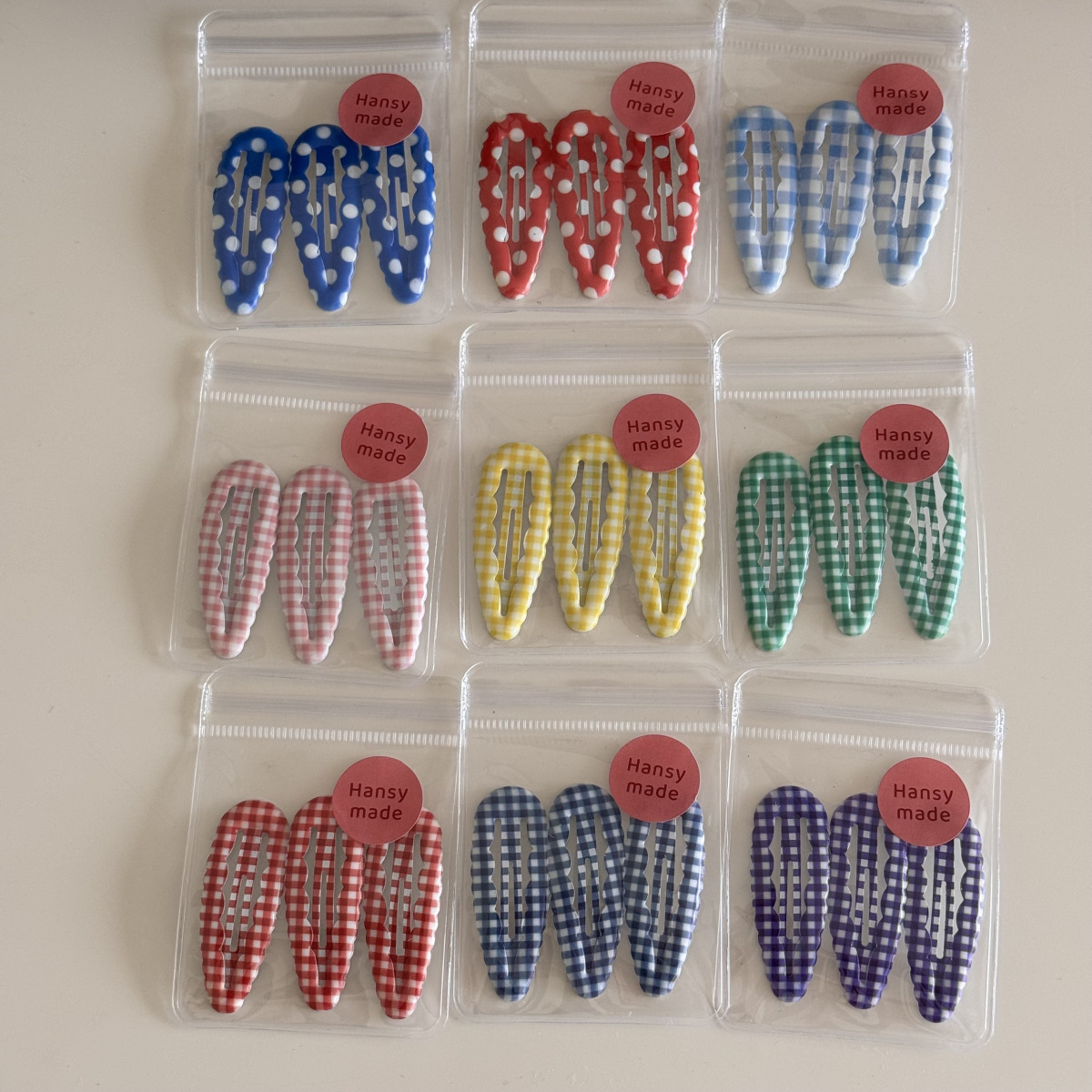 三只装水滴波浪边格纹BB夹基础发夹波点宝宝碎发刘海夹儿童发饰