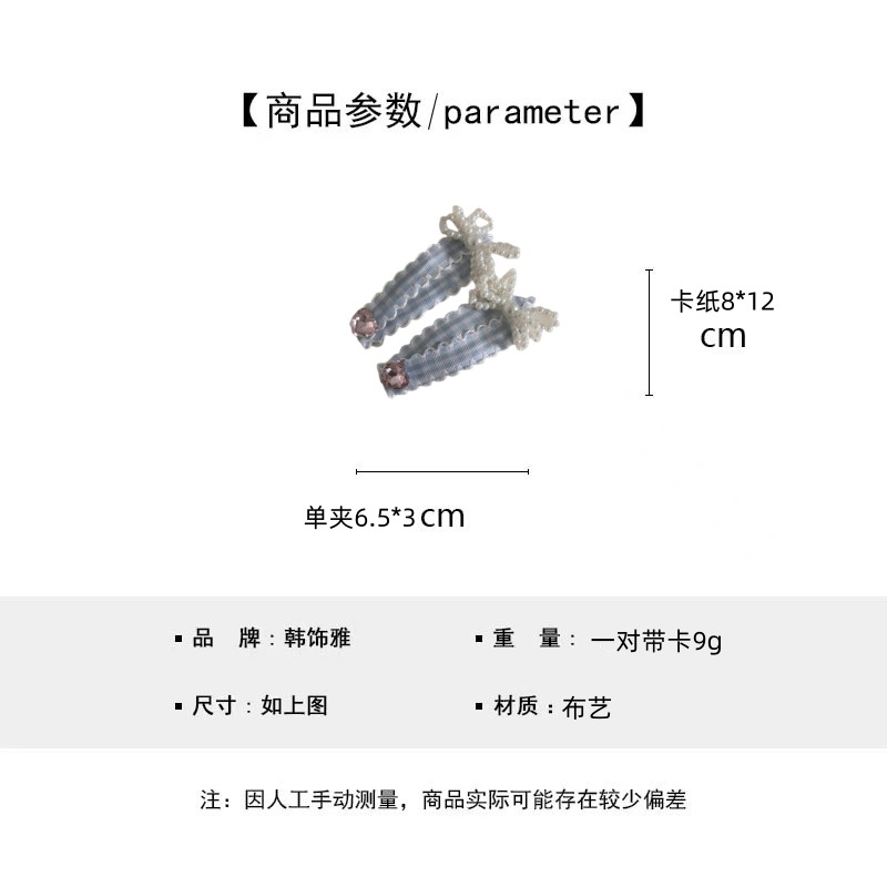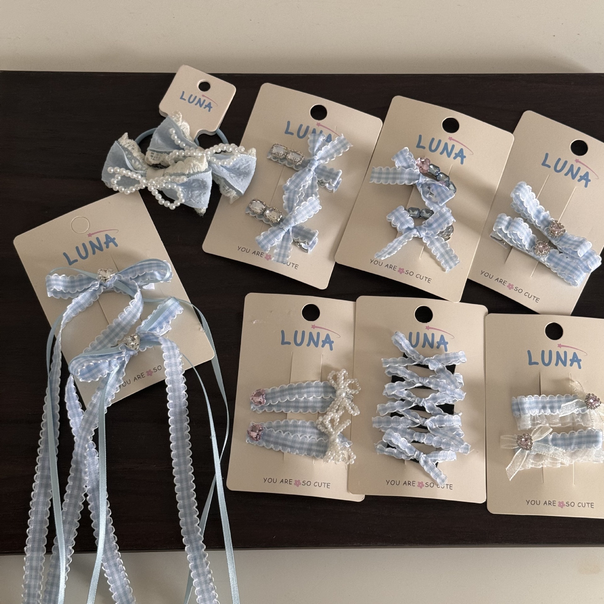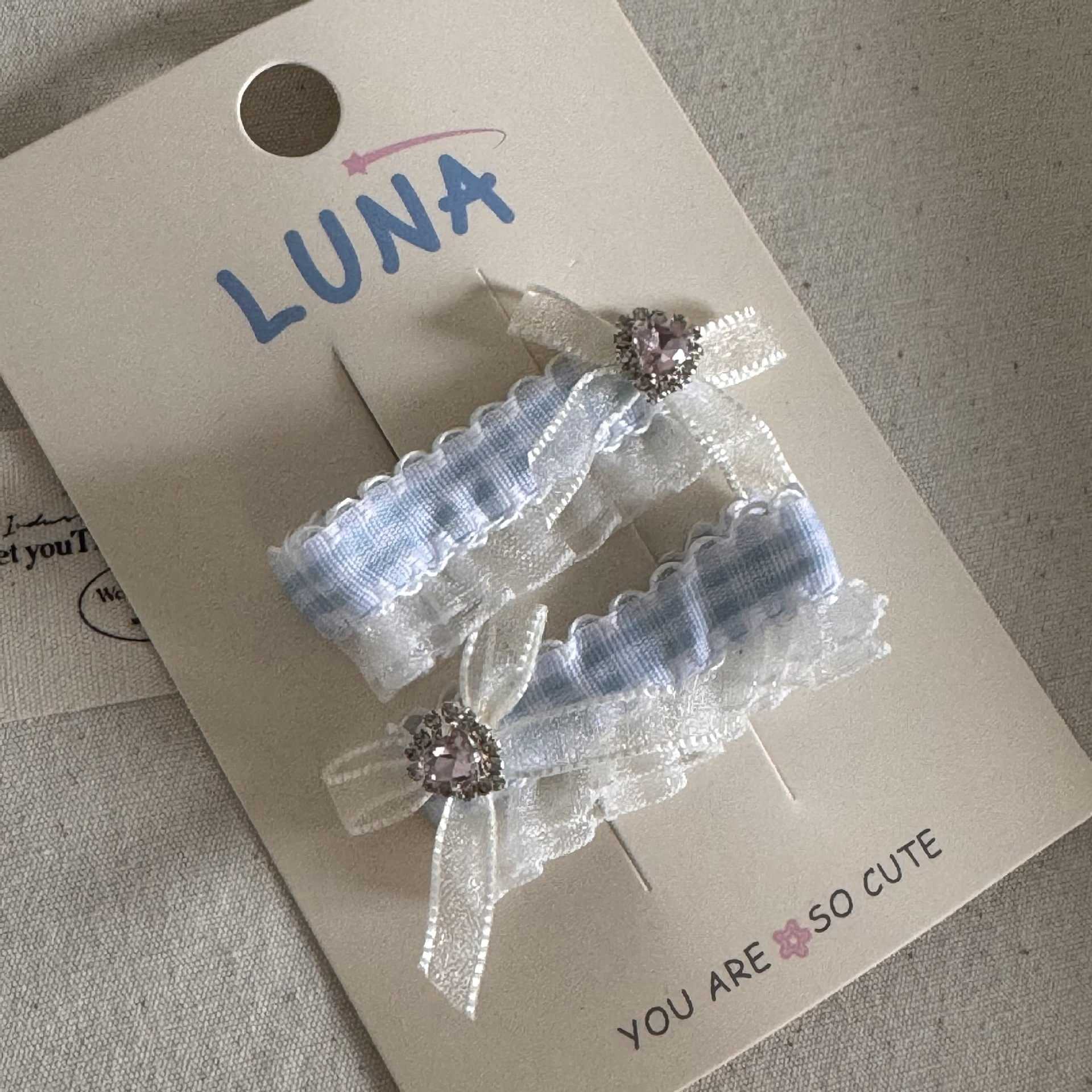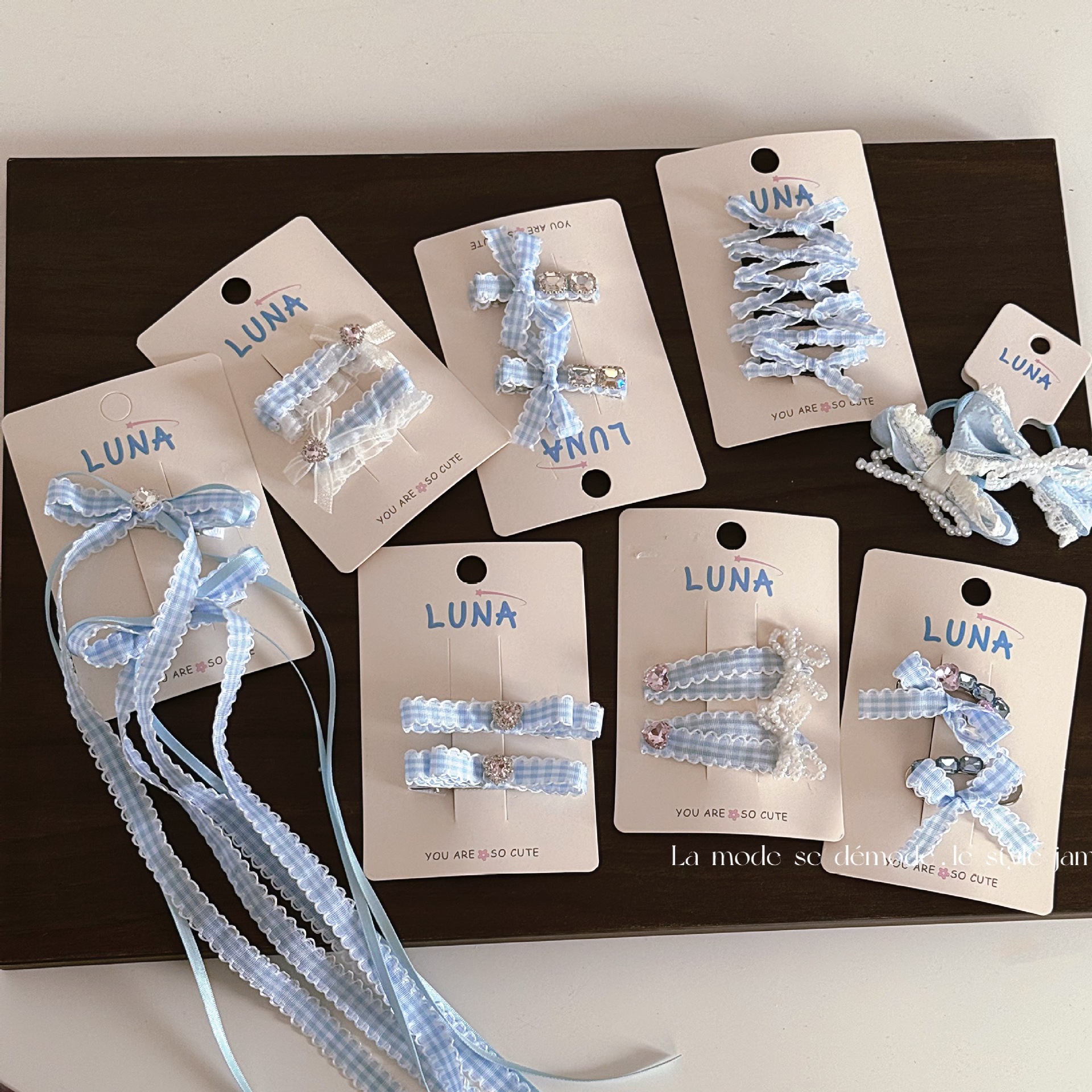 蓝色小清新格纹水钻蝴蝶结发夹甜美可爱对夹百搭刘海对夹发饰新款