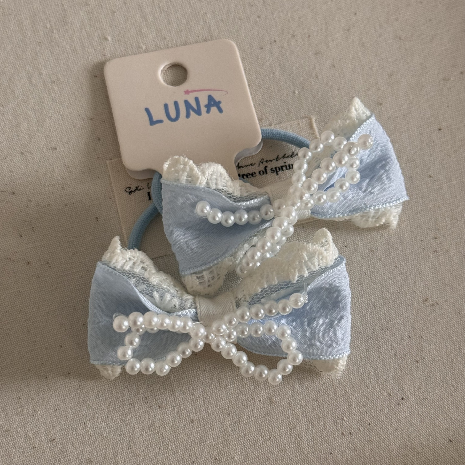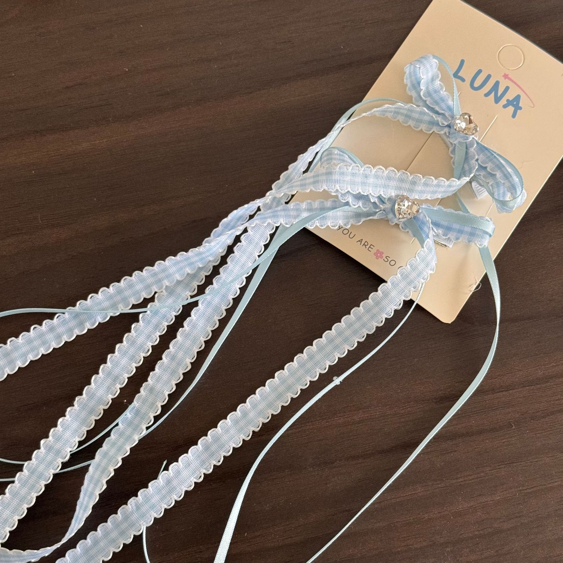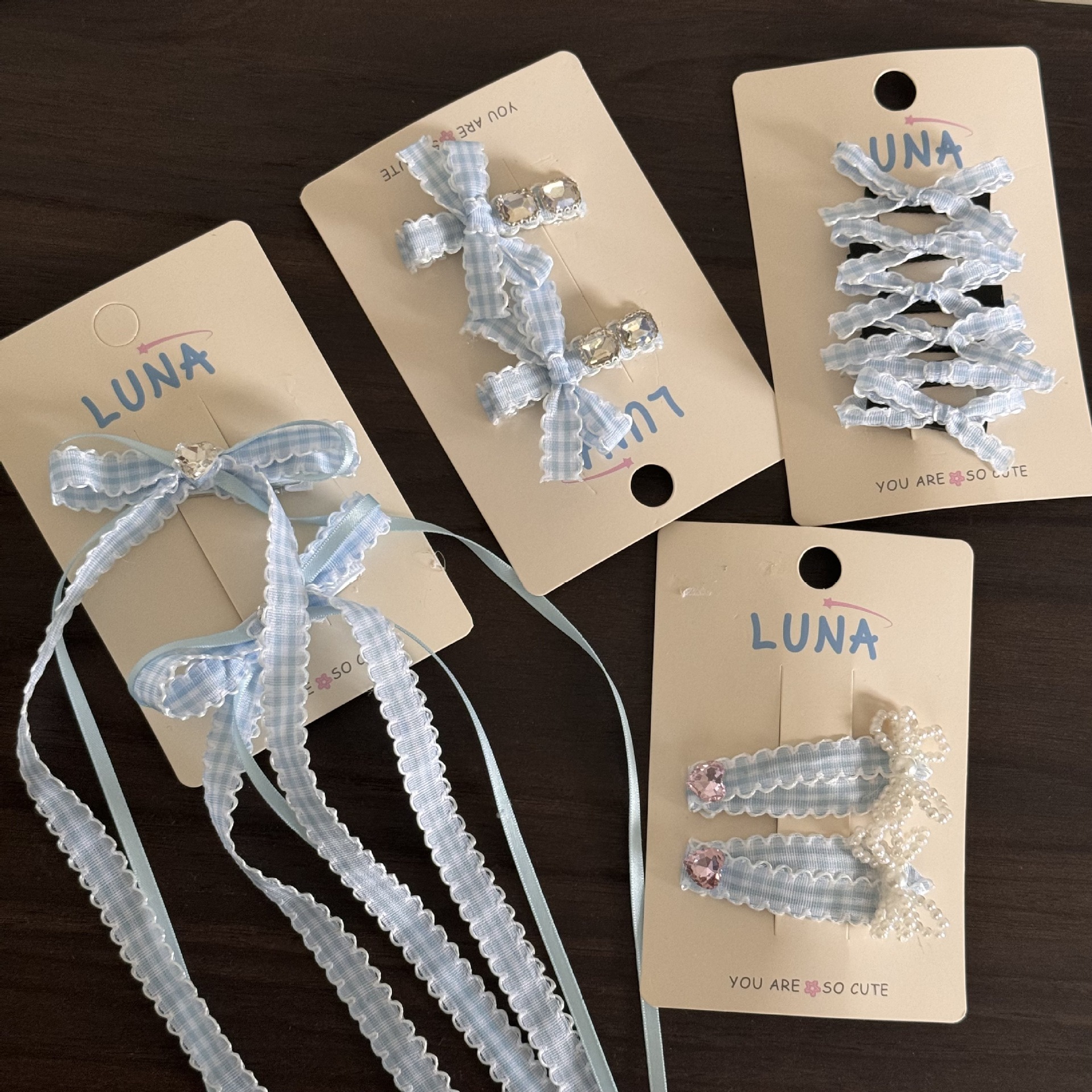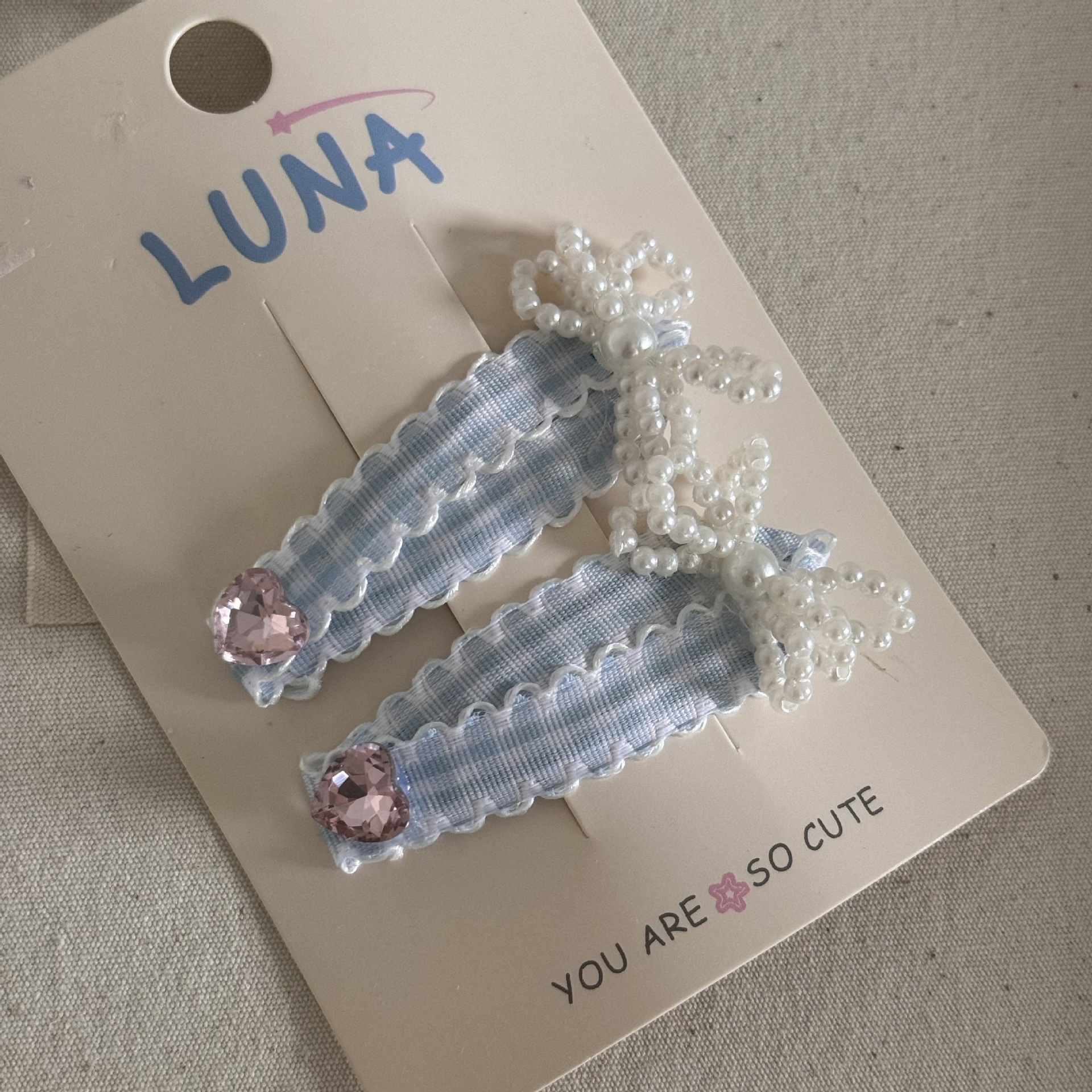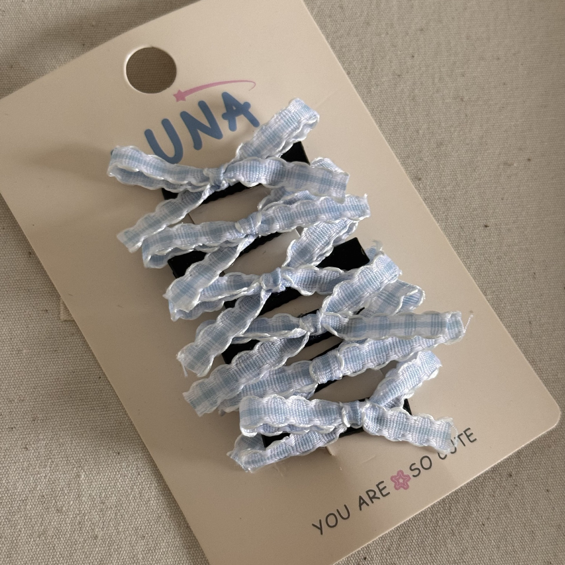 蓝色小清新格纹水钻蝴蝶结发夹甜美可爱对夹百搭刘海对夹发饰新款