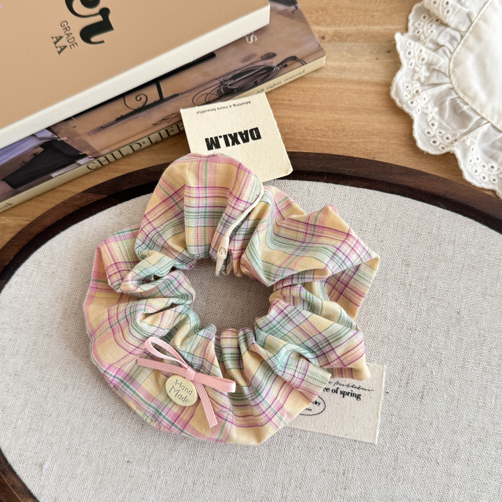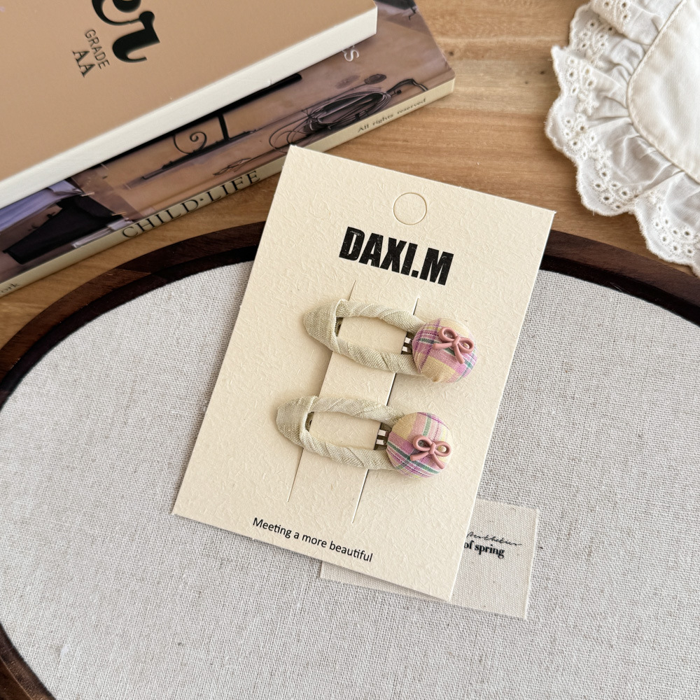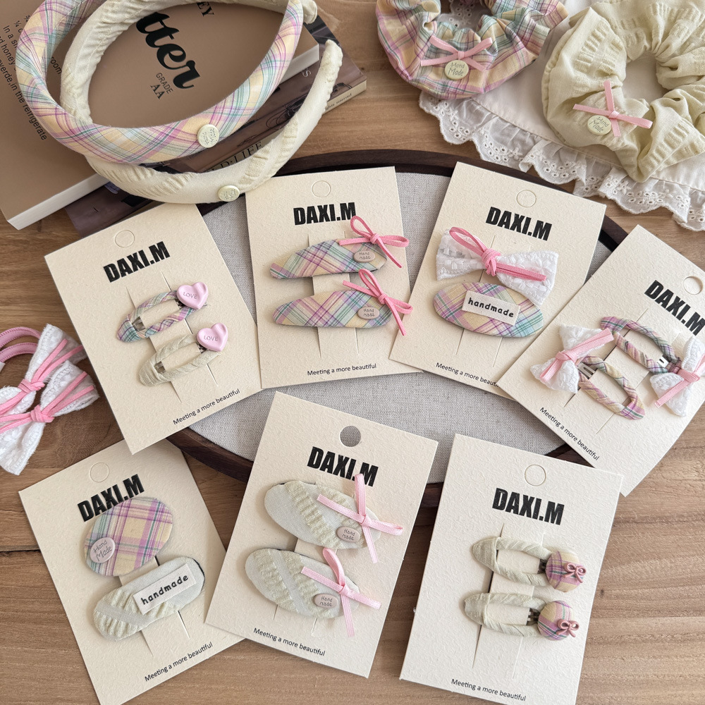 韩系色格纹蝴蝶结发圈甜美蕾丝发夹百搭女童发饰发卡侧边BB夹女