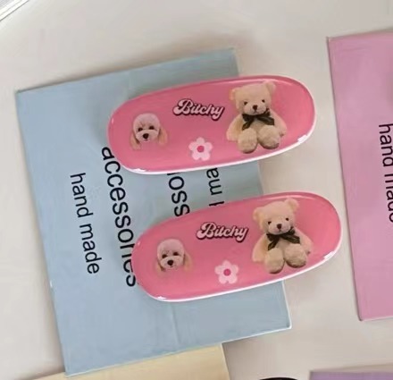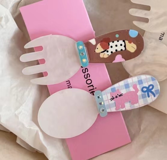 2个装果汁格纹发夹可爱葡萄西瓜化妆夹无痕发卡发饰闪粉刘海夹