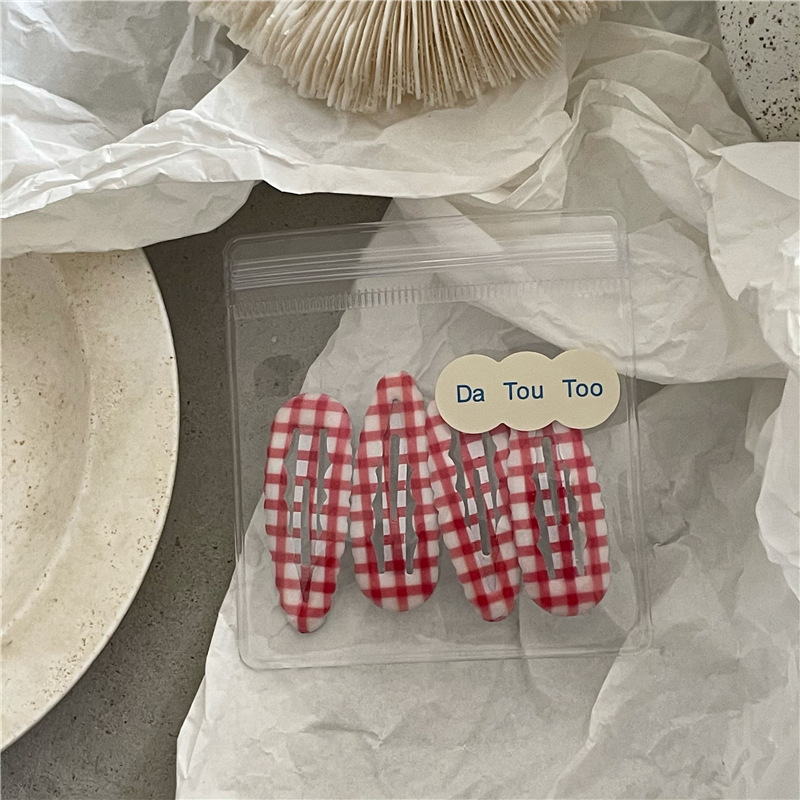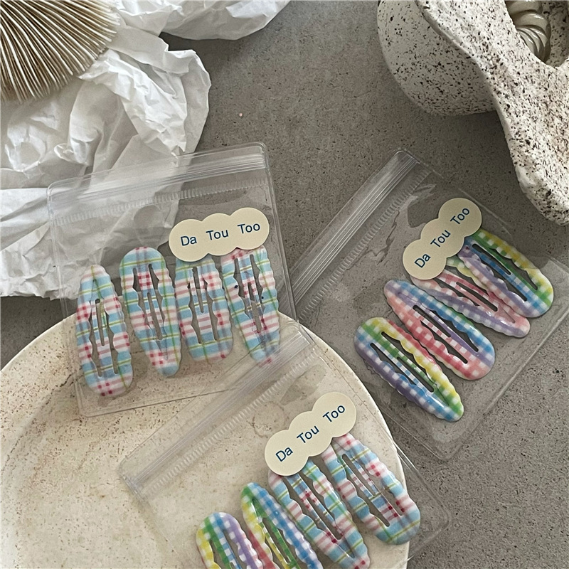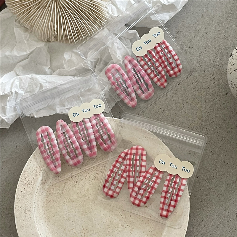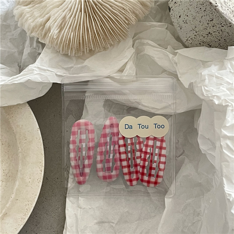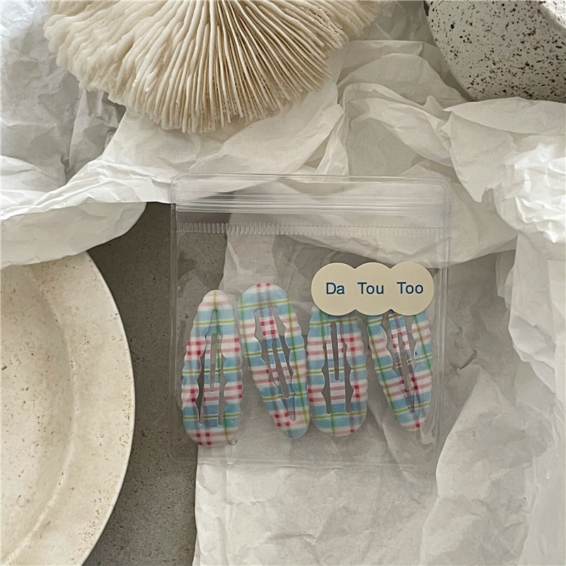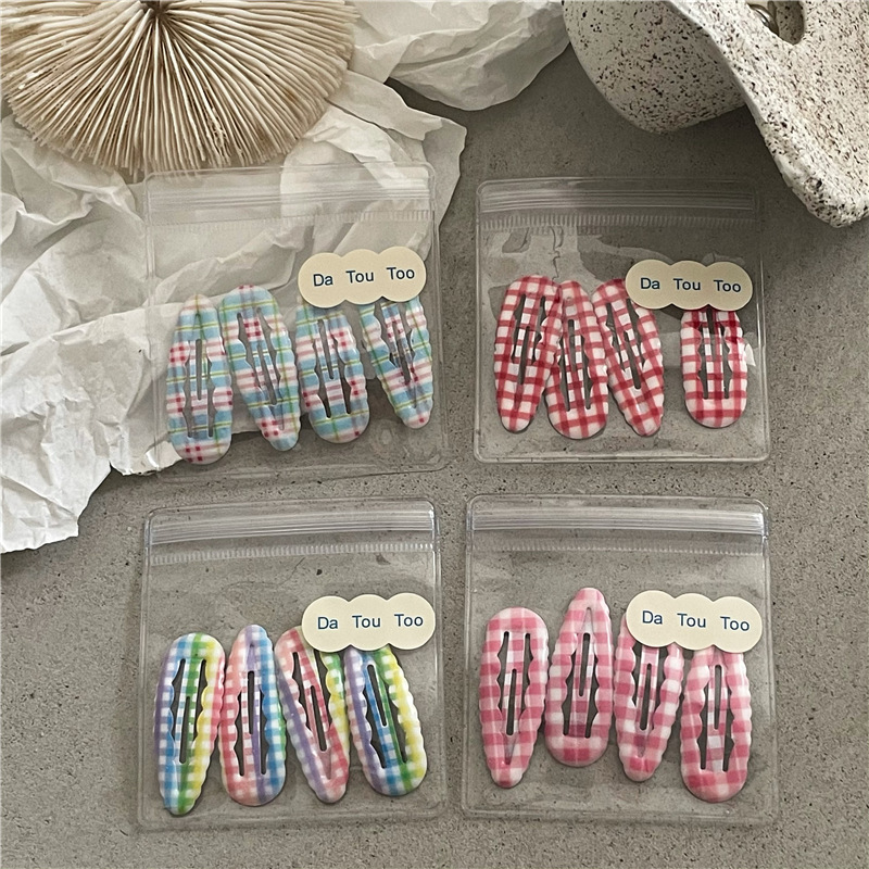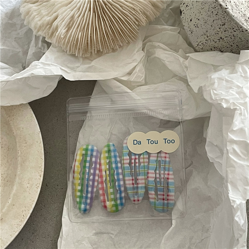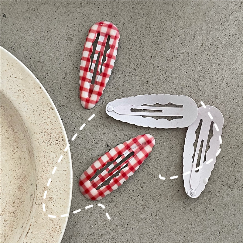 商品卖点:韩国风发饰新款,彩色格纹水滴BB夹