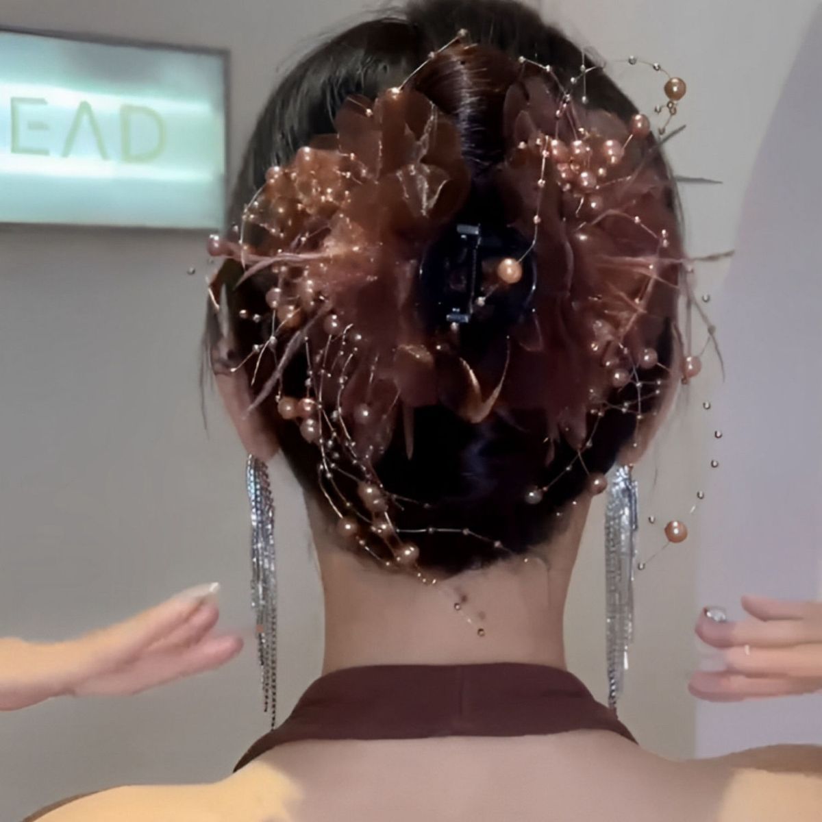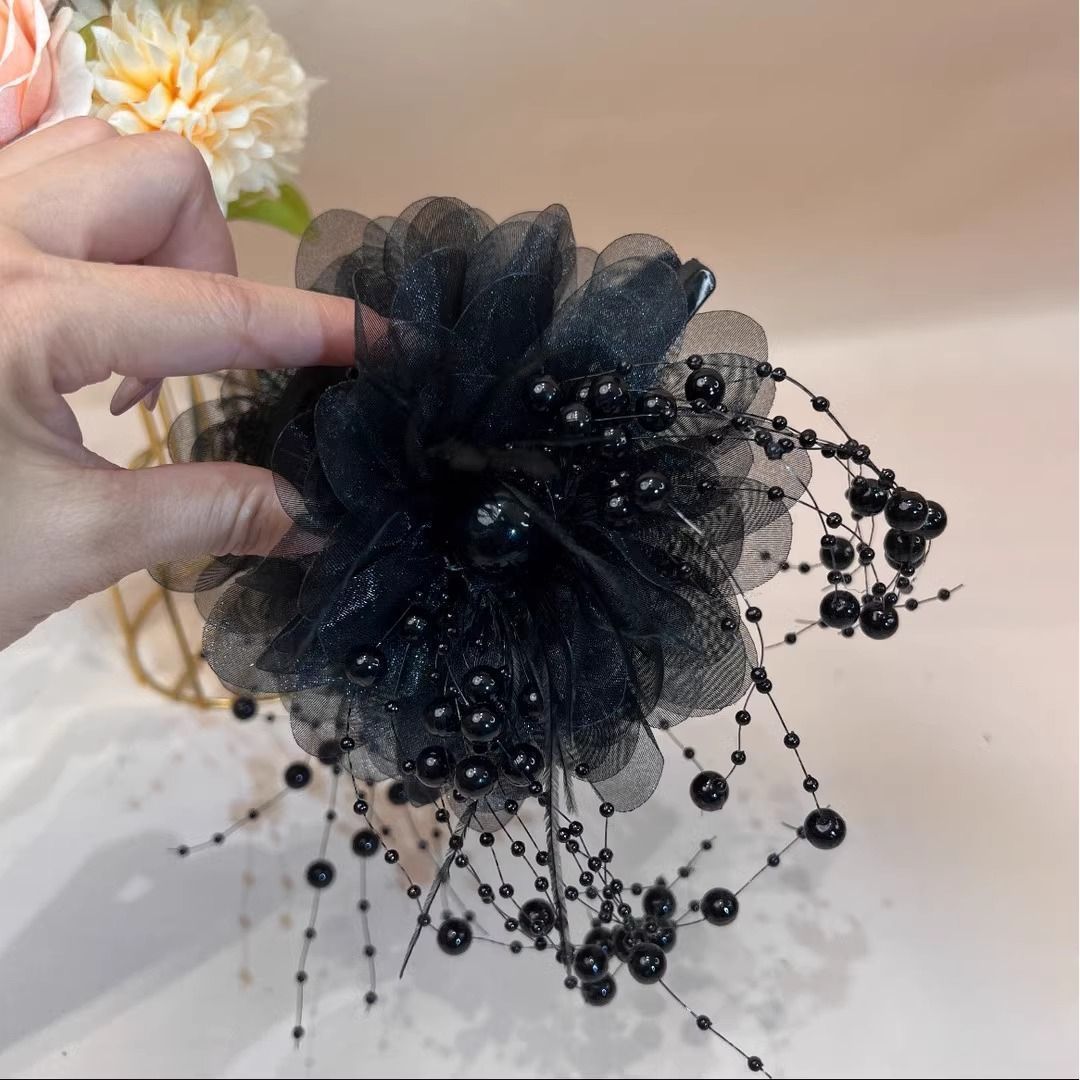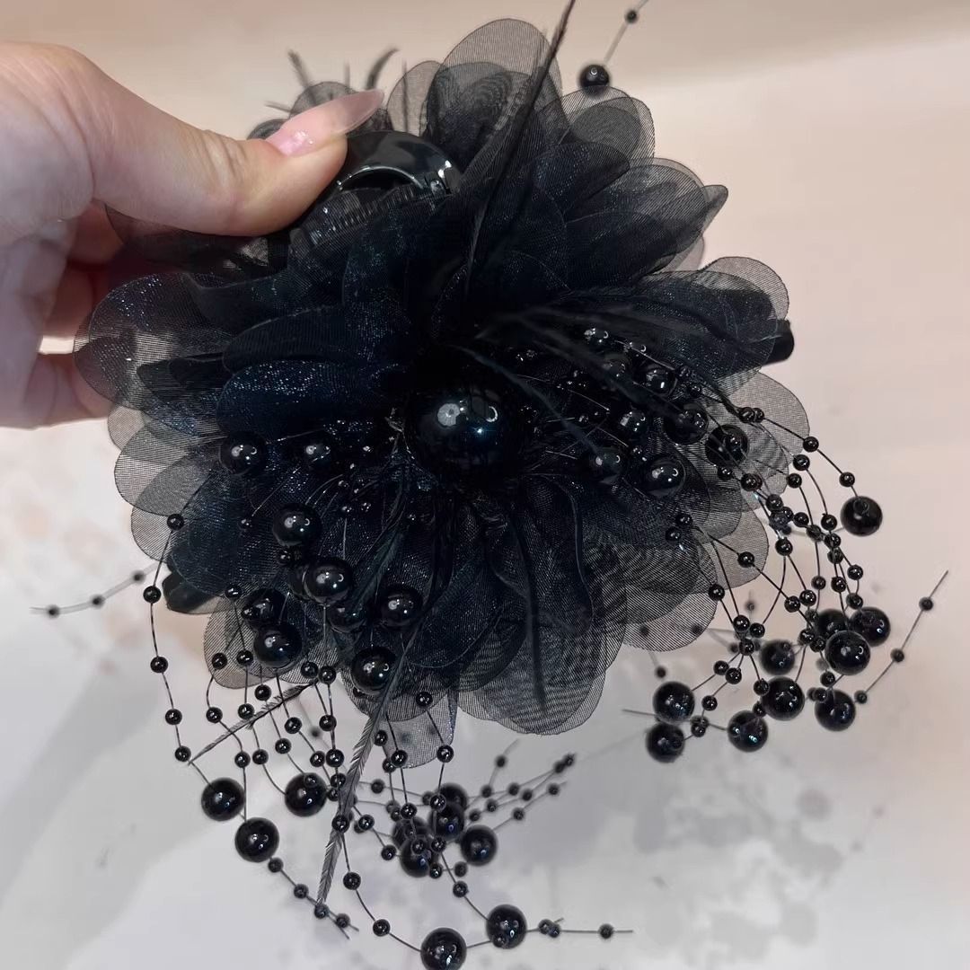高级感牡丹花流苏抓夹2025新款高颜值显发量毛毛发夹后脑勺鲨鱼夹