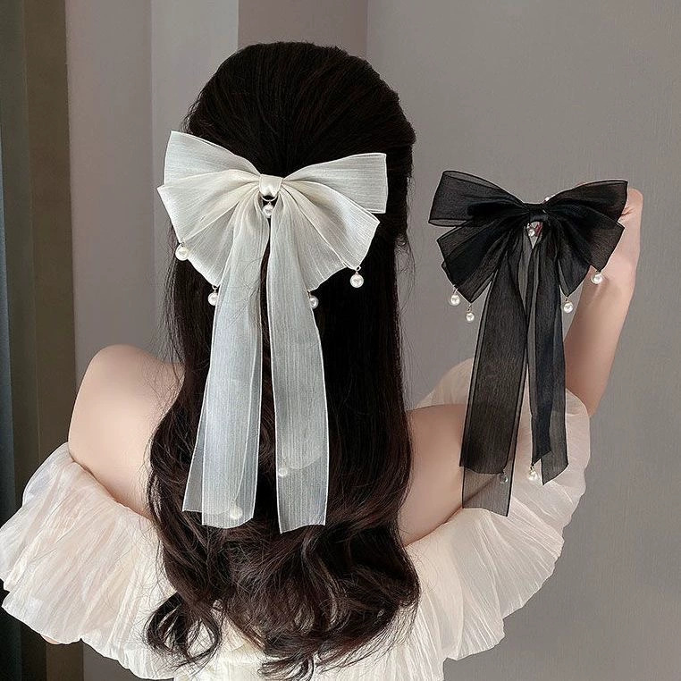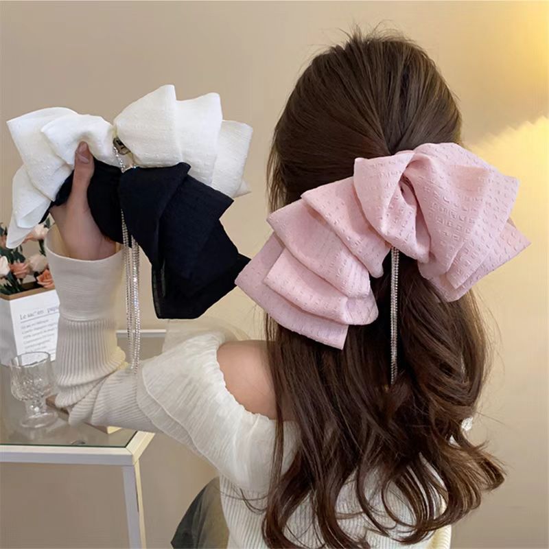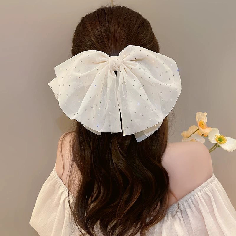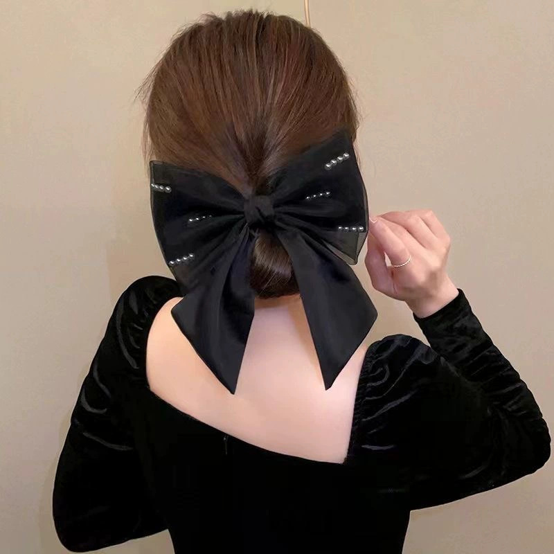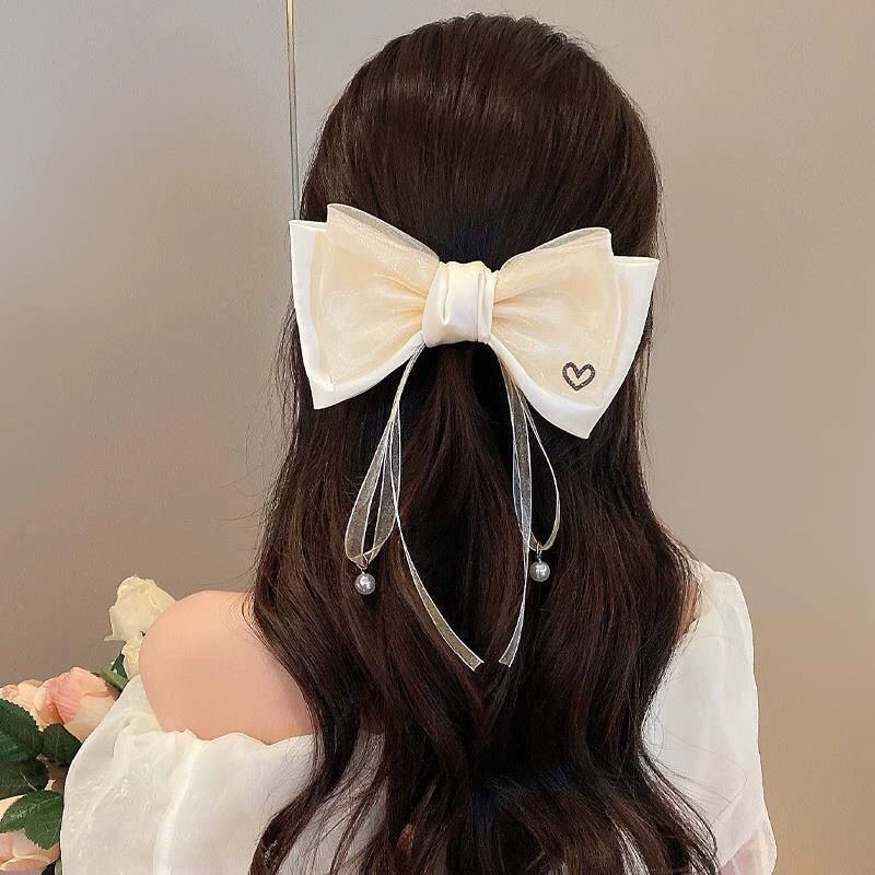大蝴蝶结爱心飘带弹簧夹高级感网红后脑勺半扎盘发卡气质优雅发饰