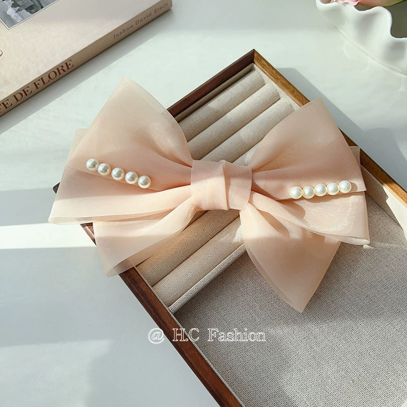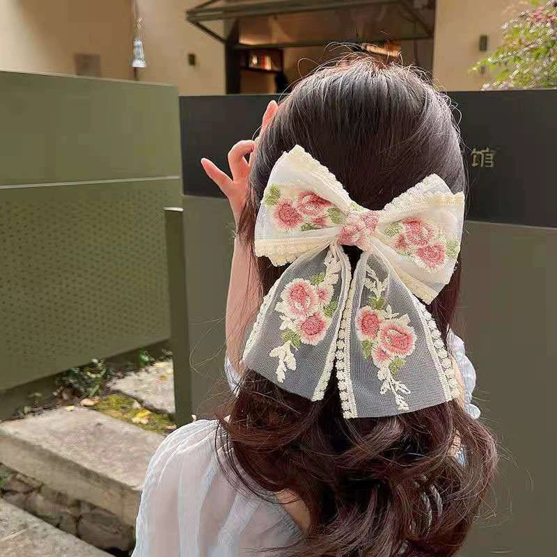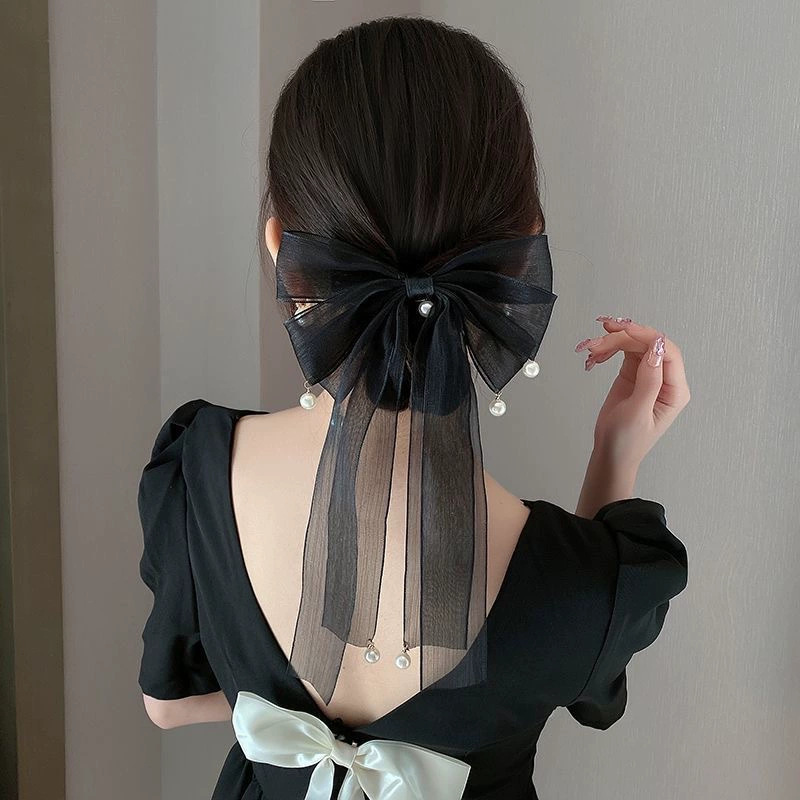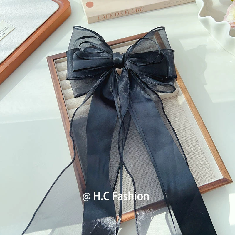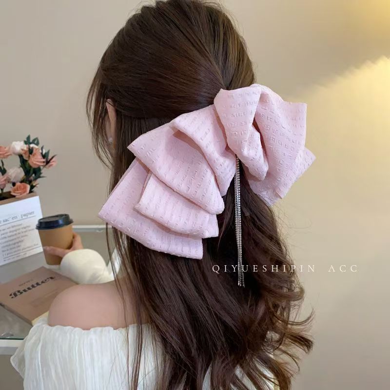 大蝴蝶结爱心飘带弹簧夹高级感网红后脑勺半扎盘发卡气质优雅发饰