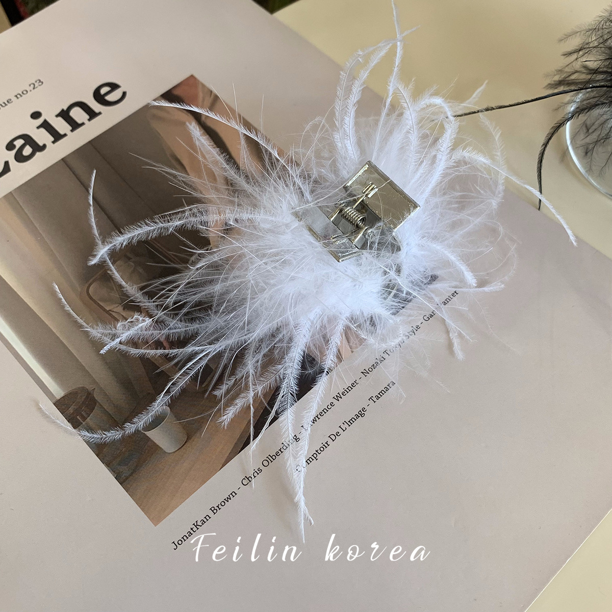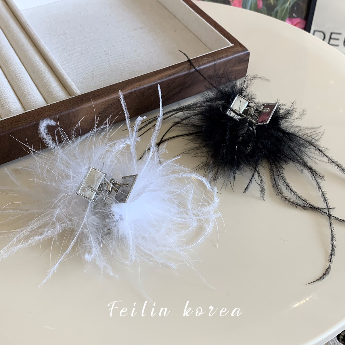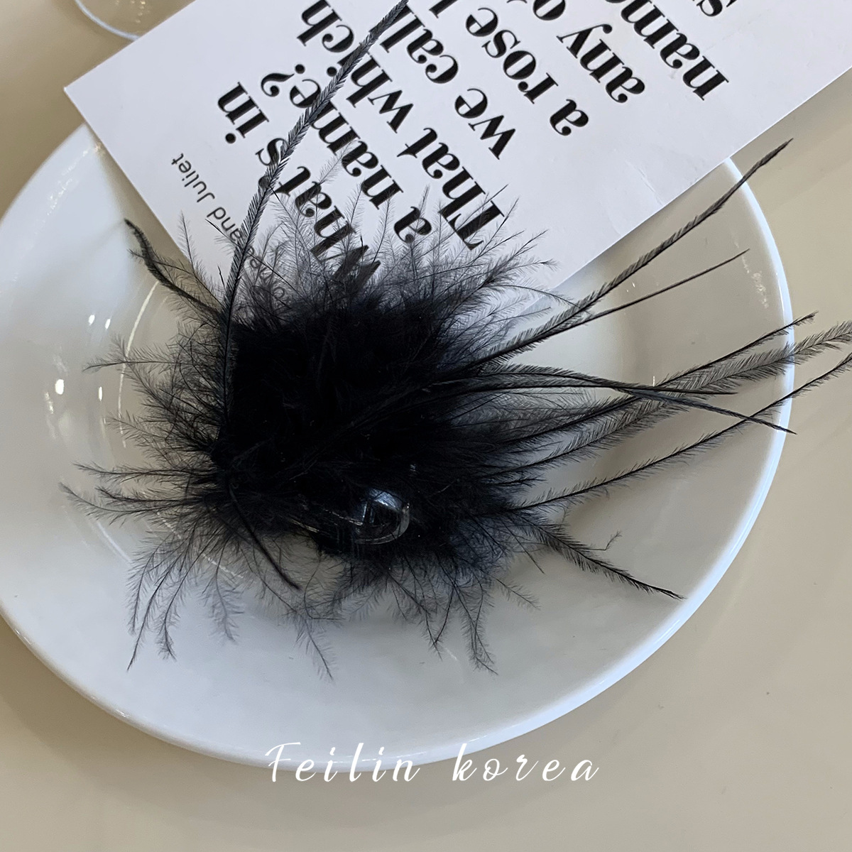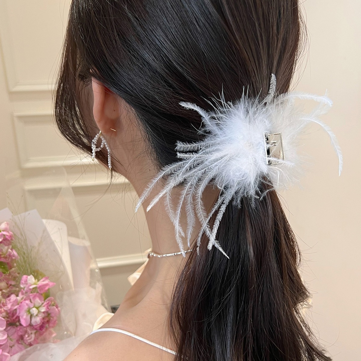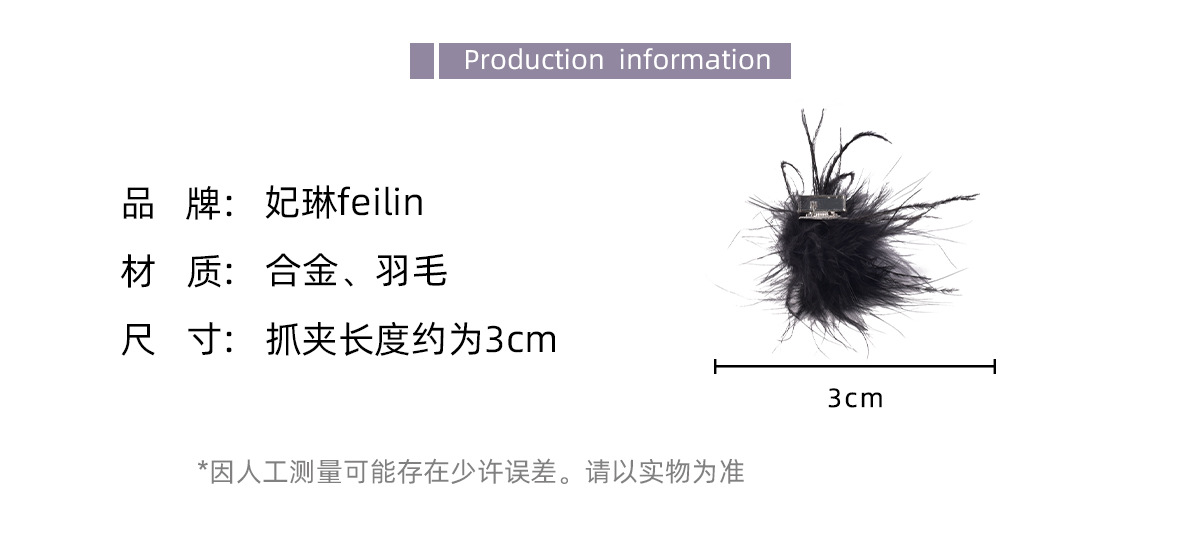 毛毛头饰黑色羽毛高马尾鸡毛小抓夹小号发夹女后脑勺鲨鱼夹高级感