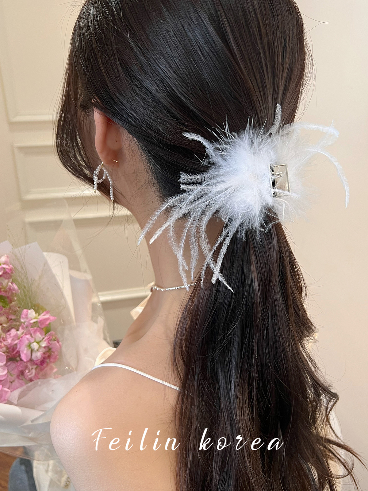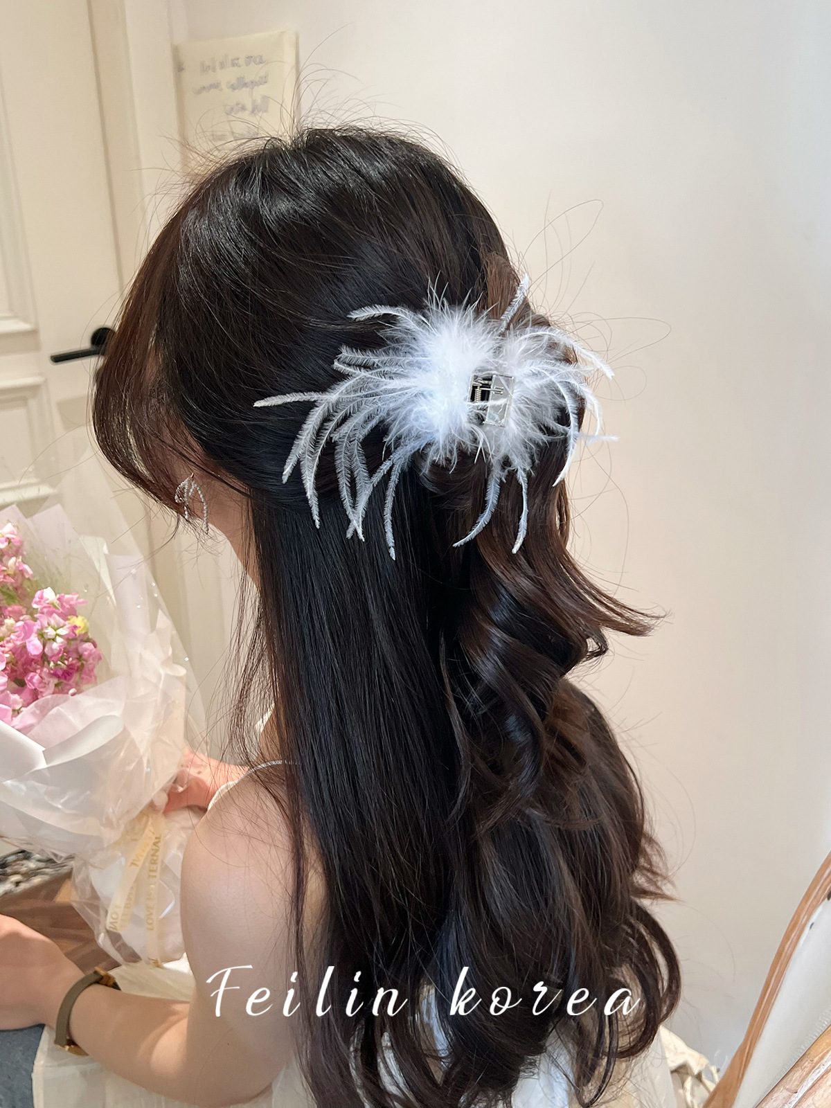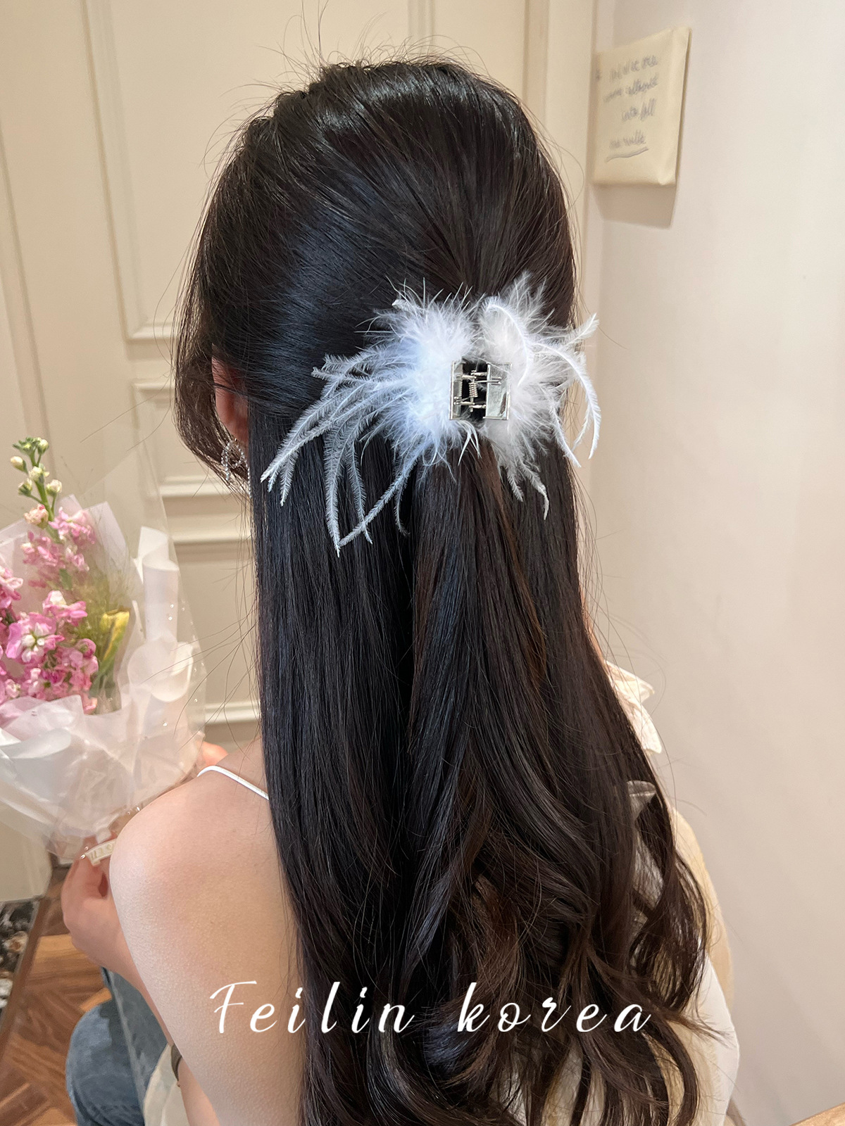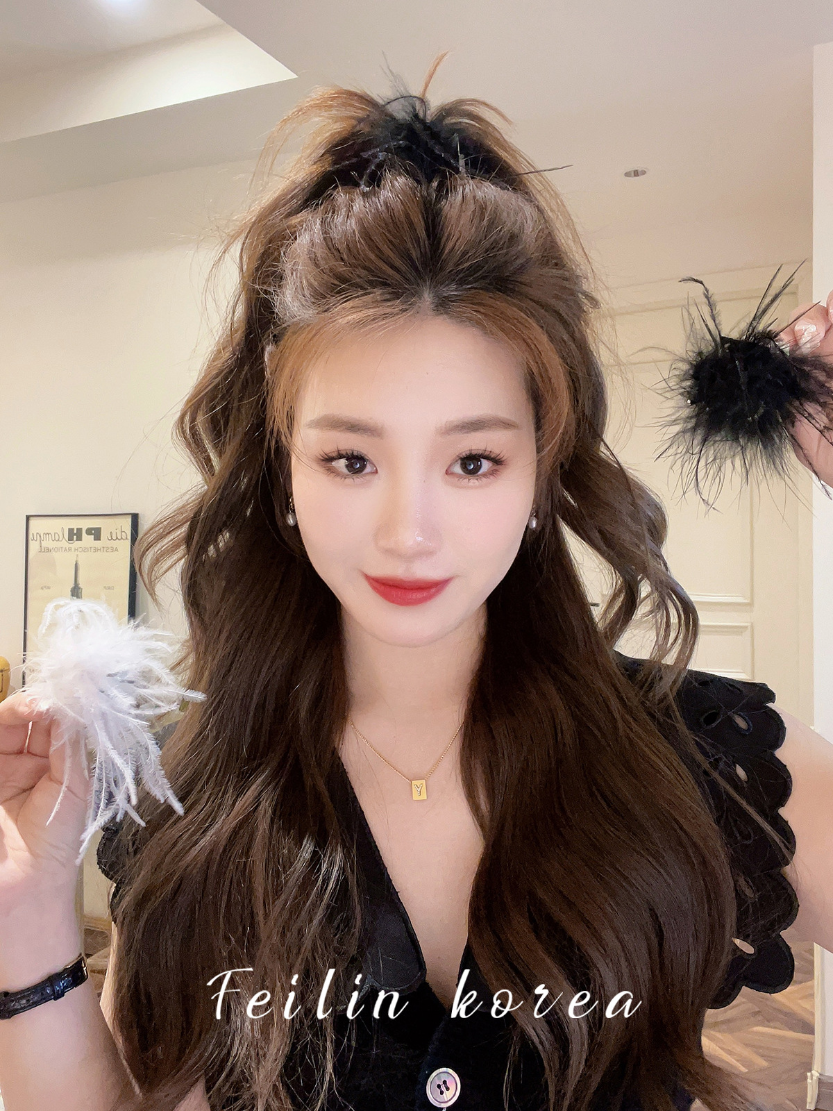 毛毛头饰黑色羽毛高马尾鸡毛小抓夹小号发夹女后脑勺鲨鱼夹高级感