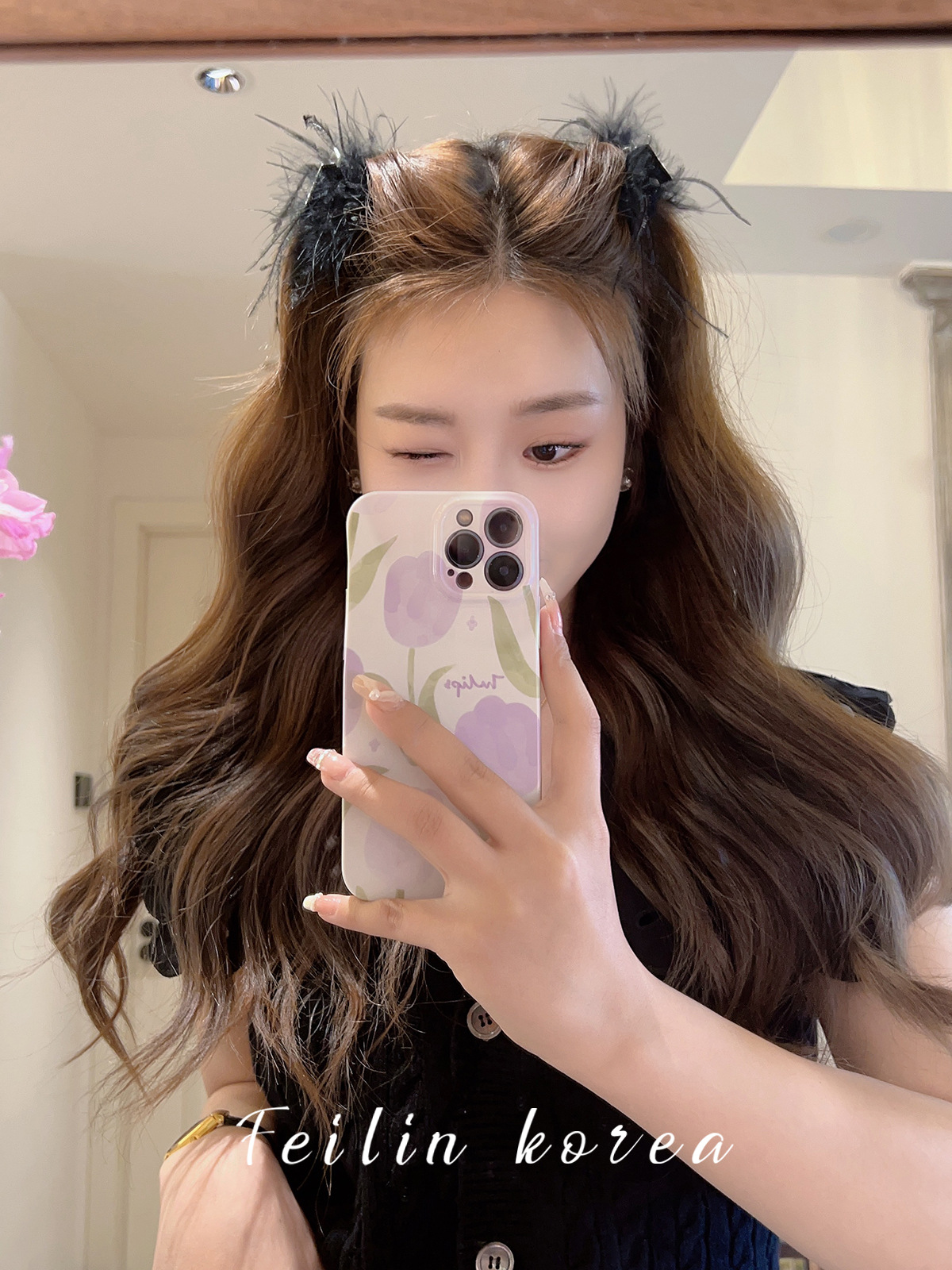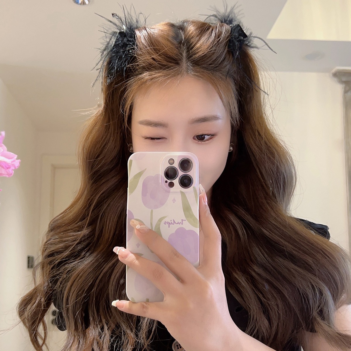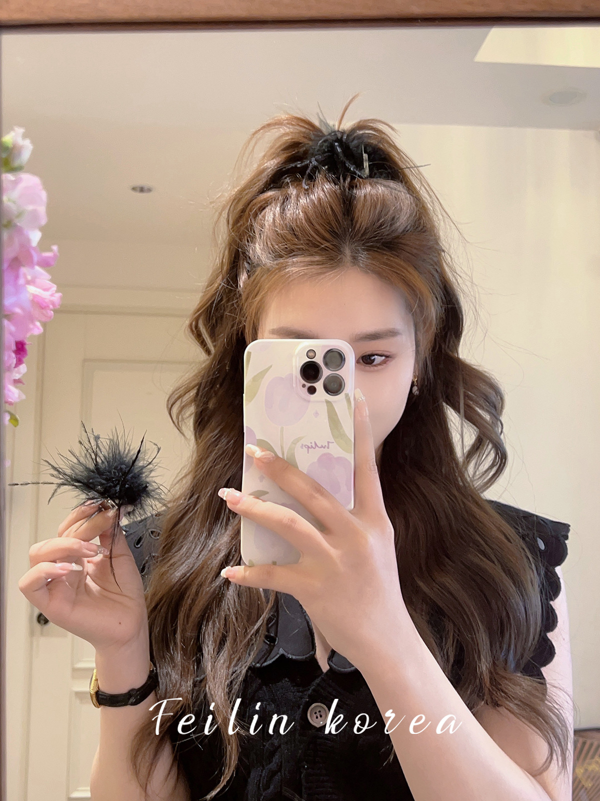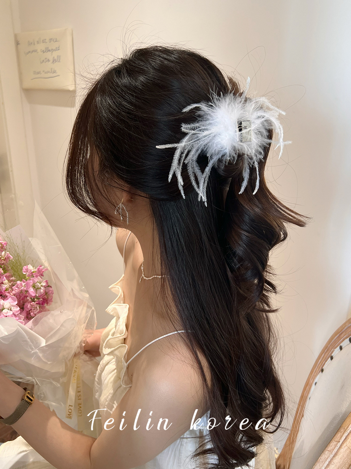 毛毛头饰黑色羽毛高马尾鸡毛小抓夹小号发夹女后脑勺鲨鱼夹高级感