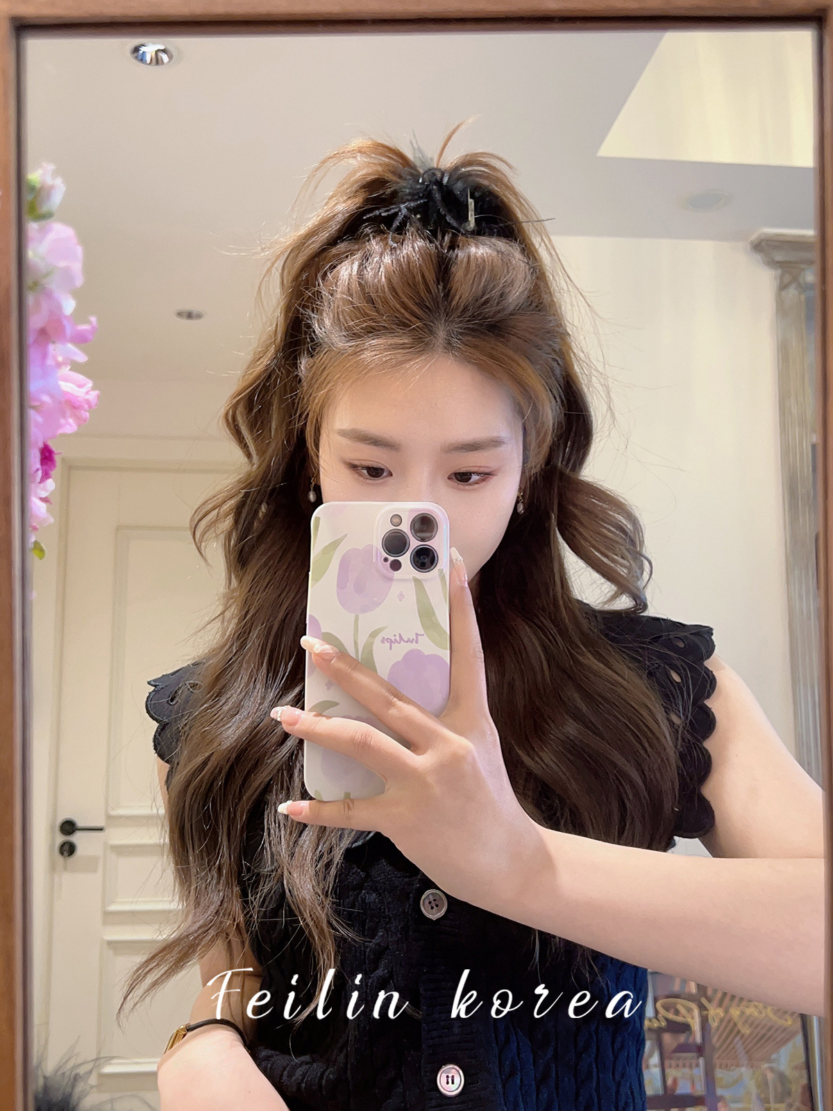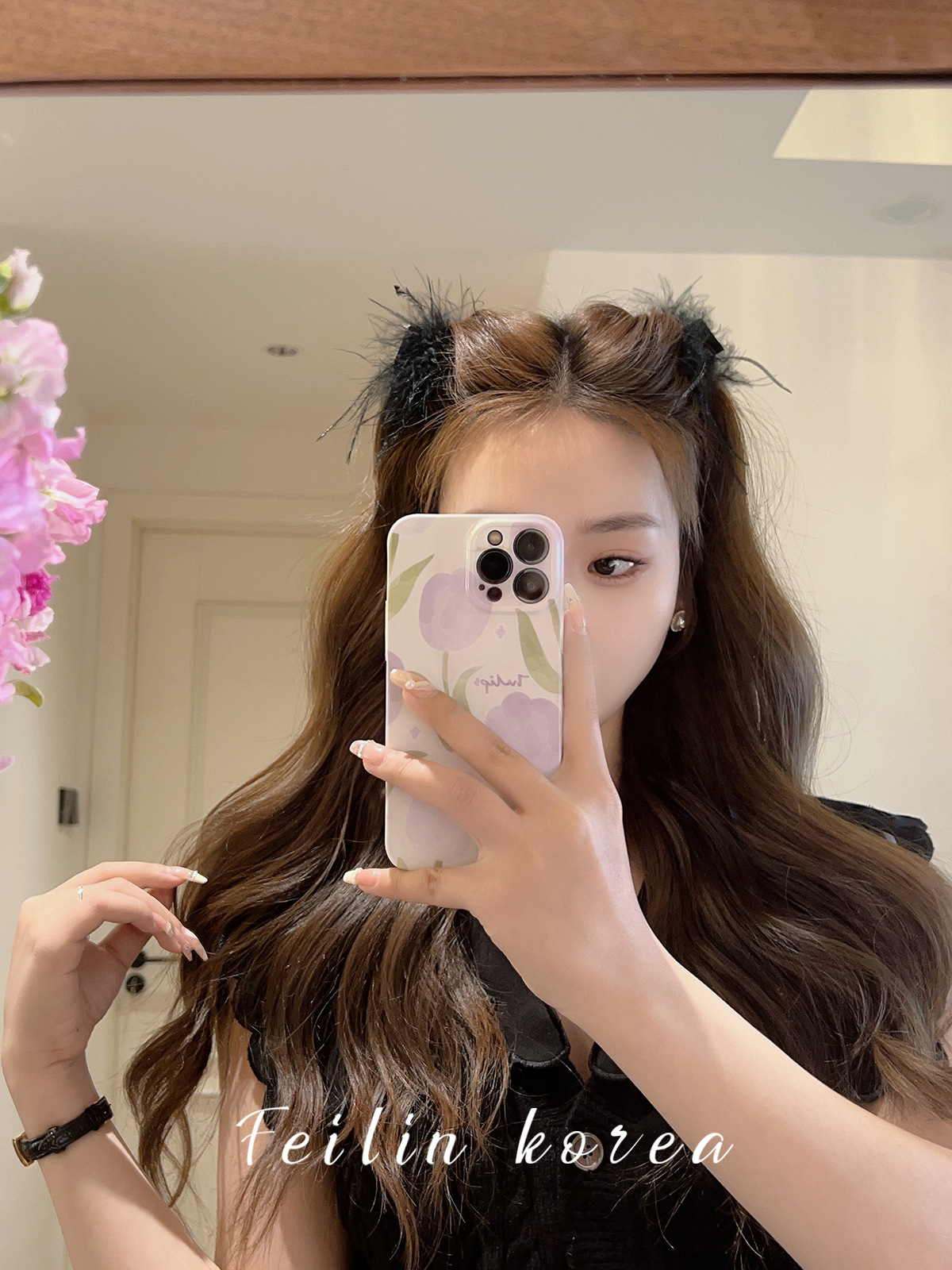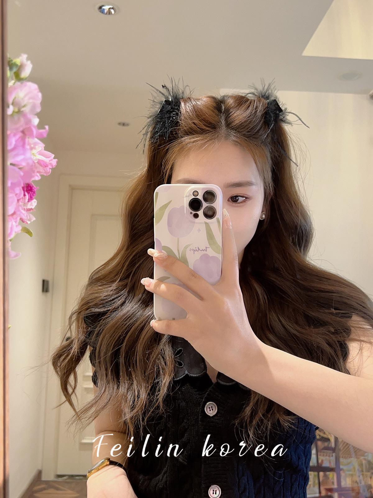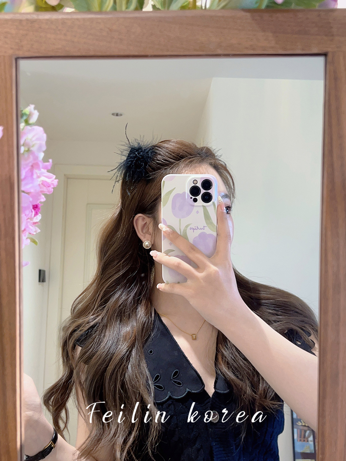 毛毛头饰黑色羽毛高马尾鸡毛小抓夹小号发夹女后脑勺鲨鱼夹高级感