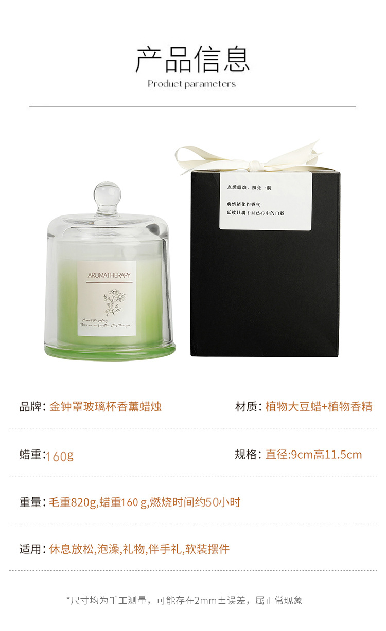 金钟罩香薰蜡烛玻璃杯家用蜡烛diy摆件香氛大豆蜡香熏伴手礼批发