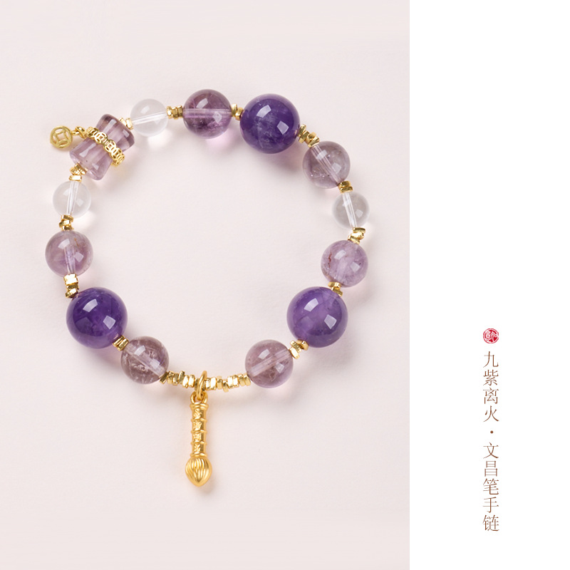 九紫离火手链文昌笔大颗粒紫水晶多宝能量手串送闺蜜礼物手饰